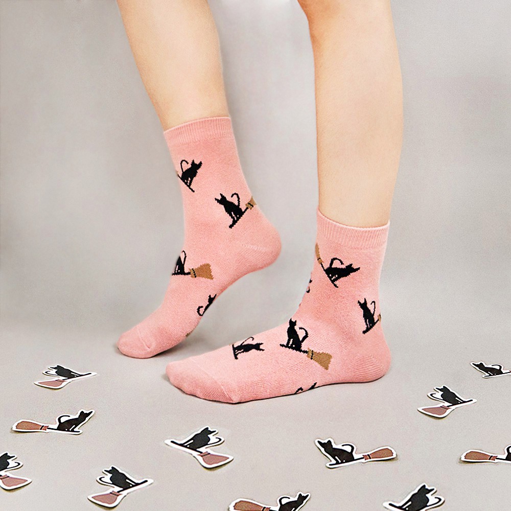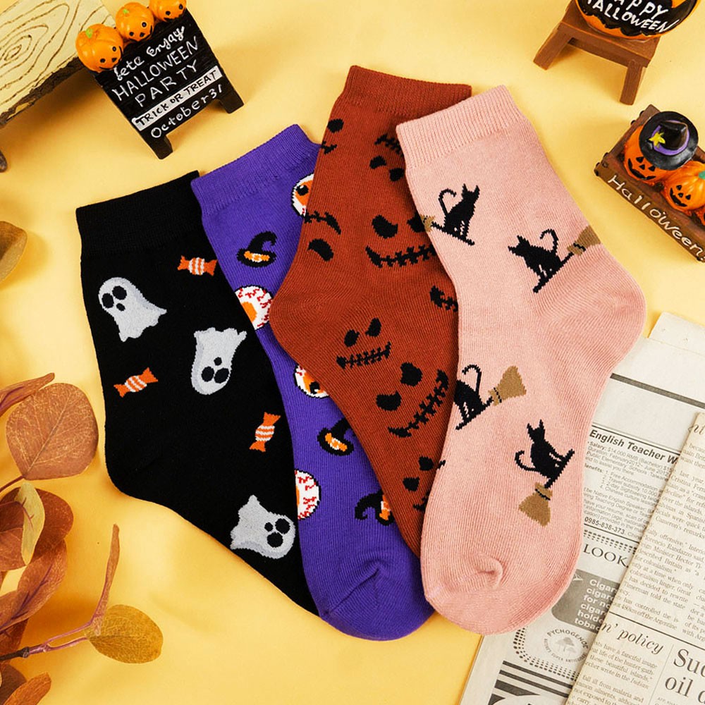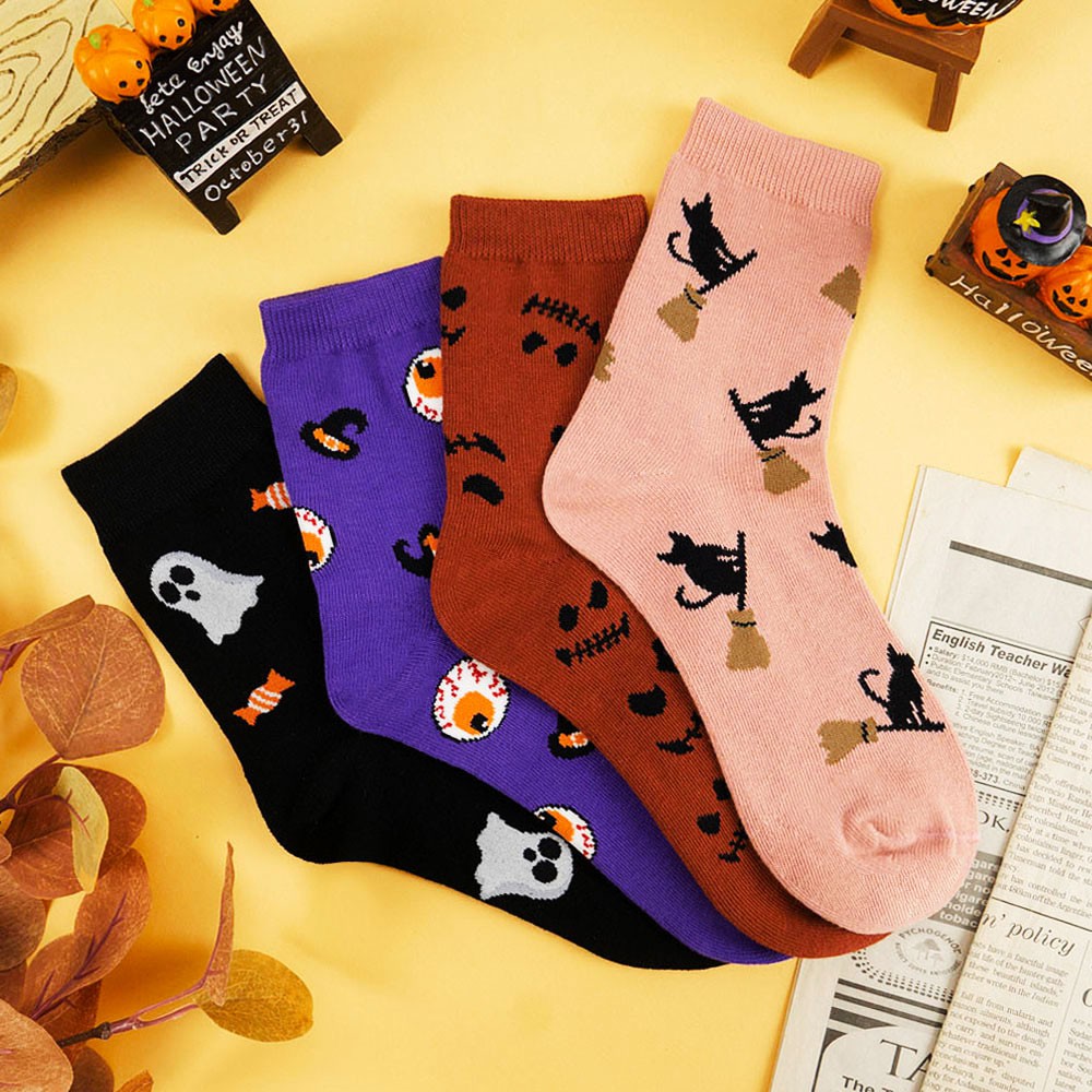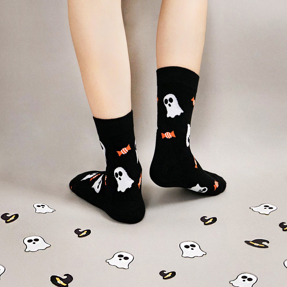 AHUA阿華有事嗎 自訂款! 滿版鬼怪中筒襪 萬聖節襪子 萬聖節打扮 派對襪子 女生襪子 MIT台灣製造 R0008粉底貓咪|磚橘底表情|黑底幽靈|紫底眼球SocksAHUA 韓國襪子品牌旗艦店