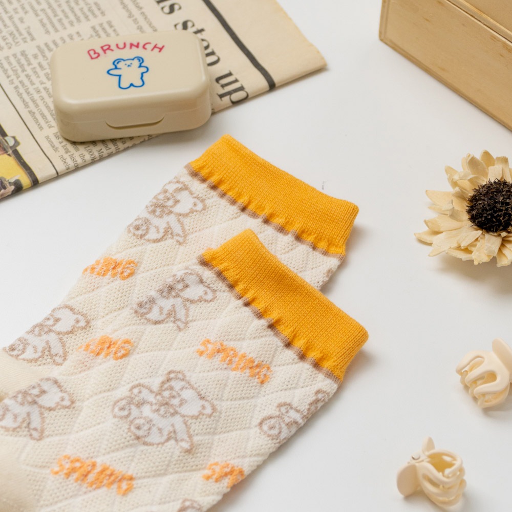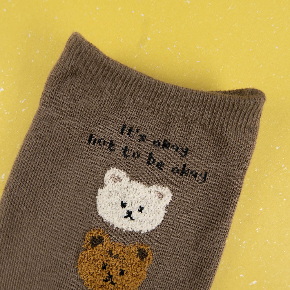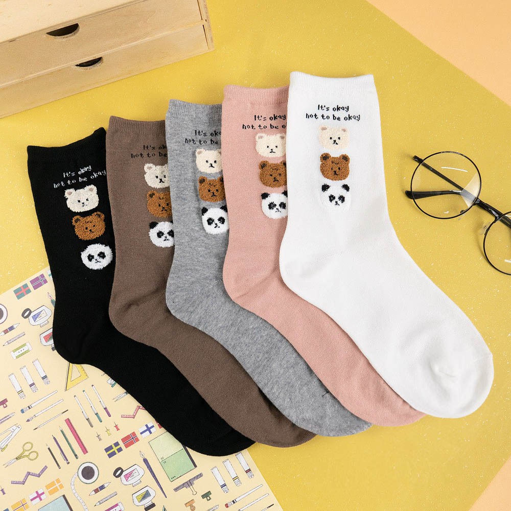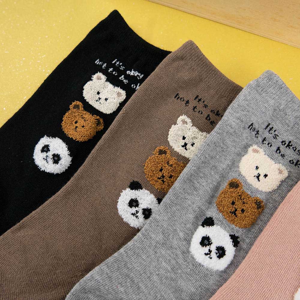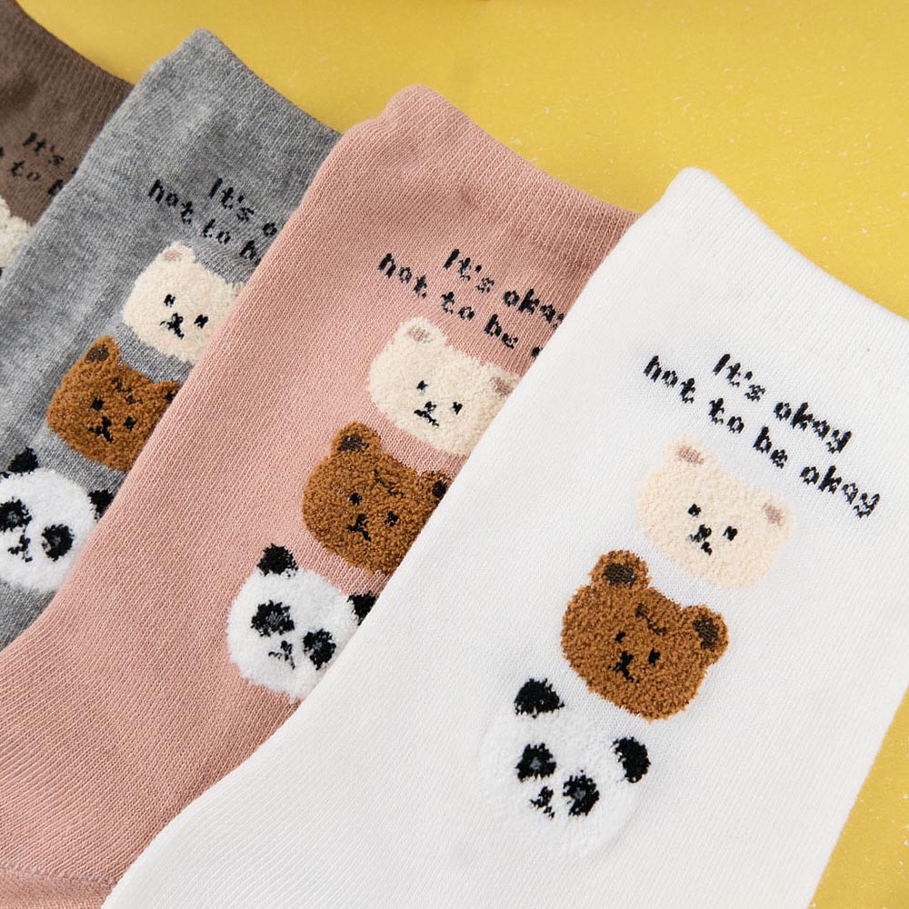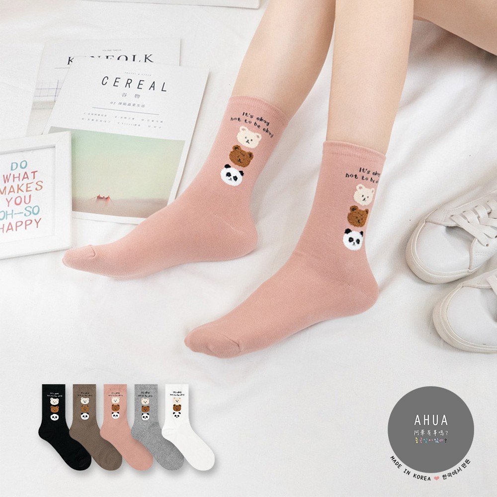 AUHA 韓國襪子 襪口字句三隻毛毛熊中筒襪 K1288 女襪 正韓襪子 襪子推薦 純棉襪 阿華有事嗎白底|咖啡底|粉底|黑底|灰底SocksAHUA 韓國襪子品牌旗艦店