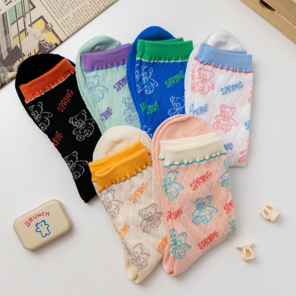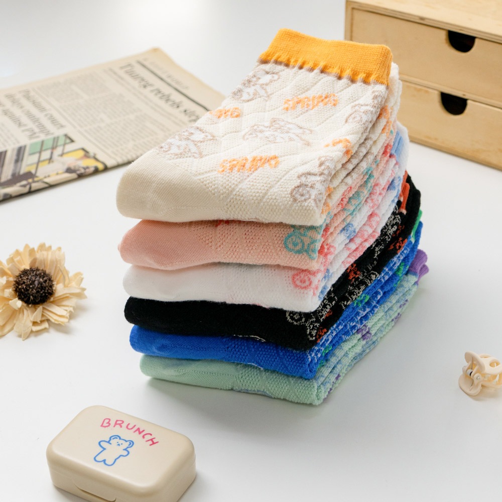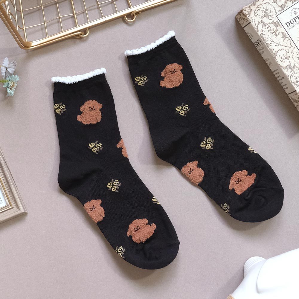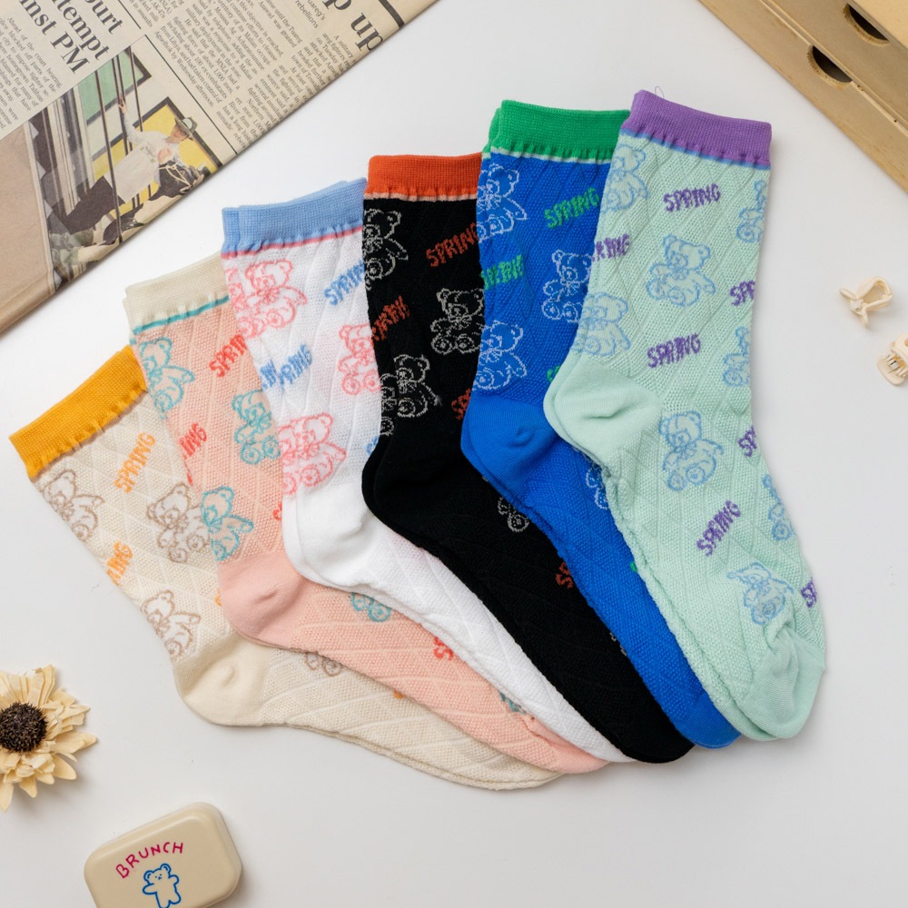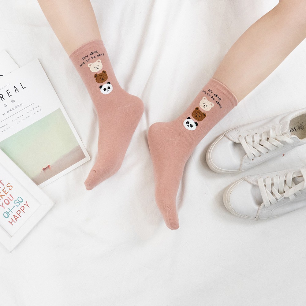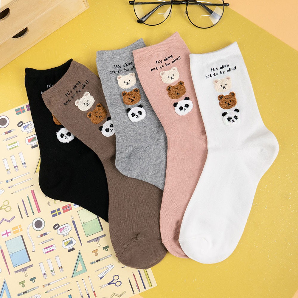 AUHA 韓國襪子 襪口字句三隻毛毛熊中筒襪 K1288 女襪 正韓襪子 襪子推薦 純棉襪 阿華有事嗎白底|咖啡底|粉底|黑底|灰底SocksAHUA 韓國襪子品牌旗艦店