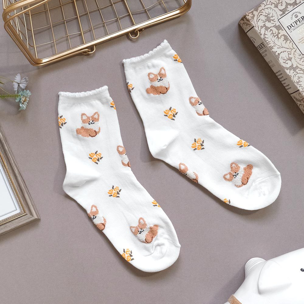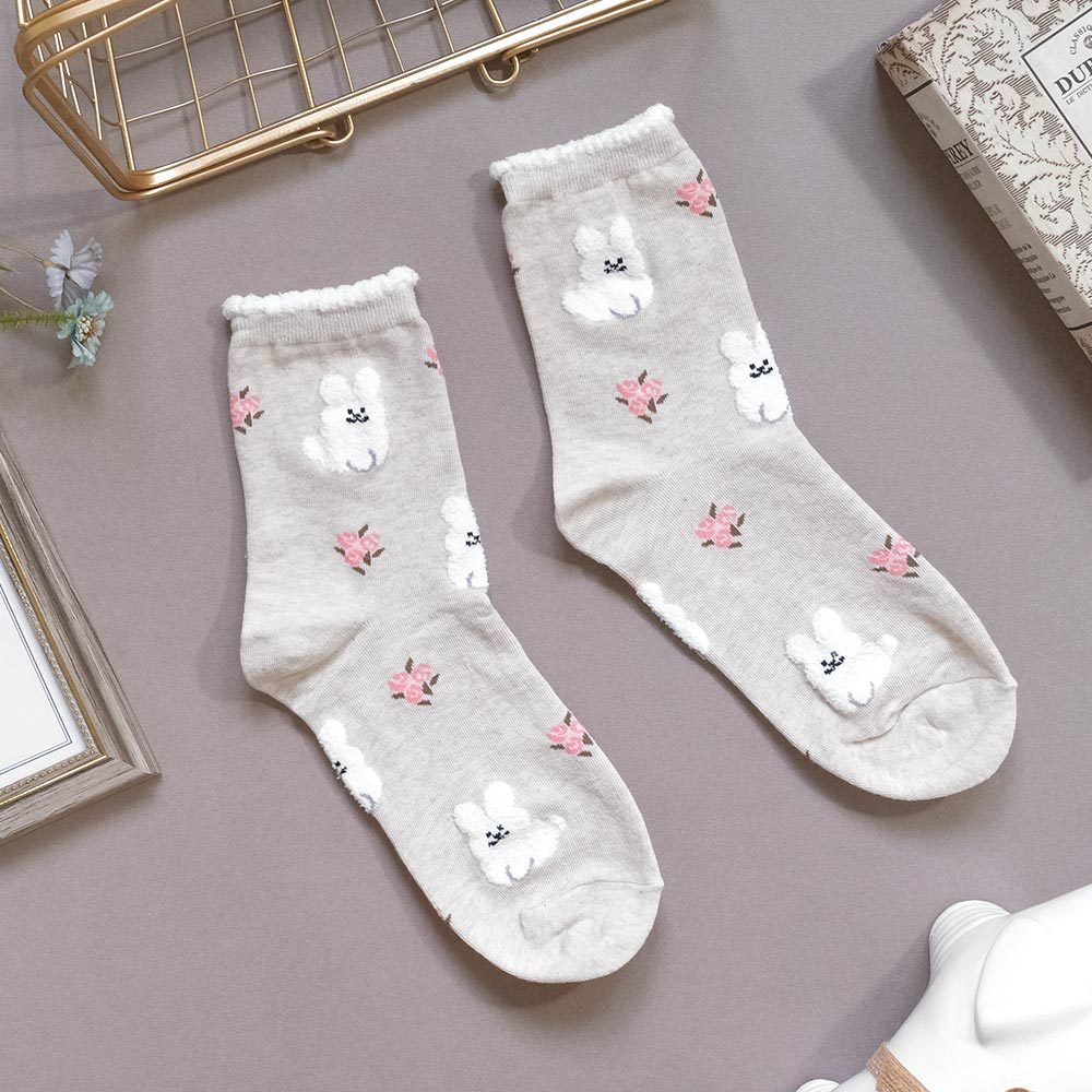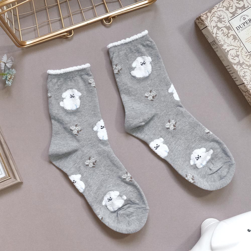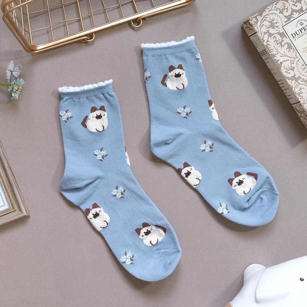 AHUA阿華有事嗎 立體毛毛滿版貓狗玫瑰花邊中筒襪 K2143 正韓襪子 百搭純棉襪 韓妞必備 少女襪白底|米白底|藍底|灰底|黑底SocksAHUA 韓國襪子品牌旗艦店