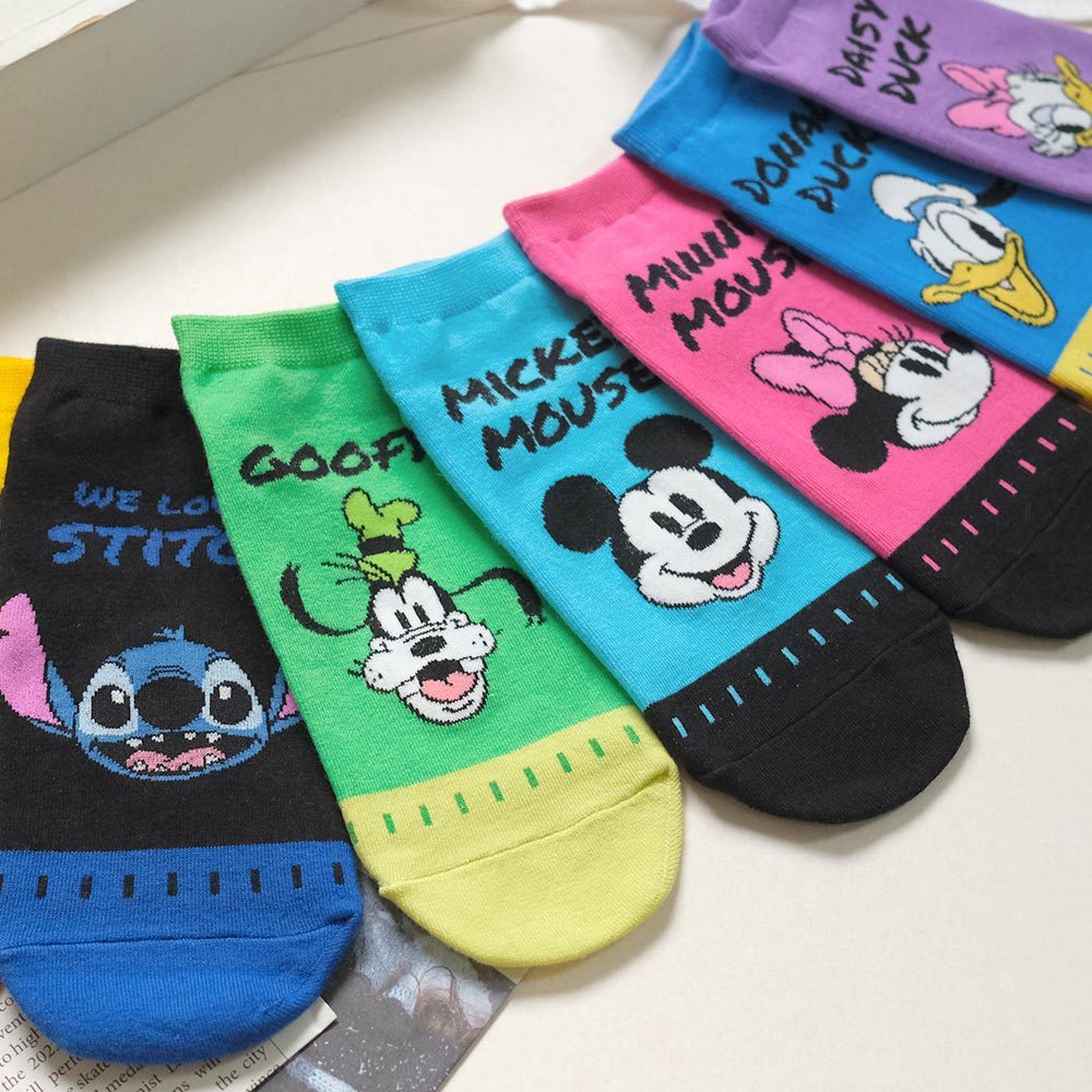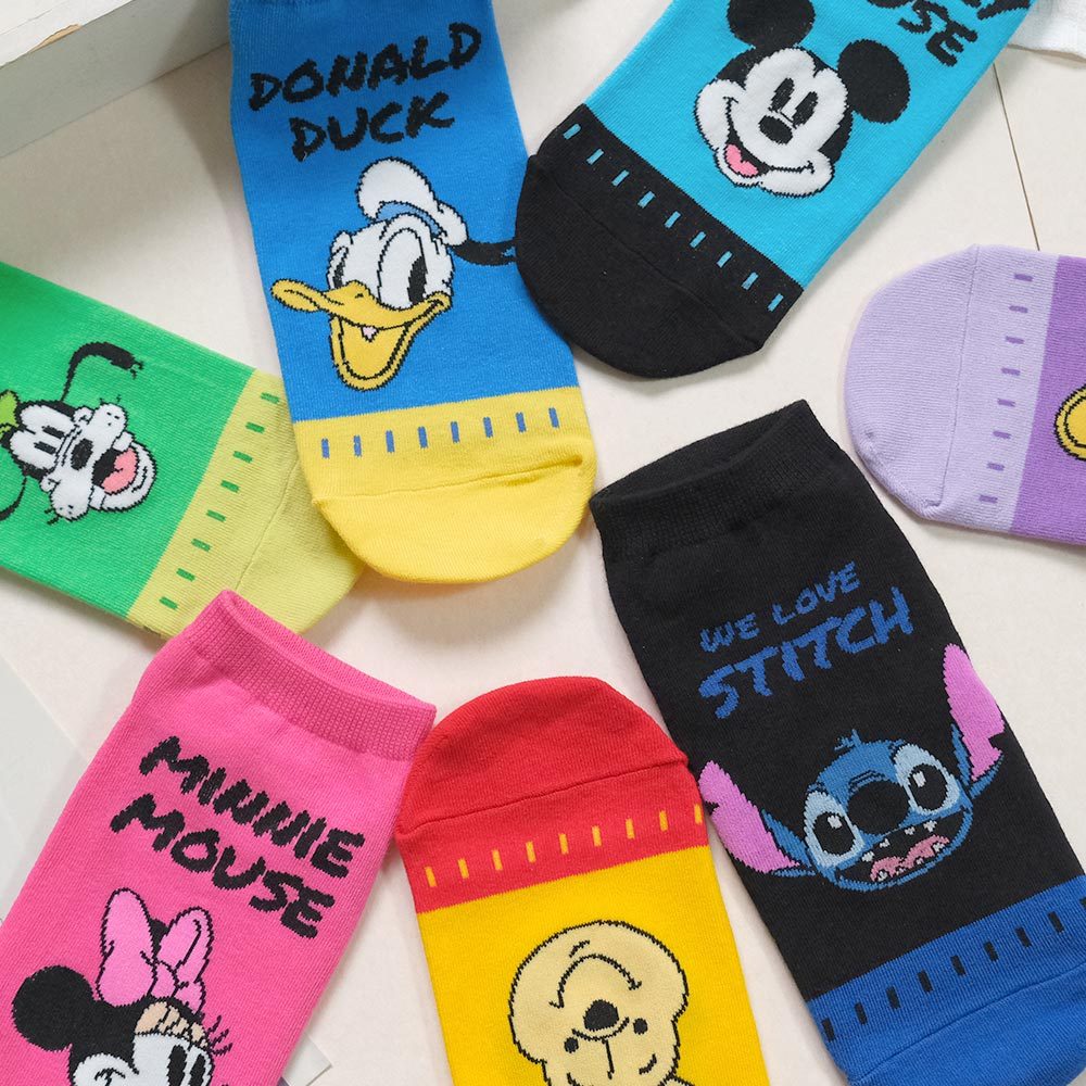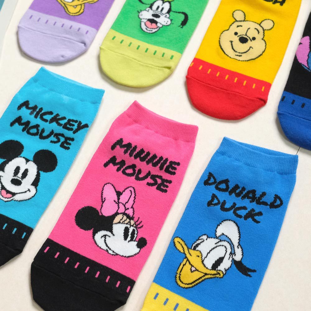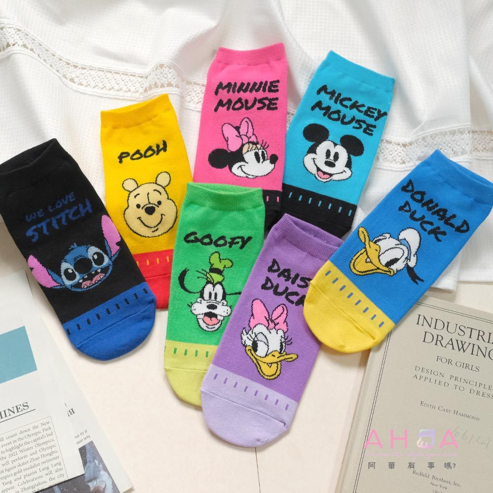 AHUA阿華有事嗎 迪士尼人物英文虛線拼色短襪 K2236 正韓襪子 百搭純棉襪 韓妞必備 少女襪藍綠底米奇|粉底米妮|藍底唐老鴨|紫底黛西|綠底高飛|黃底維尼|黑底史迪奇SocksAHUA 韓國襪子品牌旗艦店