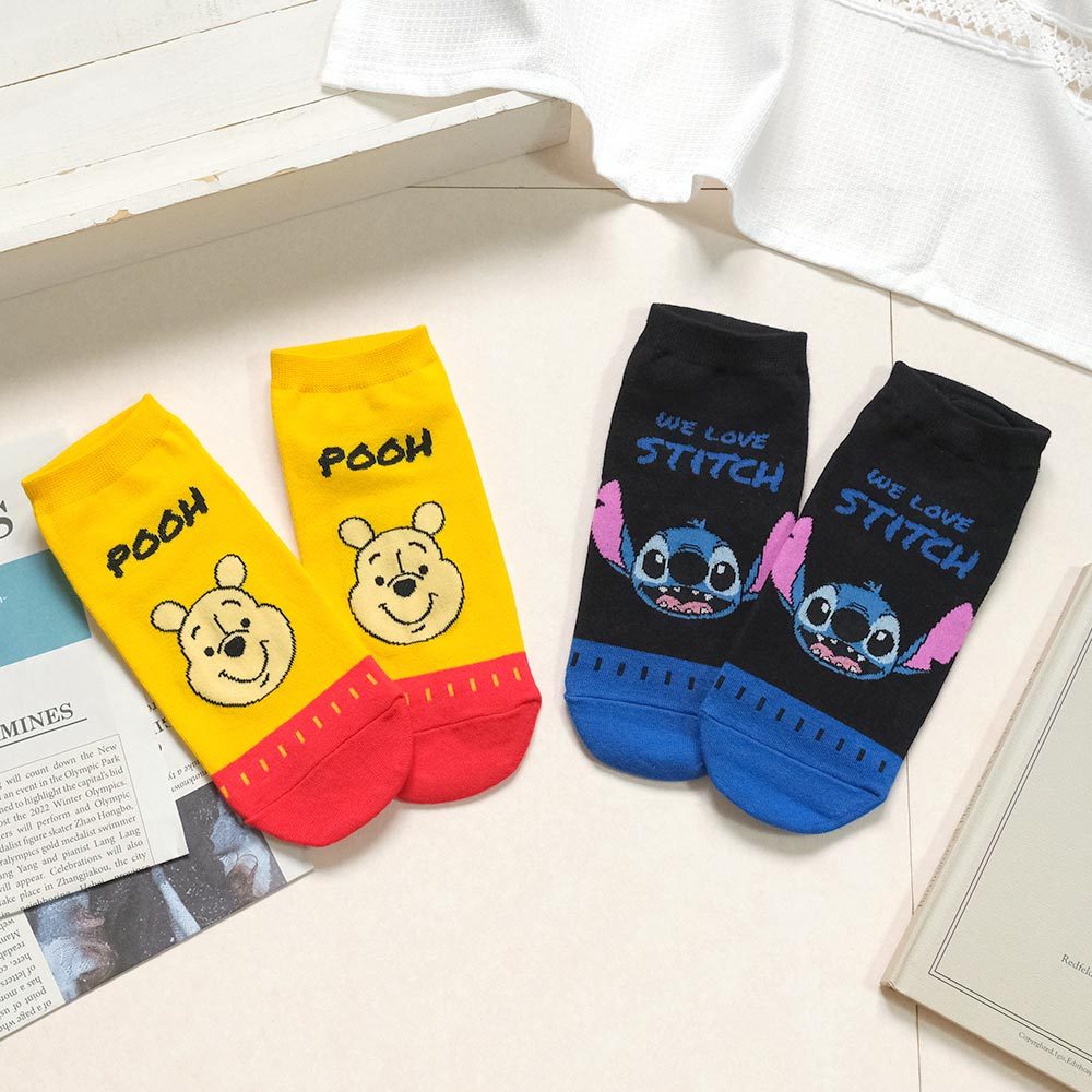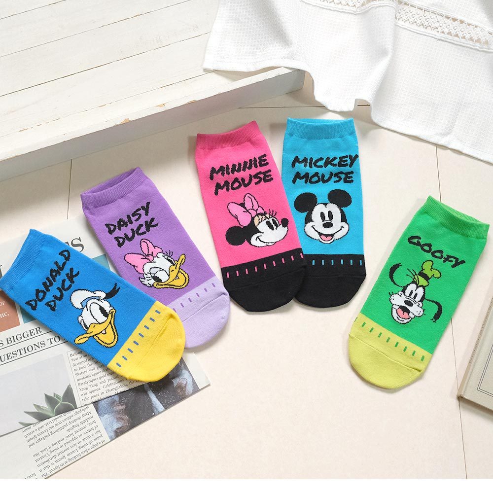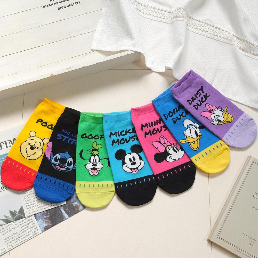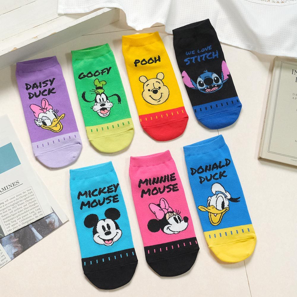 AHUA阿華有事嗎 迪士尼人物英文虛線拼色短襪 K2236 正韓襪子 百搭純棉襪 韓妞必備 少女襪藍綠底米奇|粉底米妮|藍底唐老鴨|紫底黛西|綠底高飛|黃底維尼|黑底史迪奇SocksAHUA 韓國襪子品牌旗艦店