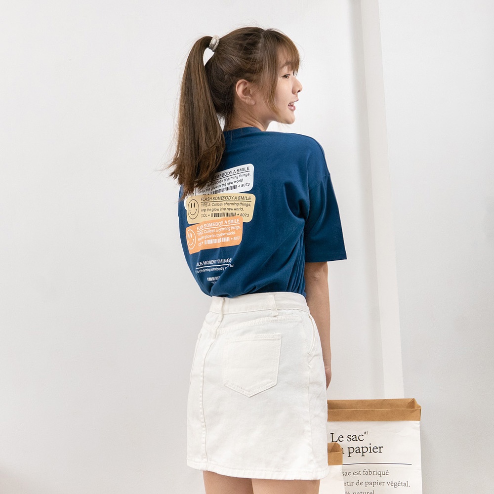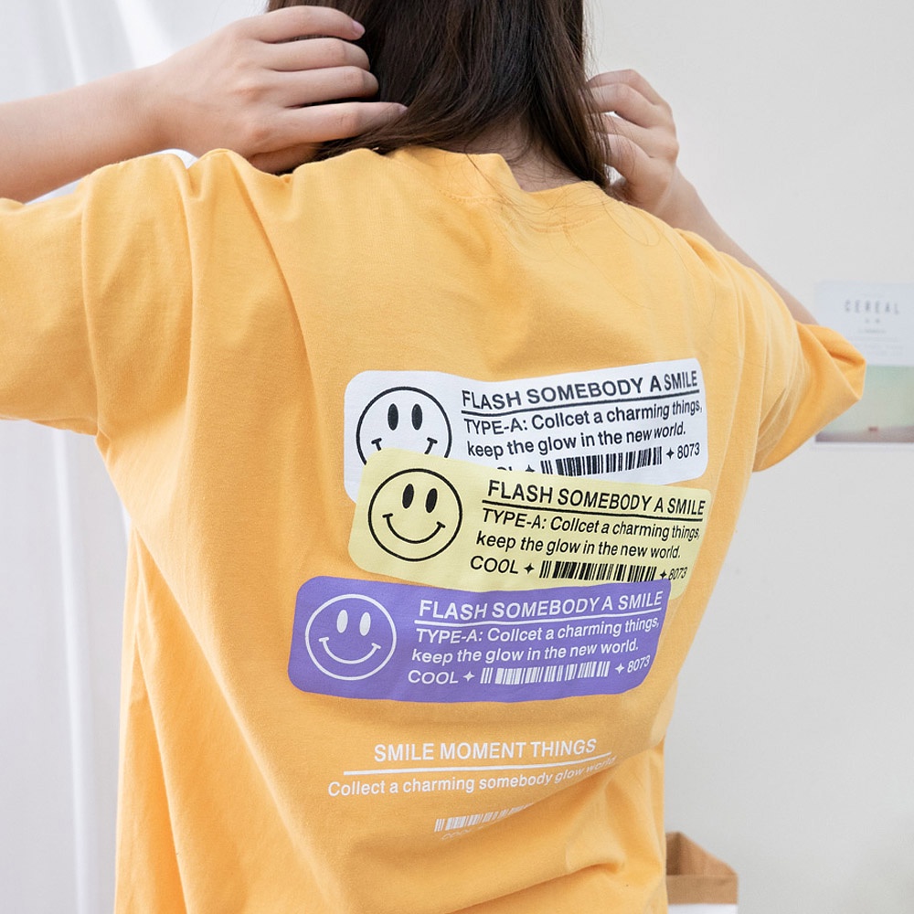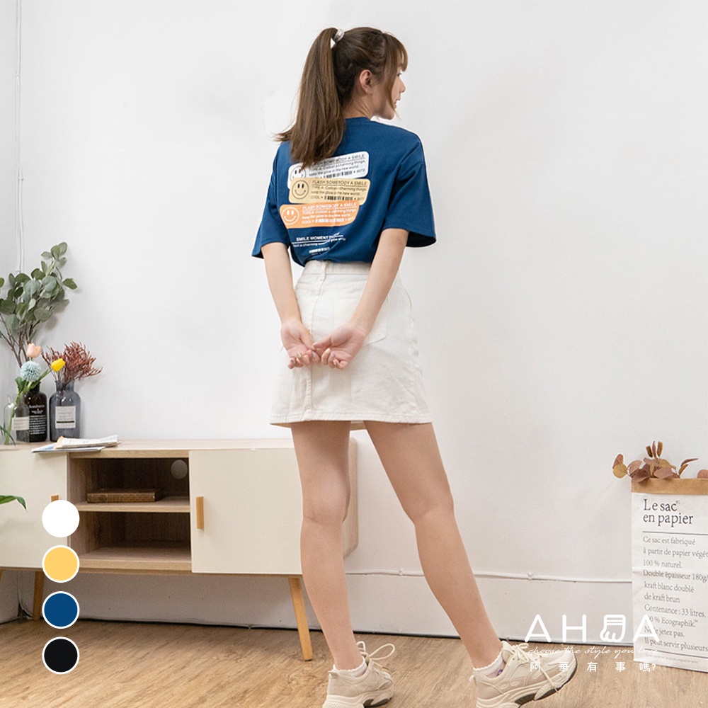 AHUA阿華有事嗎 韓國女裝 微笑英文標籤短袖T恤 短袖上衣 C1039 正韓直送 韓妞必備 百搭顯瘦基本款黃色|白色|深藍色|黑色T-shirtsAHUA 韓國襪子品牌旗艦店