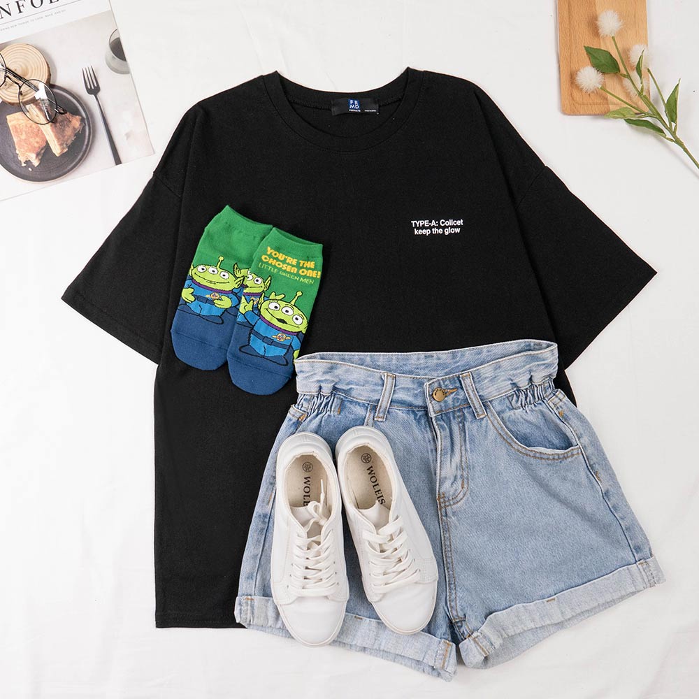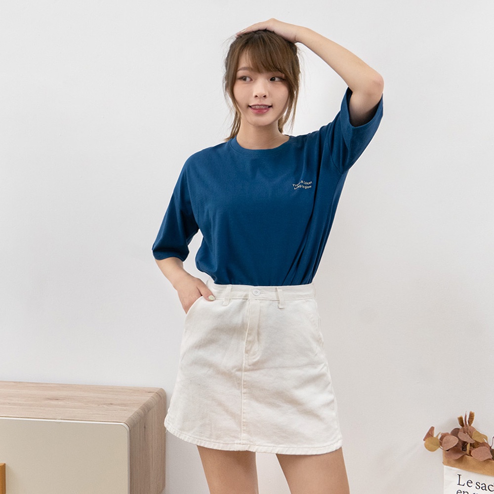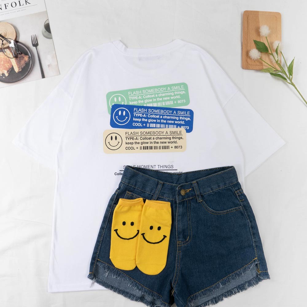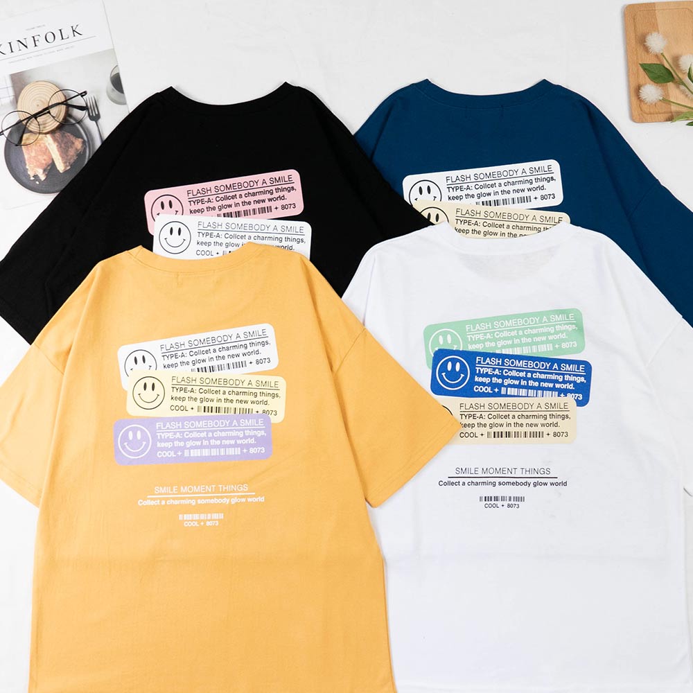 AHUA阿華有事嗎 韓國女裝 微笑英文標籤短袖T恤 短袖上衣 C1039 正韓直送 韓妞必備 百搭顯瘦基本款黃色|白色|深藍色|黑色T-shirtsAHUA 韓國襪子品牌旗艦店