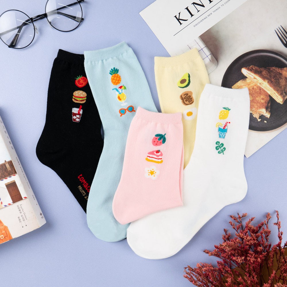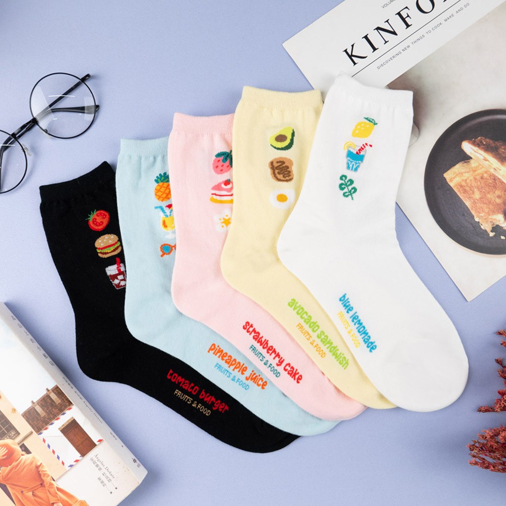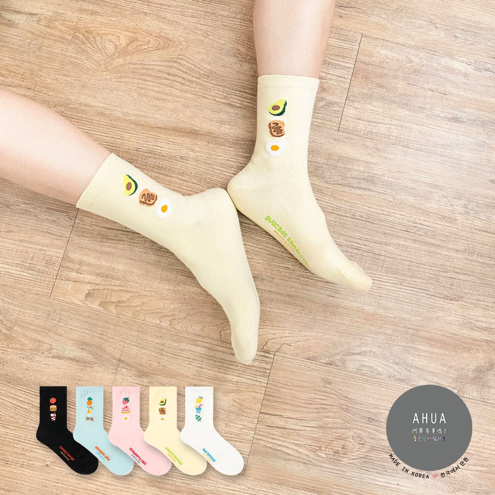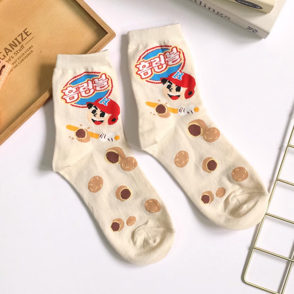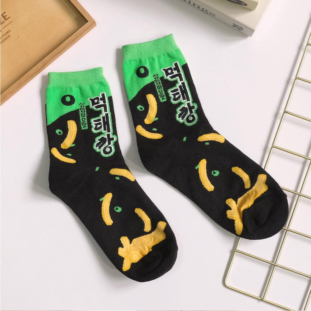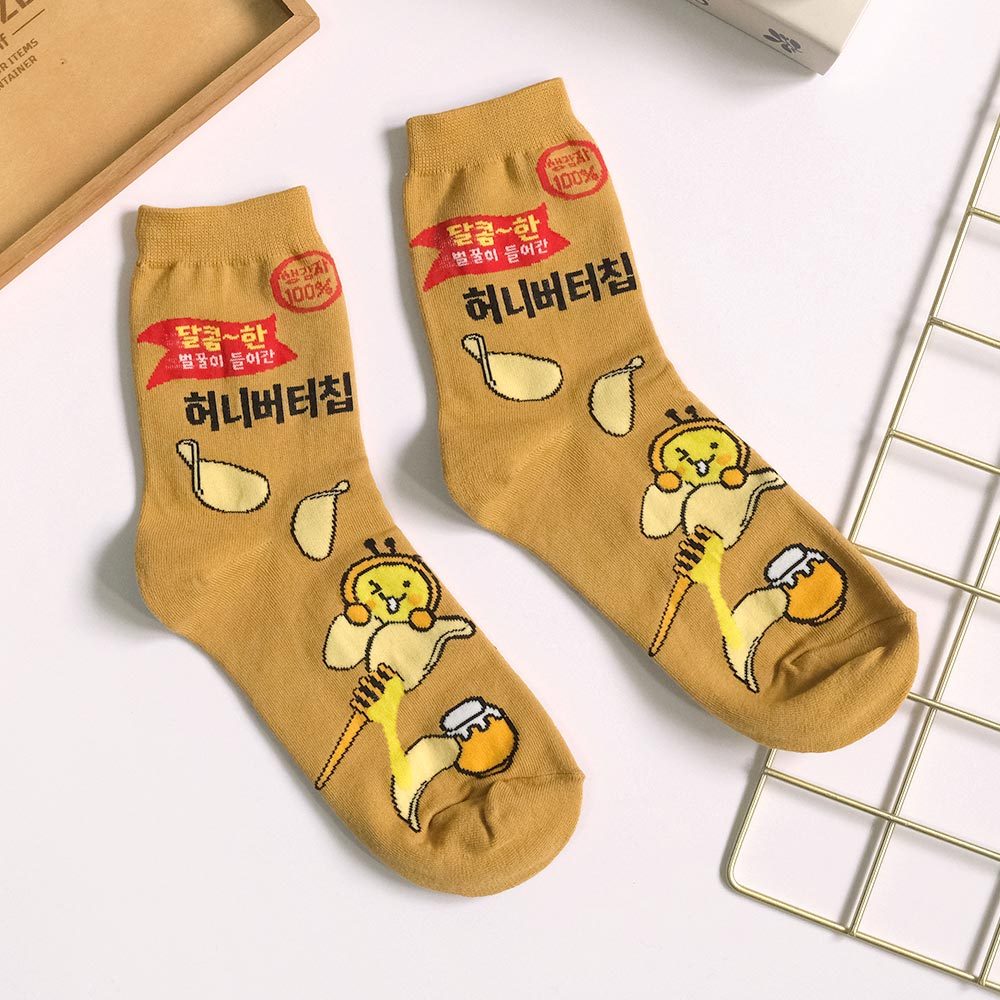 AHUA阿華有事嗎 韓國風味零嘴系列中筒襪 K2277 正韓襪子 百搭純棉襪 韓妞必備 少女襪米黃底夾心泡芙|薑黃底蜂蜜奶油洋芋片|黑底青陽辣椒脆魚條SocksAHUA 韓國襪子品牌旗艦店