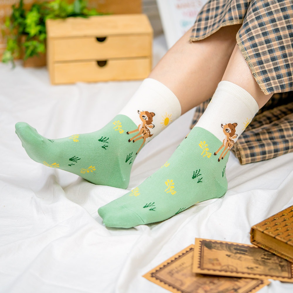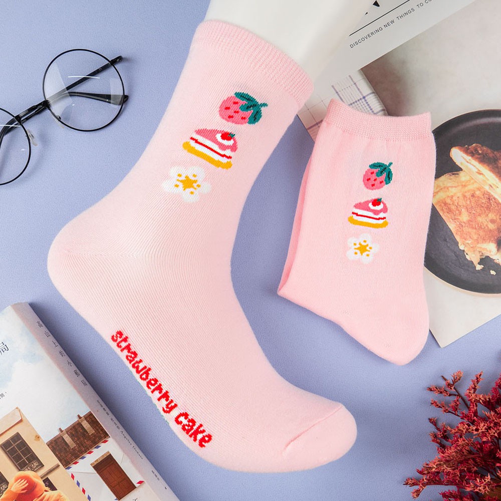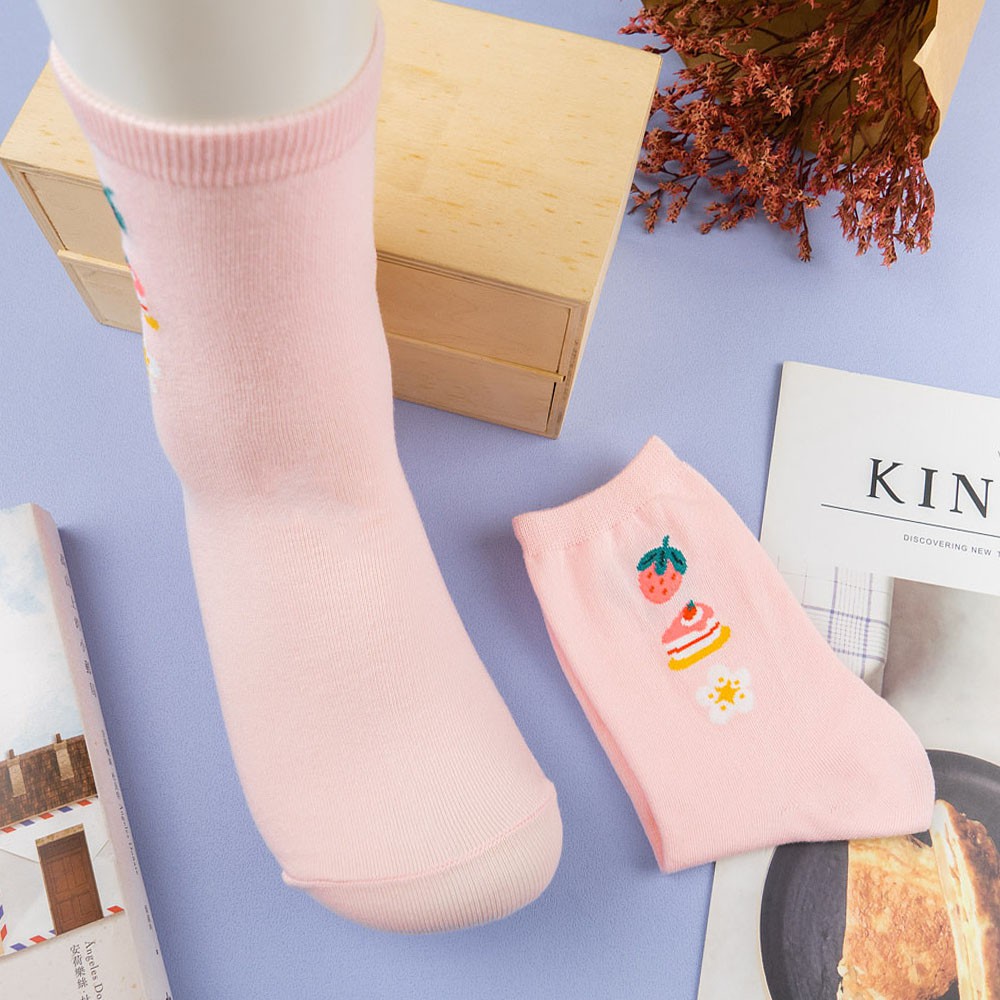 阿華有事嗎AUHA 韓國襪子 三個小圖粉嫩中筒襪 K1048 少女襪 韓妞必備長襪 百搭純棉襪藍底|白底|粉底|黃底|黑底SocksAHUA 韓國襪子品牌旗艦店