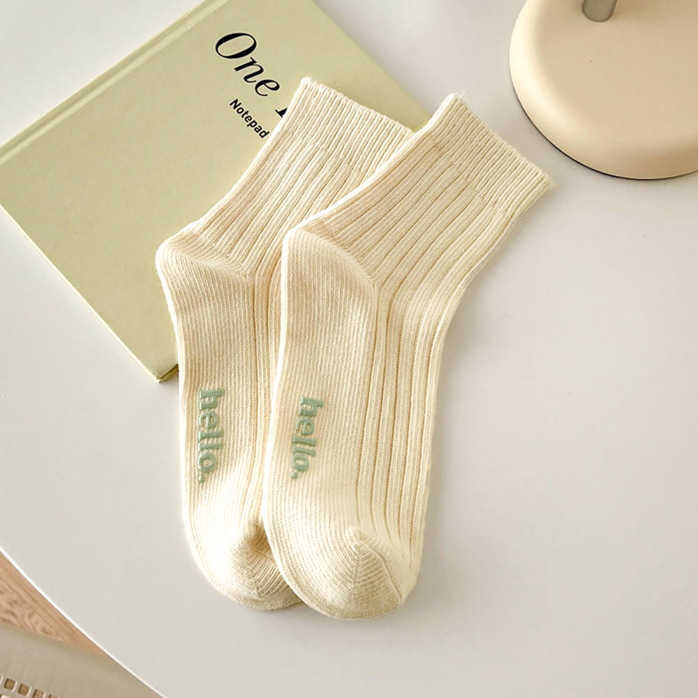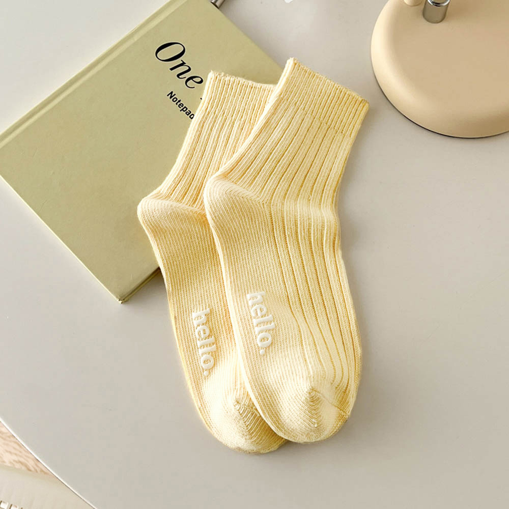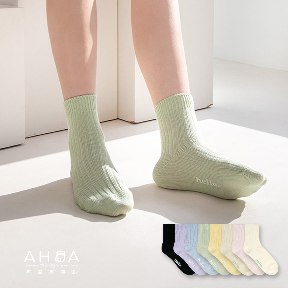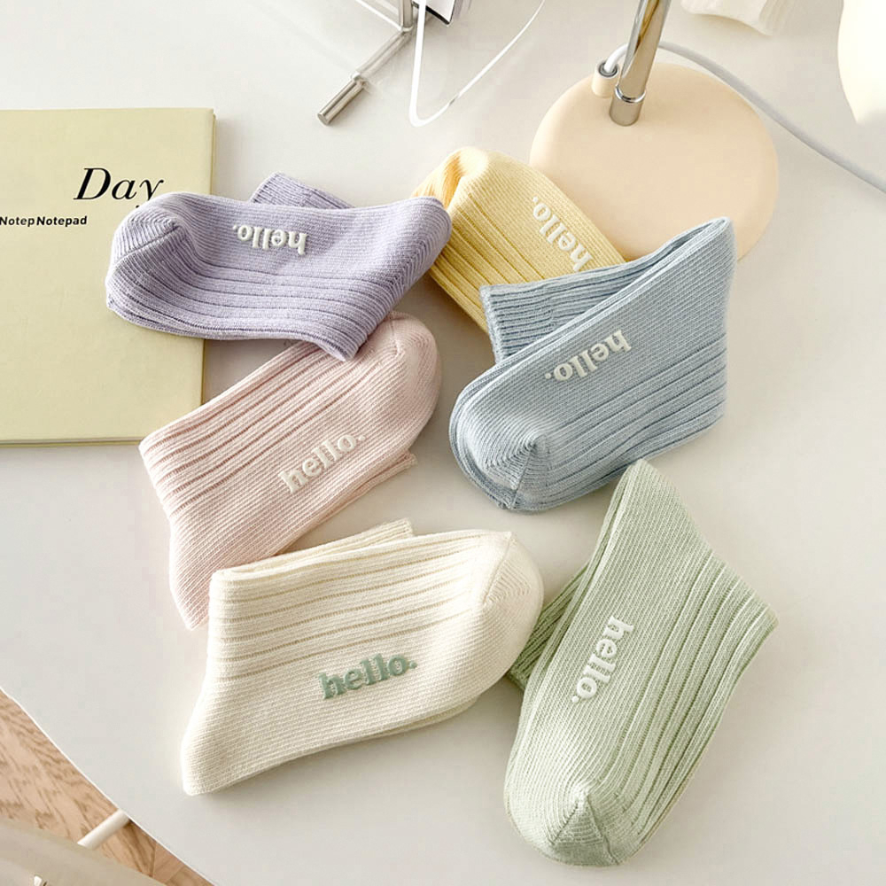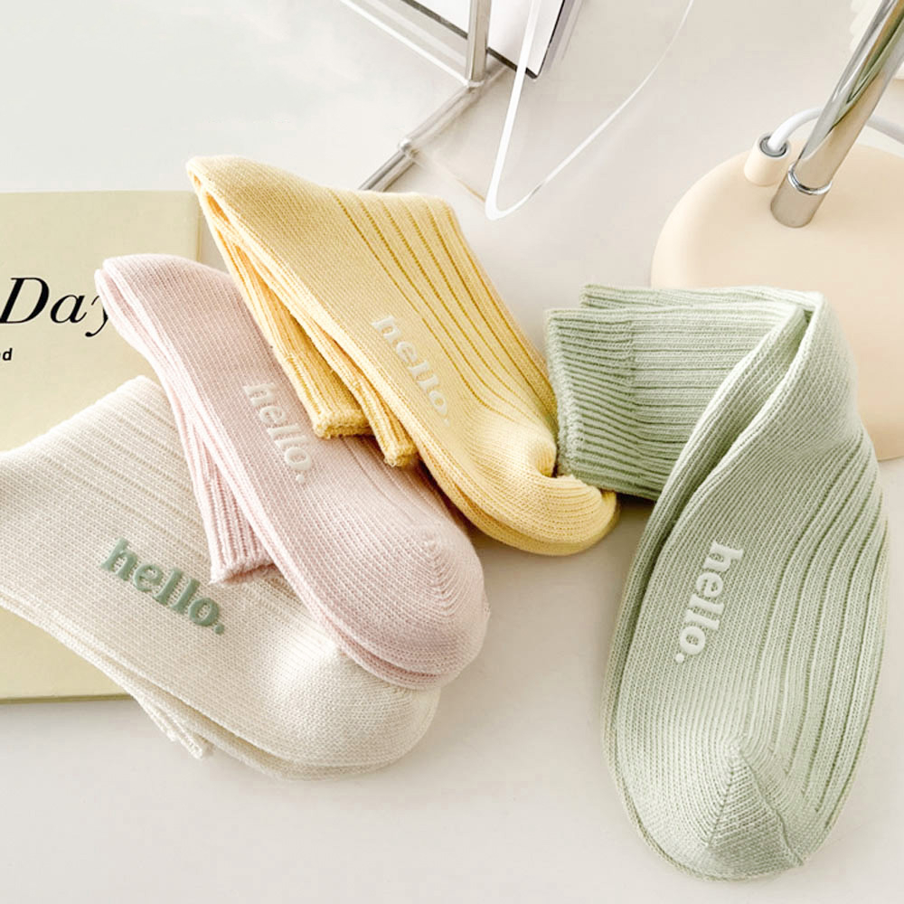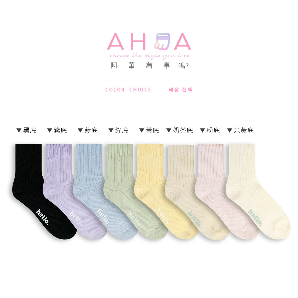AHUA 純色hello中筒襪 S0474 字母襪子 襪子推薦 流行襪首選 可愛 日系襪子 純色襪子 阿華有事嗎米黃底|粉底|黃底|藍底|紫底|綠底|黑底|奶茶底SocksAHUA 韓國襪子品牌旗艦店