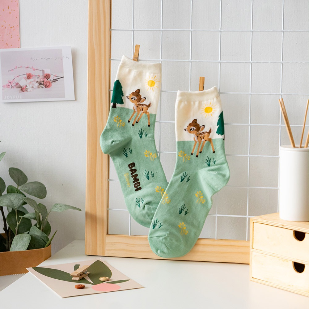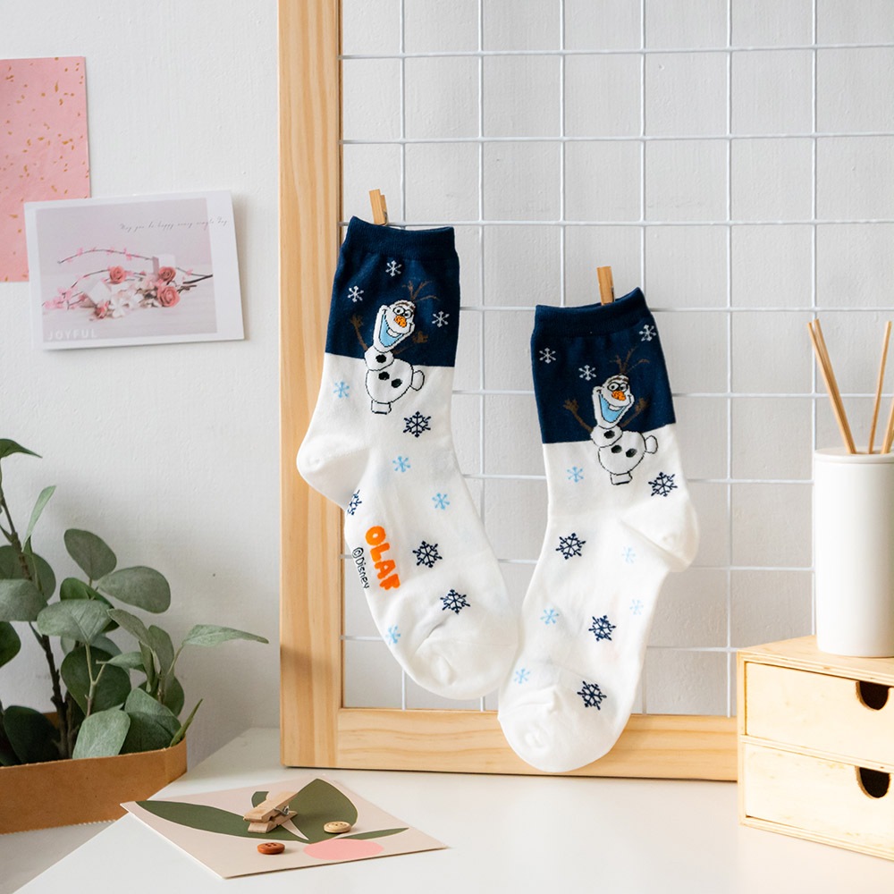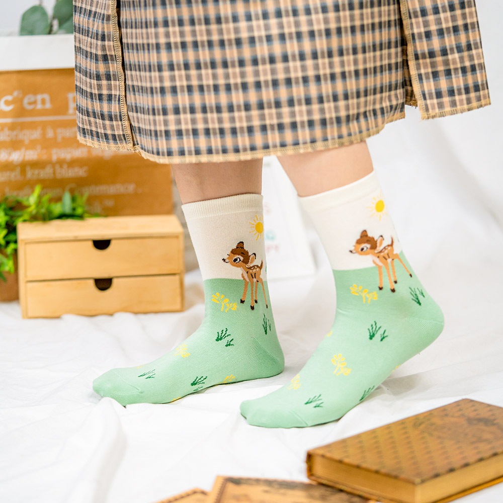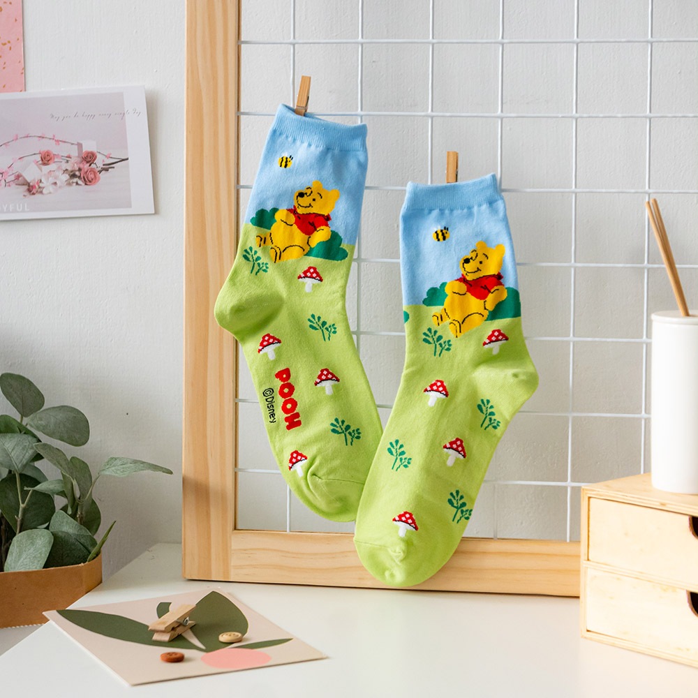 AHUA阿華有事嗎 韓國襪子 迪士尼襪口拼色情境中筒襪 K1907 韓妞必備 百搭純棉襪 正韓卡通授權淺藍底插腰米奇|粉底招手米妮|草綠底維尼|淺綠底小鹿斑比|白底開心雪寶|藍底史迪奇SocksAHUA 韓國襪子品牌旗艦店