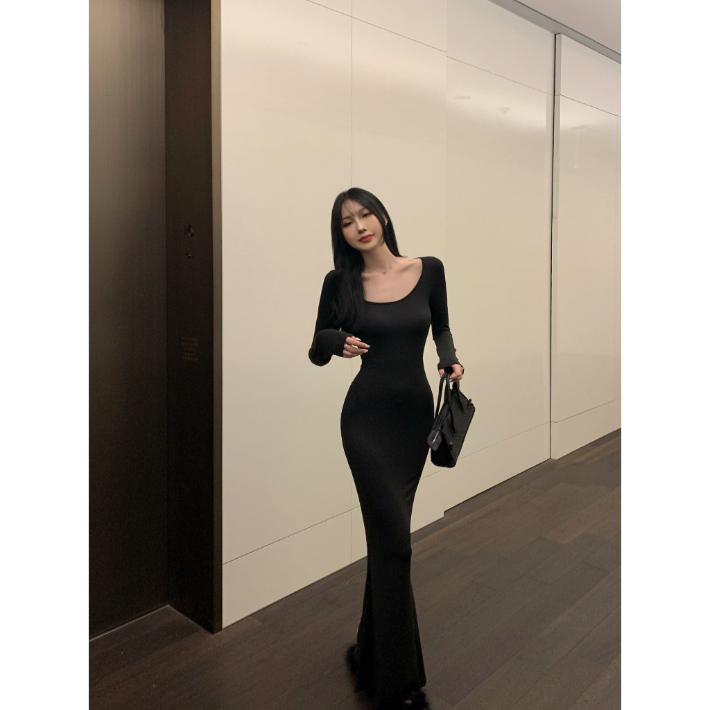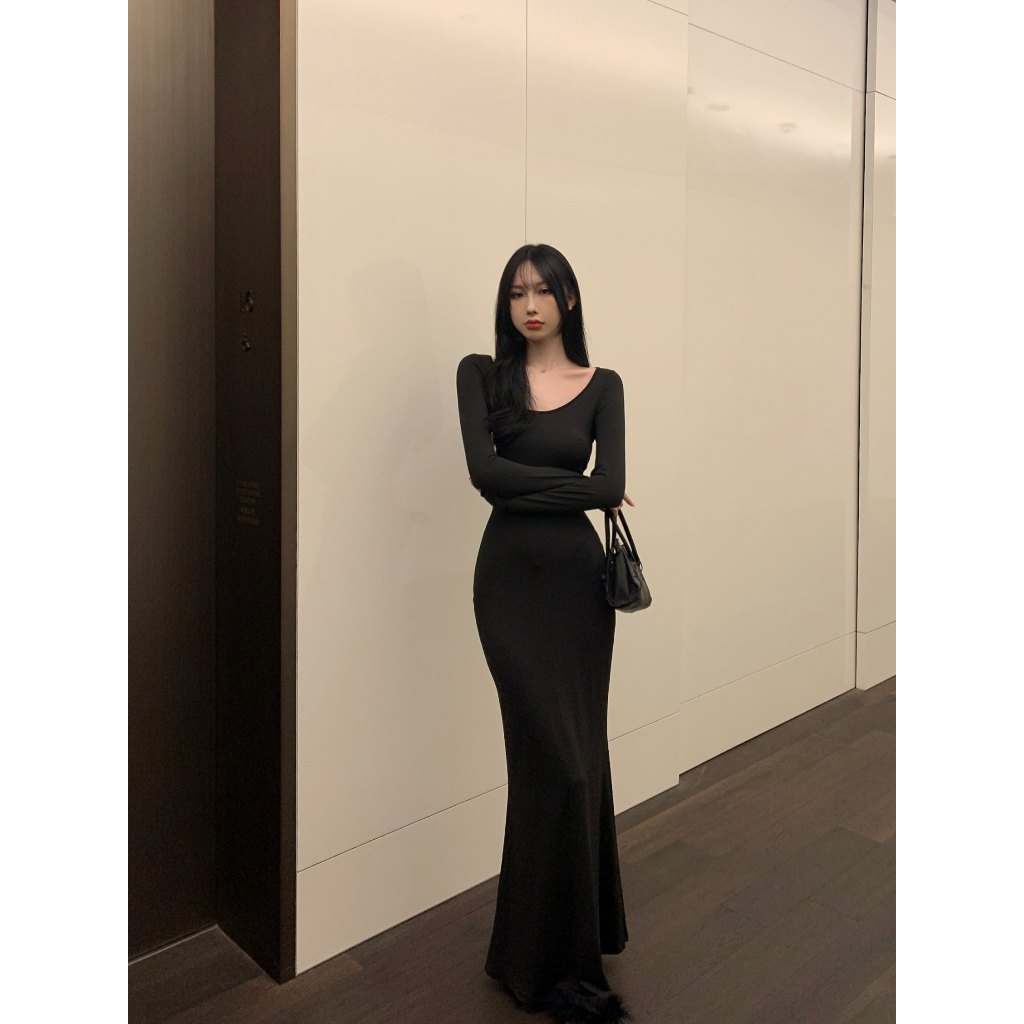 ANNE|出清中|520降249| 貼身連衣裙【AD10137】爆乳洋裝 緊身洋裝 魚尾洋裝 合身連衣裙 長袖連身裙 長