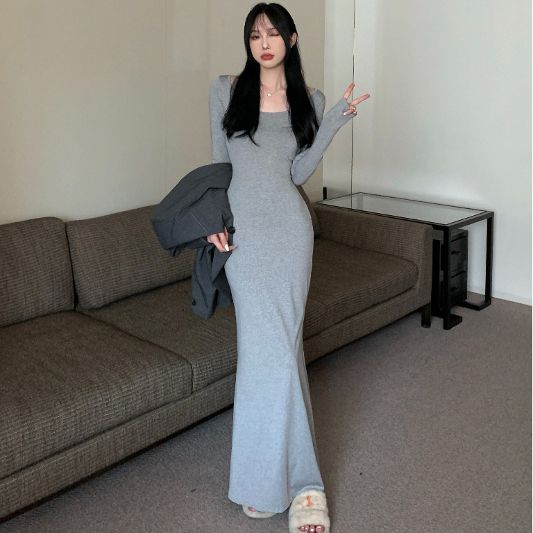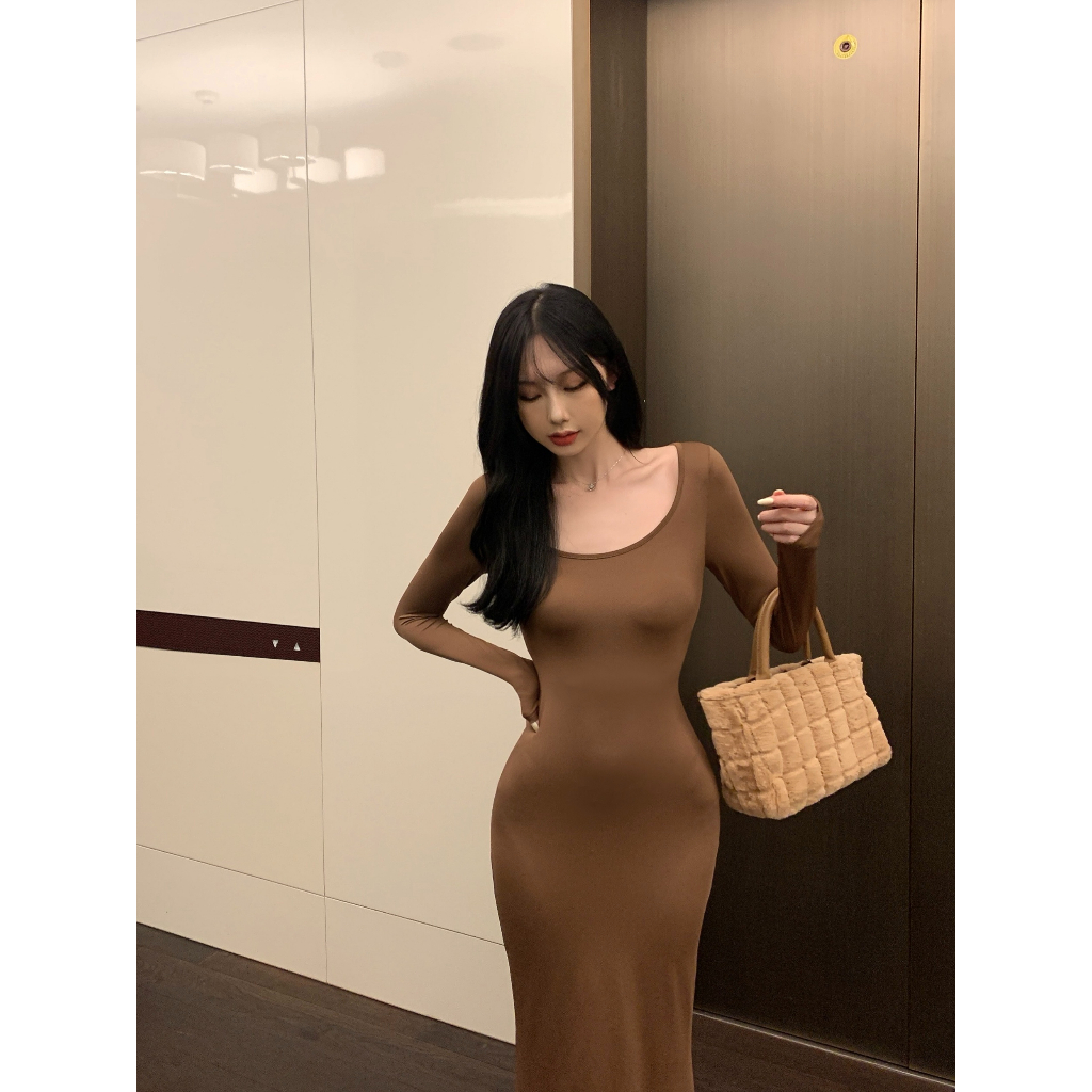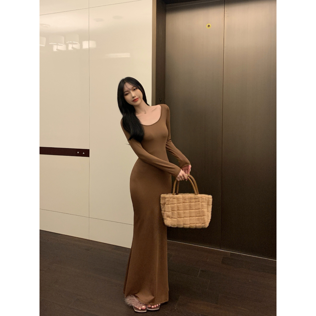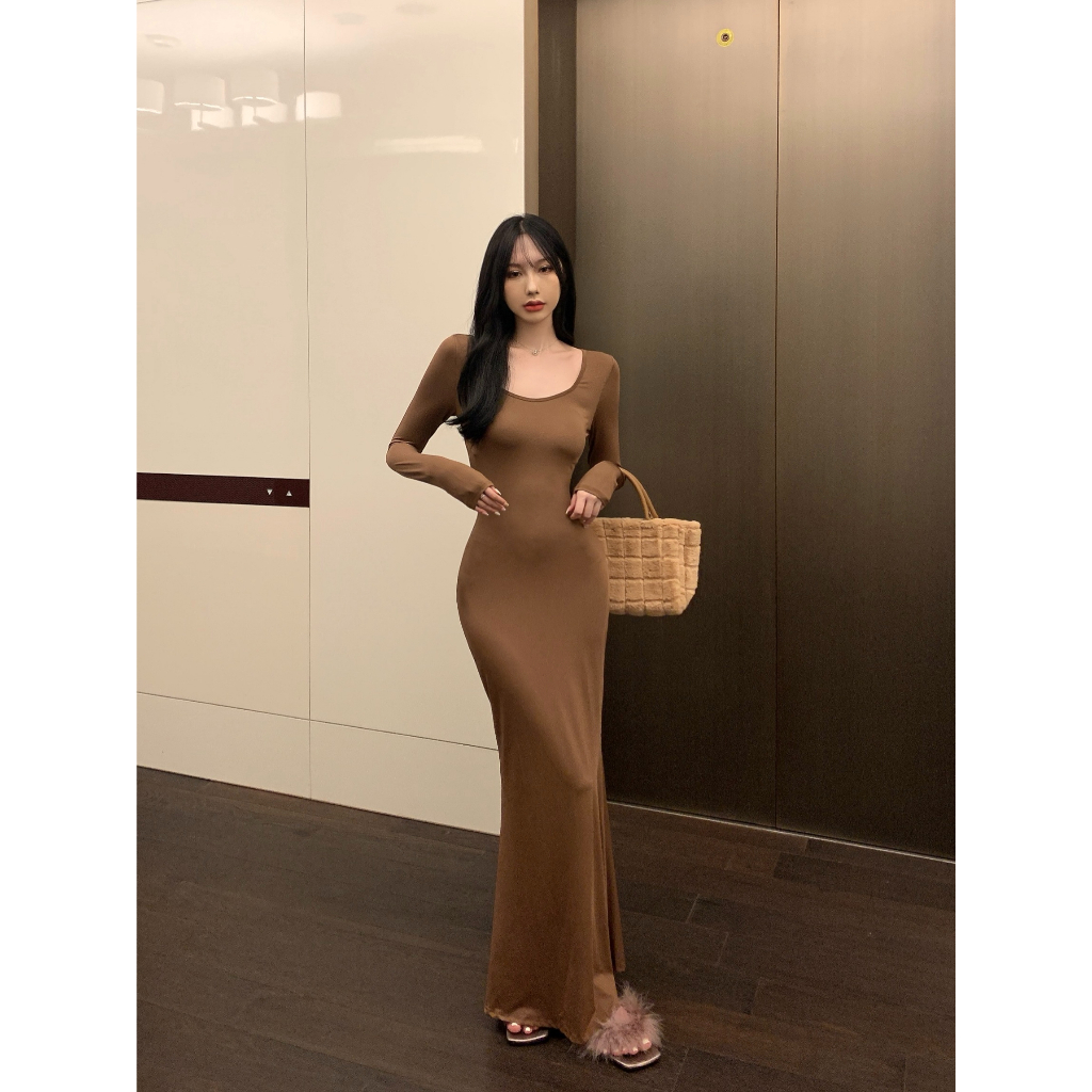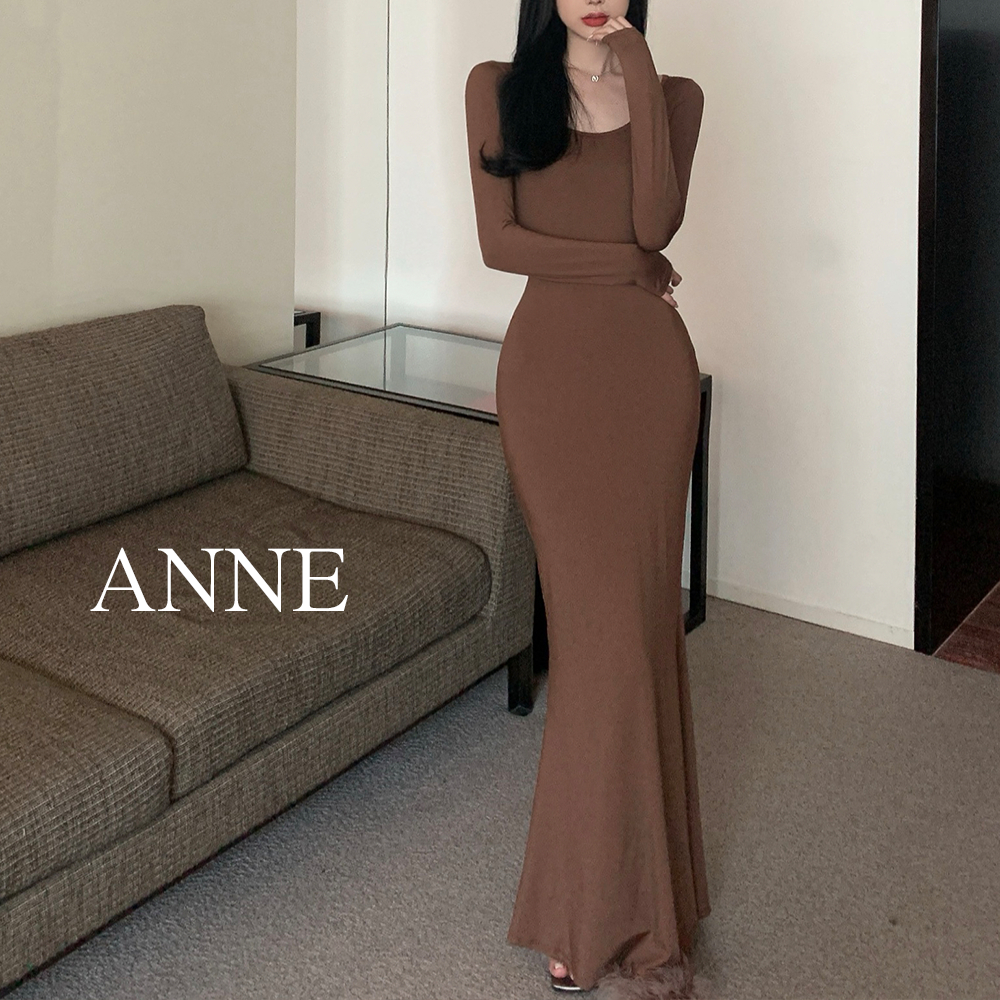 ANNE|出清中|520降249| 貼身連衣裙【AD10137】爆乳洋裝 緊身洋裝 魚尾洋裝 合身連衣裙 長袖連身裙 長灰|咖啡|黑ANNE 孕婦裝 孕婦內衣褲 專櫃平替