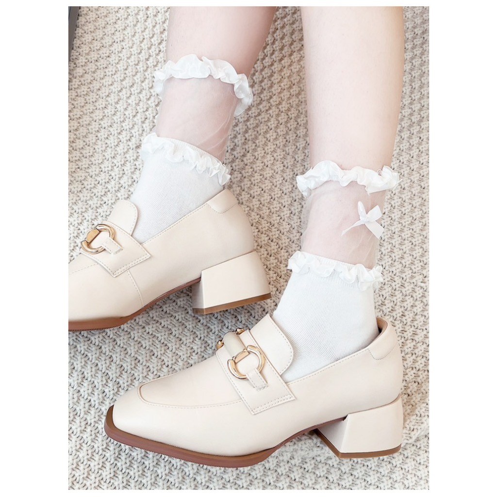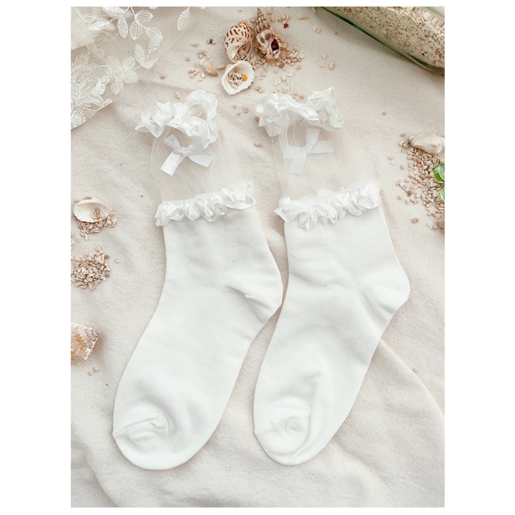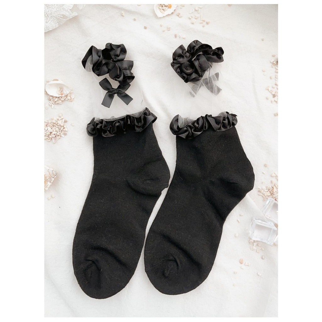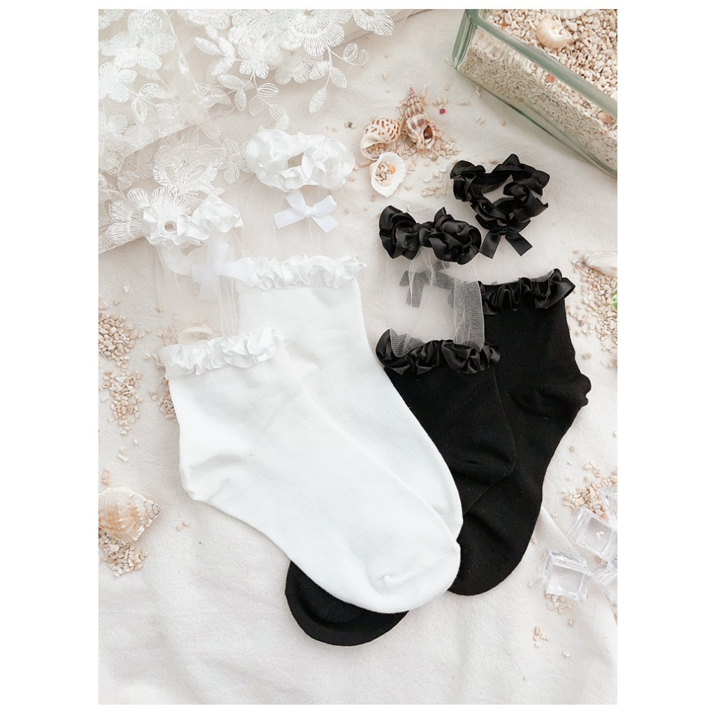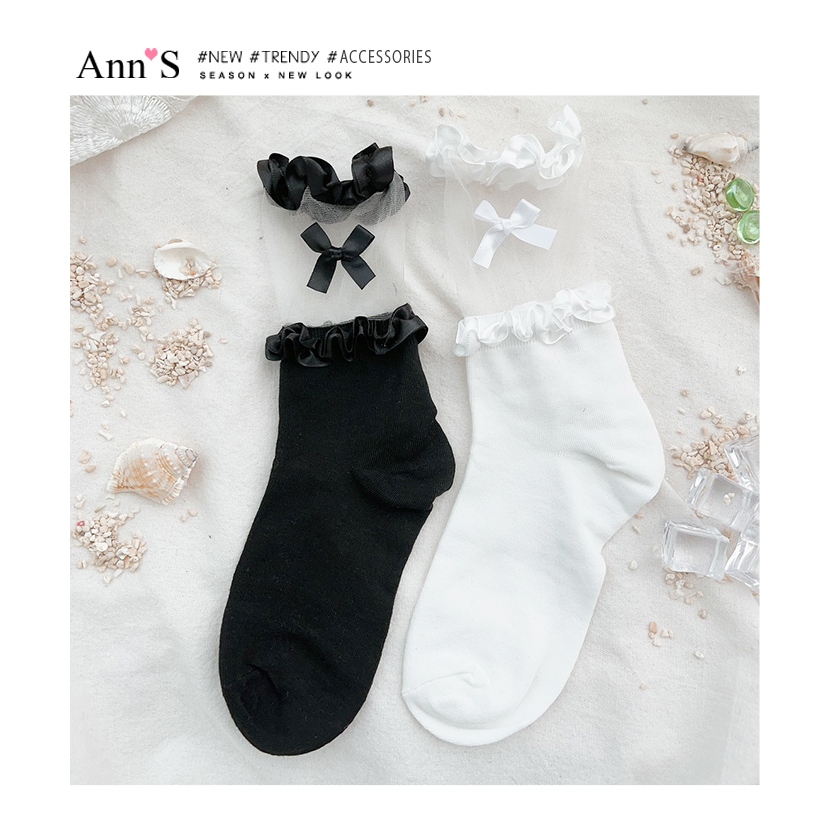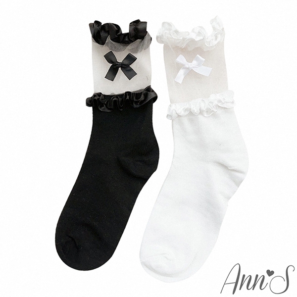 Ann’S 透明蕾絲花邊蝴蝶結蘿莉塔中筒襪-2色黑|白SocksAnn’S 女鞋官方旗艦店