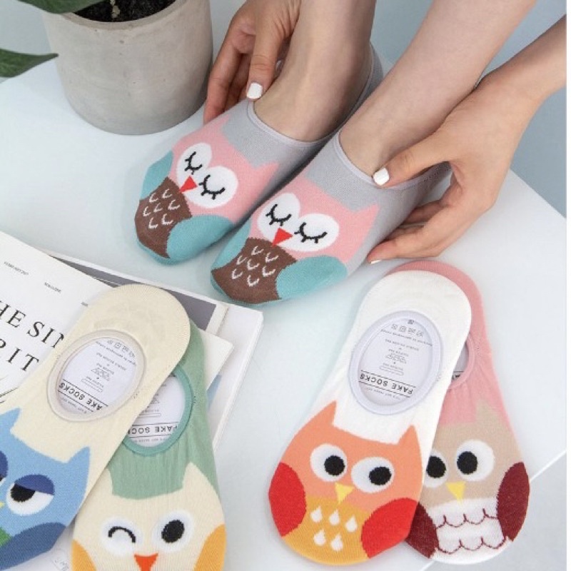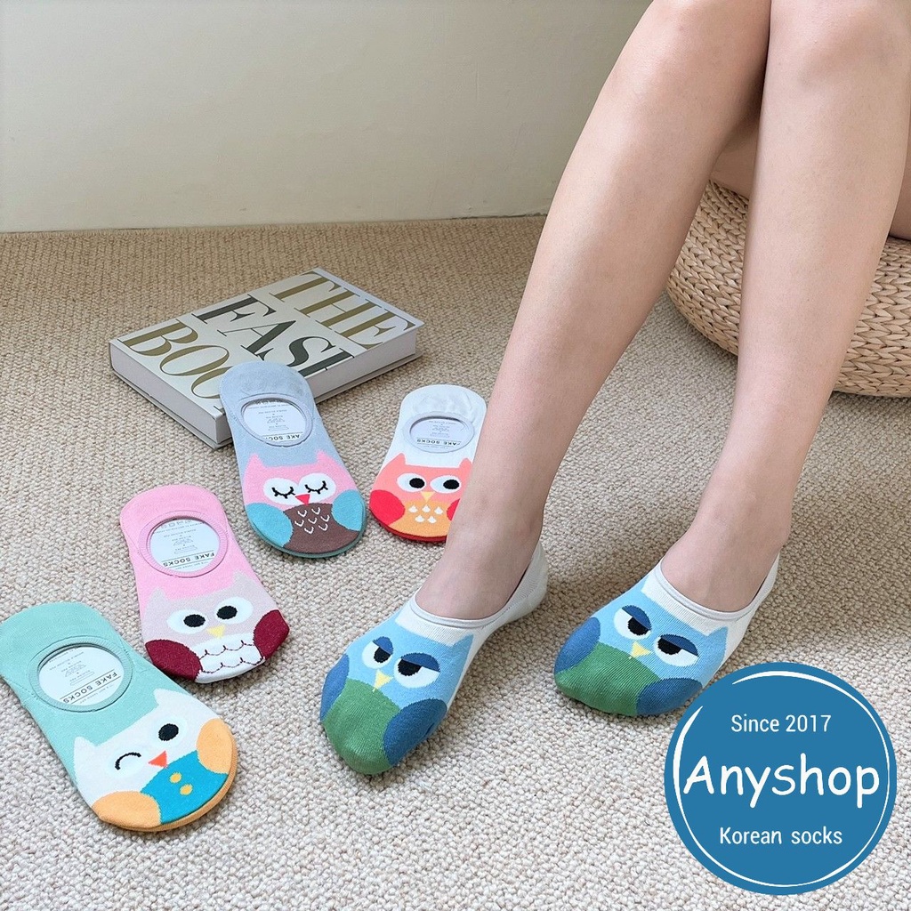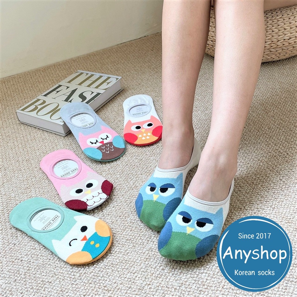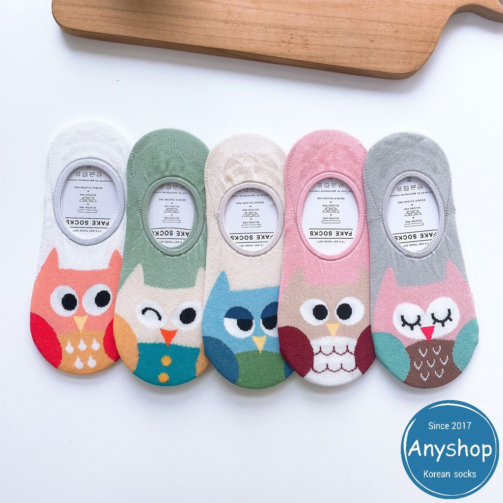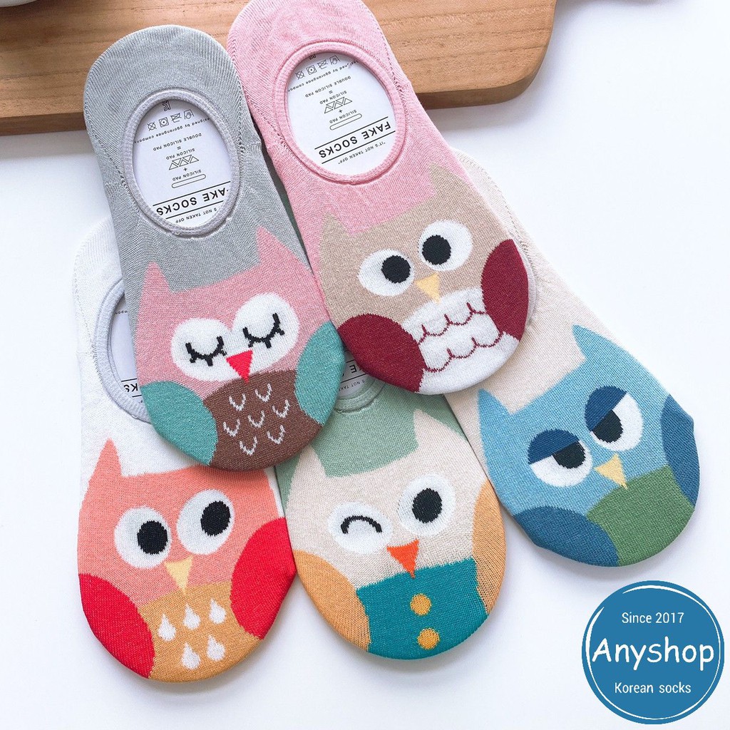 Anyshop韓國襪 貓頭鷹船型襪 隱形襪 可愛襪子 穿鞋不外露 後跟止滑防脫 女孩必備 韓襪 韓國襪 韓國襪子N204