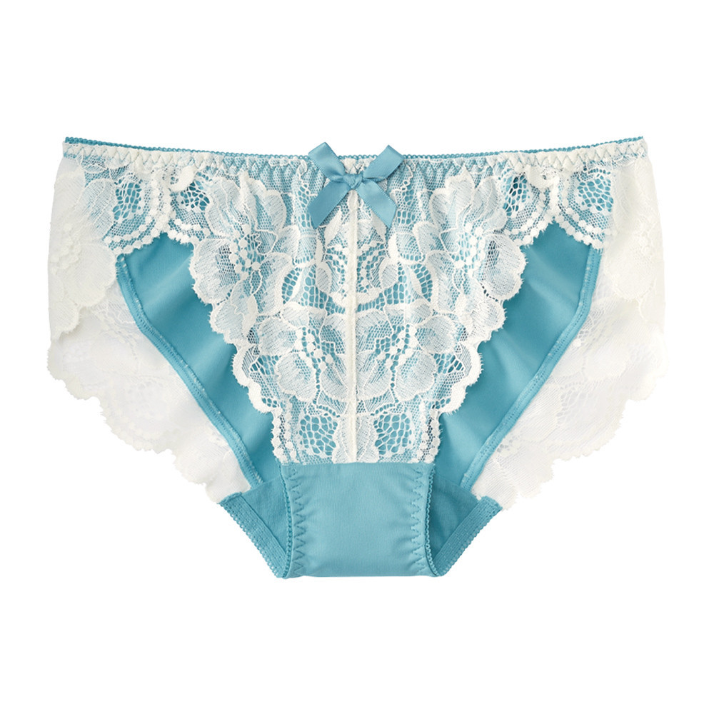 淑女花卉圖案性感交叉蕾絲三角內褲2-寶藍色-603722p-BU52M|L|LLPantiesaimerfeel