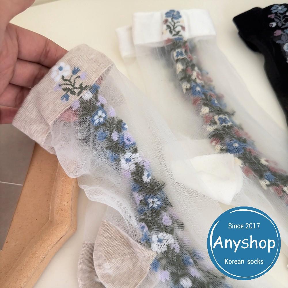 Anyshop韓國襪 透膚襪 碎花透膚襪 韓國製造 透膚紗襪 植物襪 夏季襪款夏季單品 小花花 透膚花 N711黑色黑紗【N711】|白色【N711】|米色【N711】|深藍色【N711】SocksAnyshop韓國襪專賣 | 零售 | 團購 | 批發