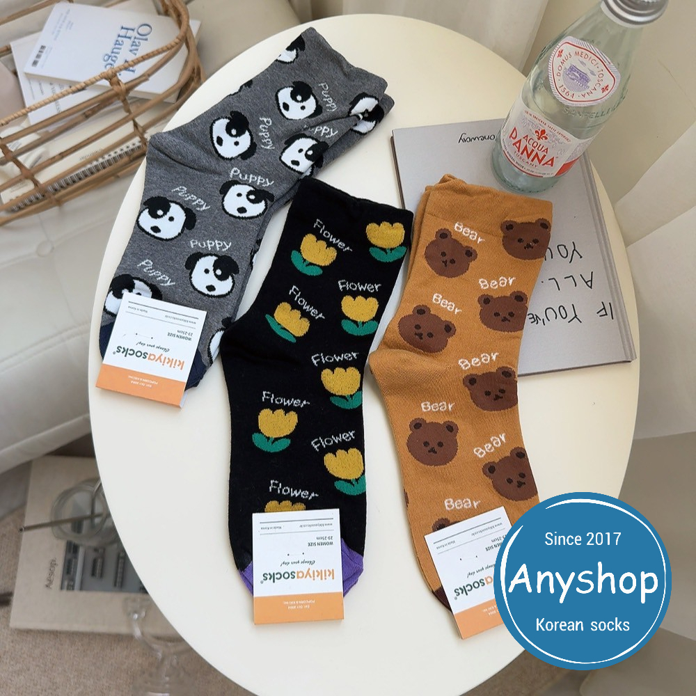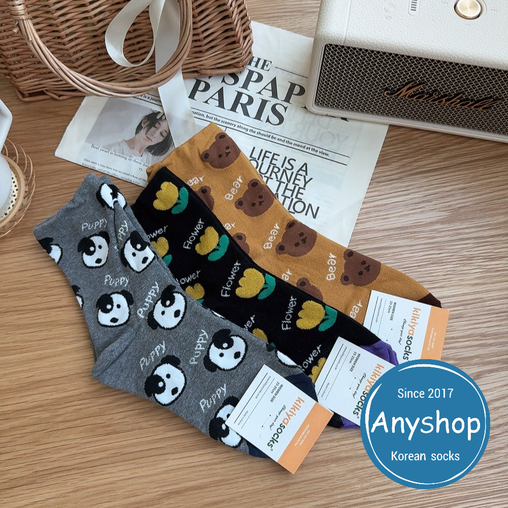 Anyshop韓國襪 文青可愛風搞怪襪 中筒襪 花花 鬱金香襪子 愛心 韓襪 熊熊 韓國襪子 狗狗08301黑底鬱金香【08301】|芥黃熊熊【08301】|粉底愛心【08301】|灰底狗狗【08301】SocksAnyshop韓國襪專賣 | 零售 | 團購 | 批發