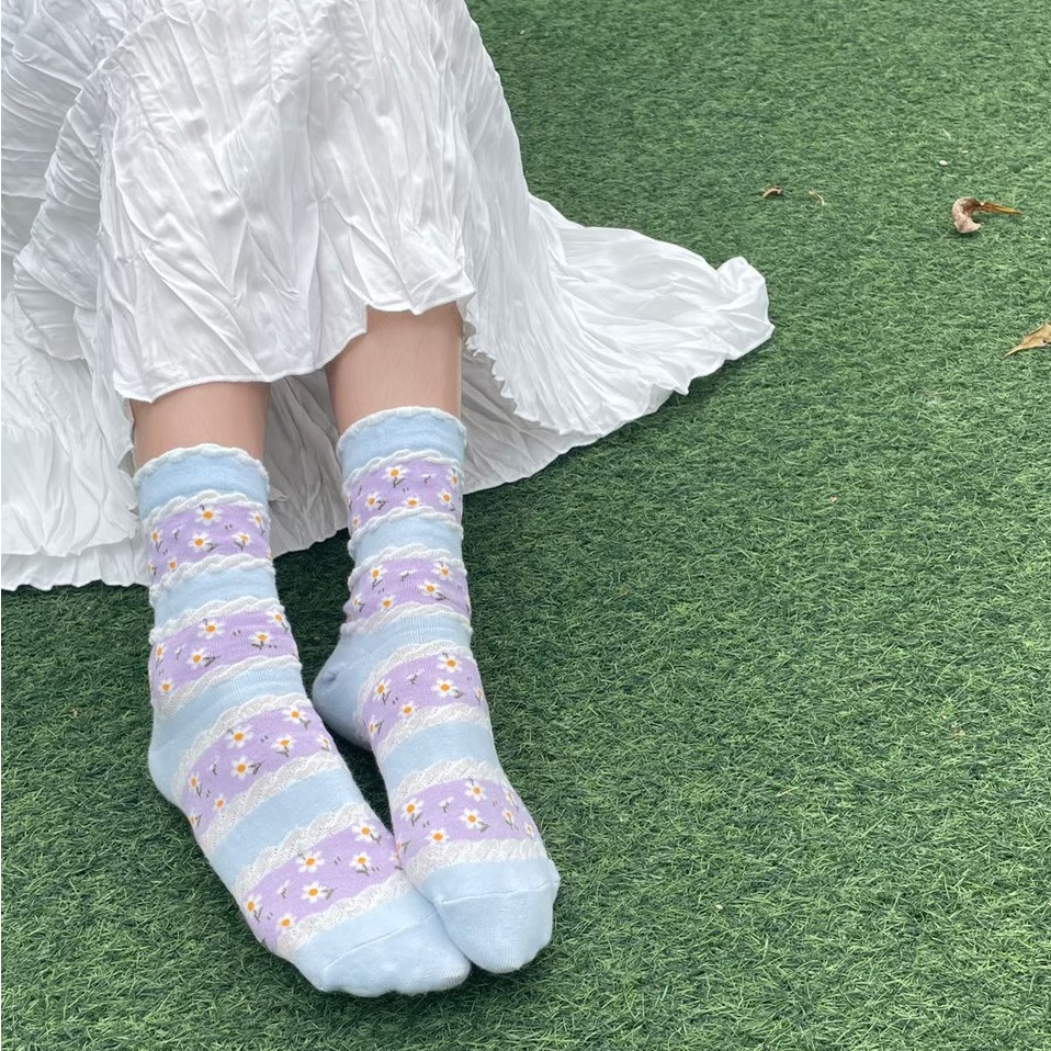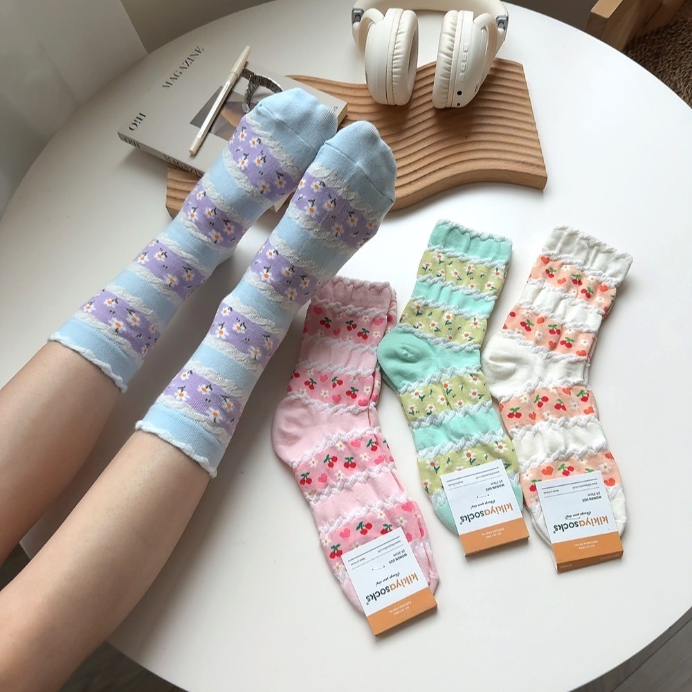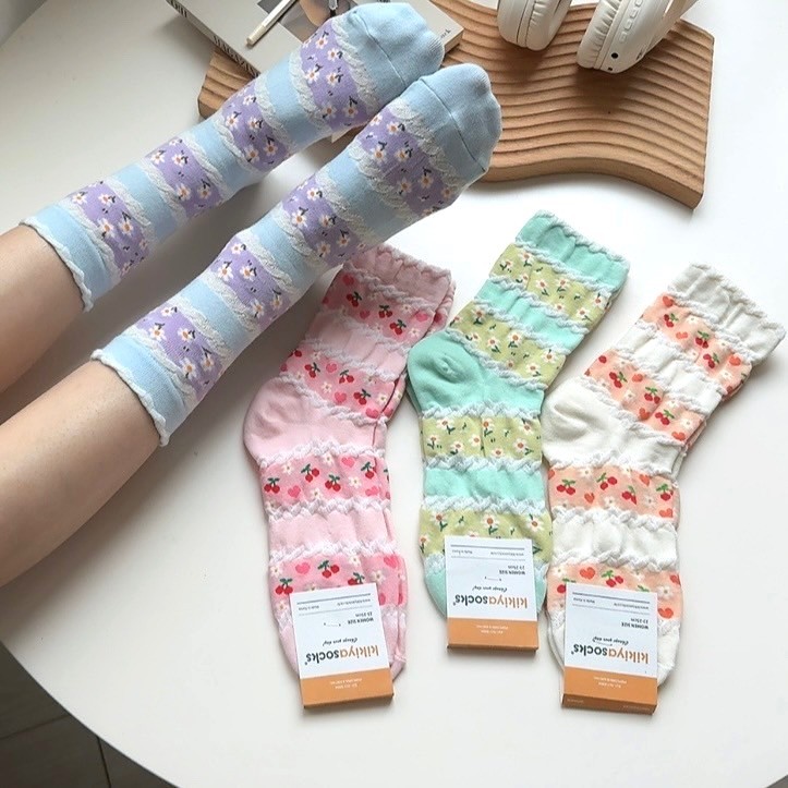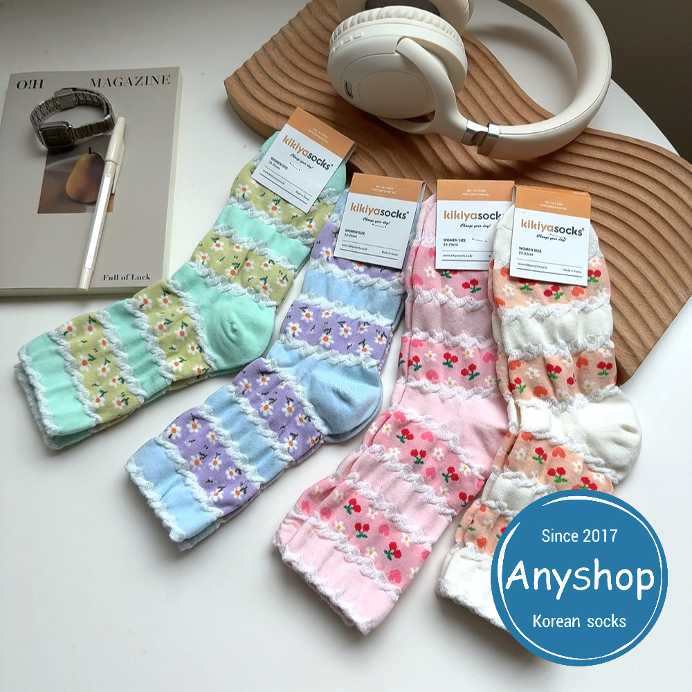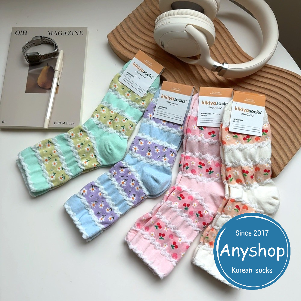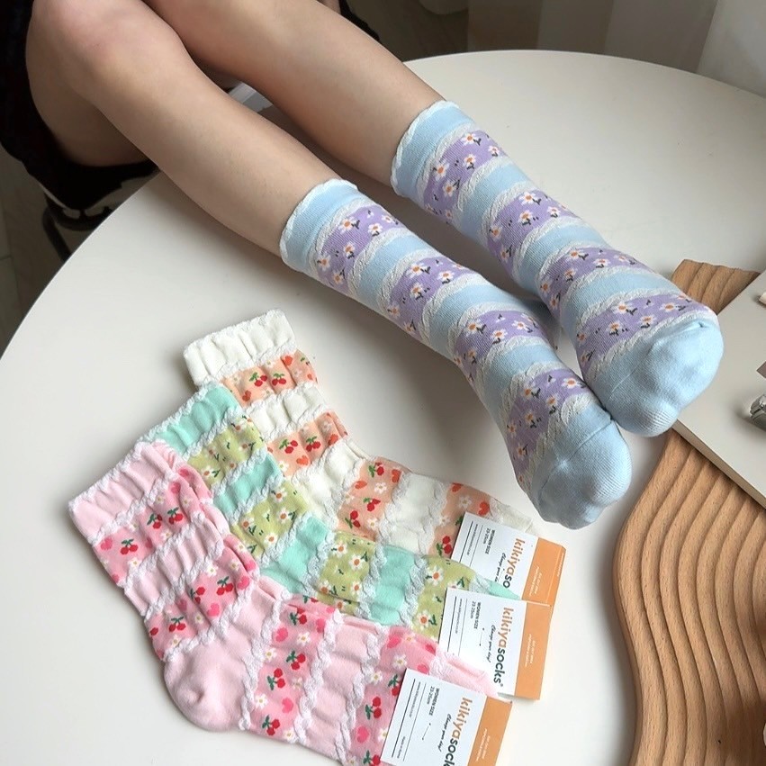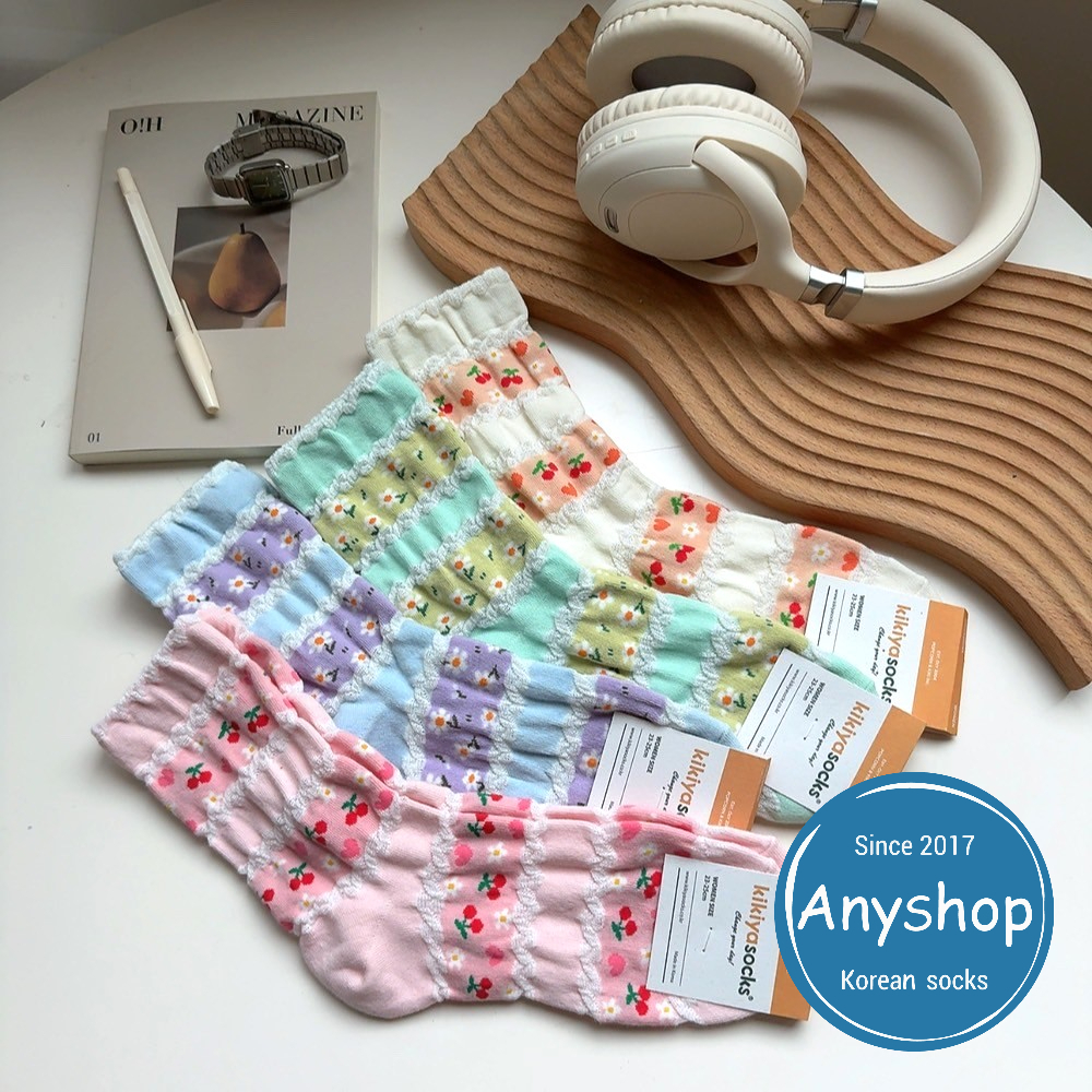 Anyshop韓國襪 素色拼色櫻桃小花中筒襪 浮雕花 植物襪 復古風 韓國襪 韓國襪子 長襪 女襪 16501綠色花花【16501】|米色櫻桃【16501】|藍色花花【16501】|粉色櫻桃【16501】SocksAnyshop韓國襪專賣 | 零售 | 團購 | 批發