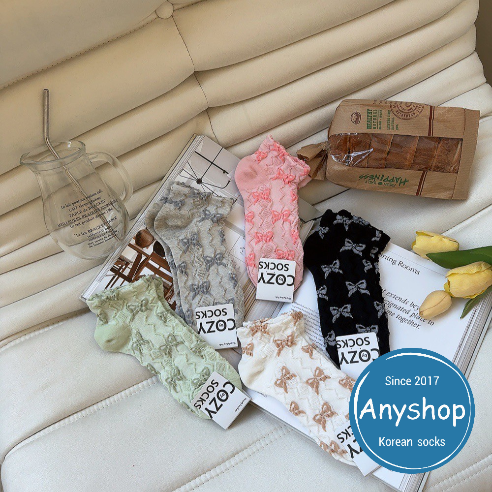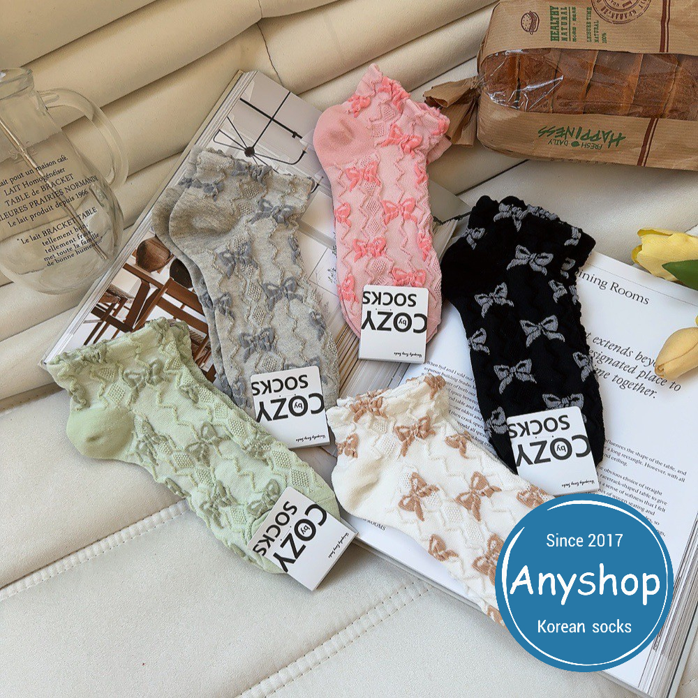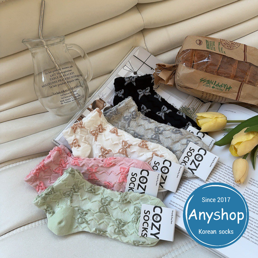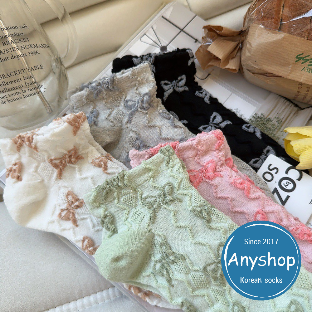 Anyshop韓國襪 浮雕蝴蝶結踝襪 韓國襪 踝襪 蝴蝶結 浮雕 女襪 09501白色【09501】|灰色【09501】|黑色【09501】|綠色【09501】|粉色【09501】SocksAnyshop韓國襪專賣 | 零售 | 團購 | 批發