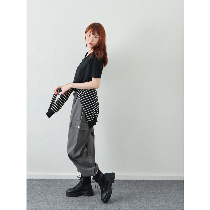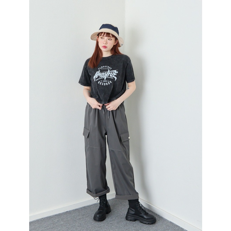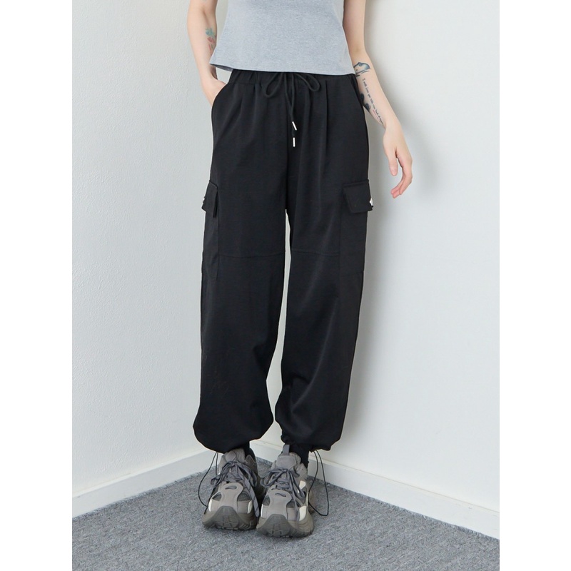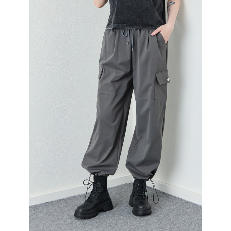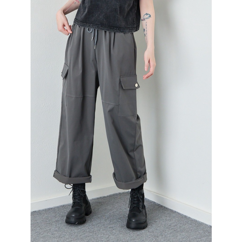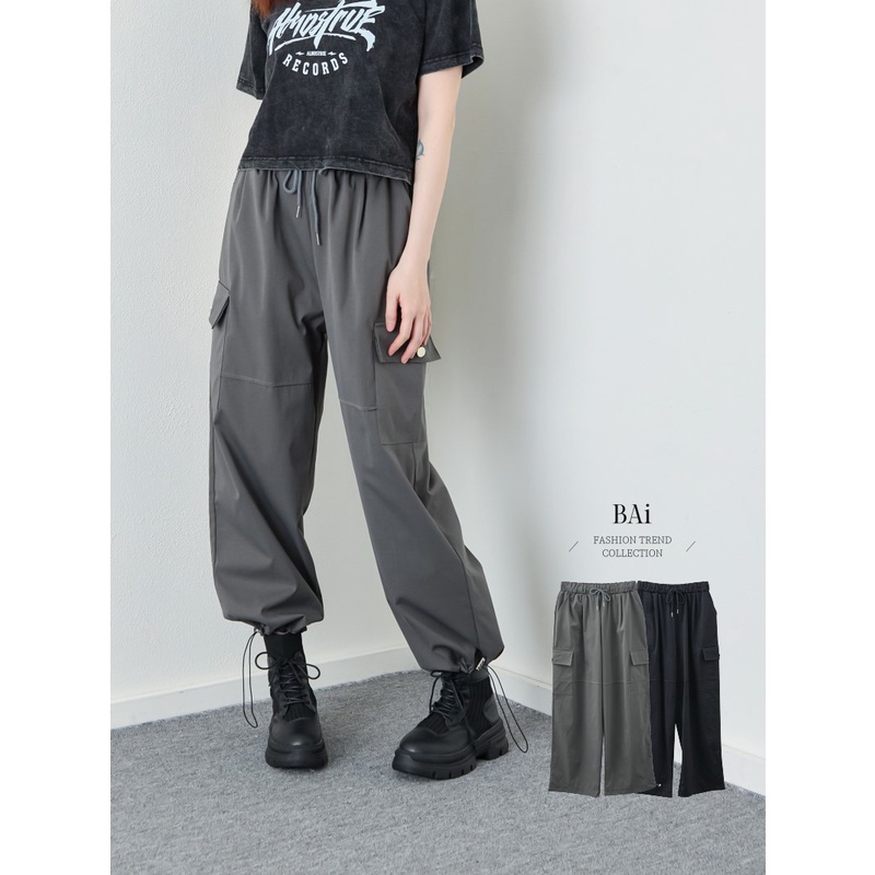 BAi白媽媽 抽繩工作褲/鬆緊腰工裝寬褲-台灣現貨 隔日到貨【350300】黑(02)|灰(10)PantsBAi白媽媽 品牌旗艦店