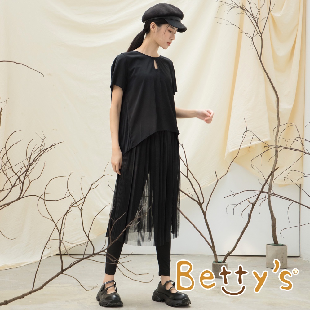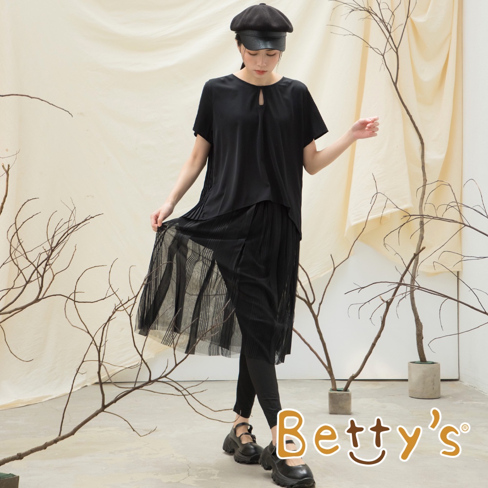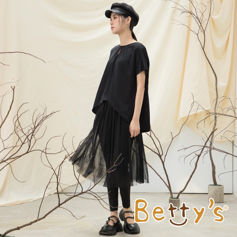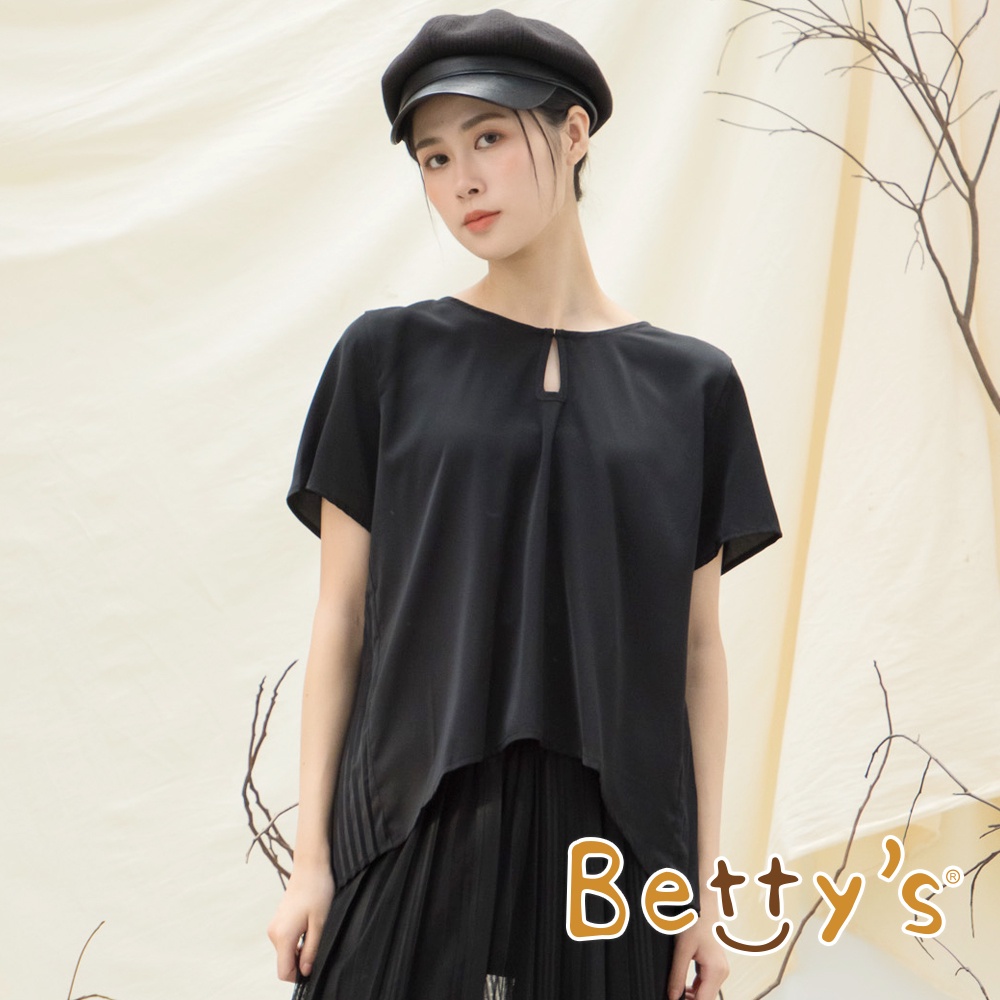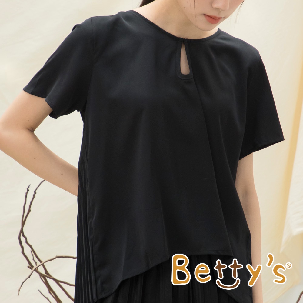 betty’s貝蒂思(15)前領扣後片百褶雪紡上衣(黑色)黑色,L|黑色,MT-shirtsbetty’s貝蒂思