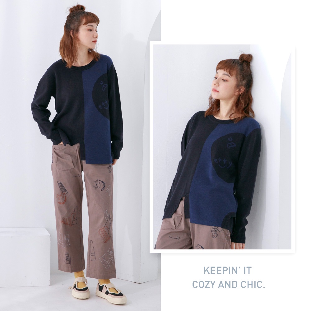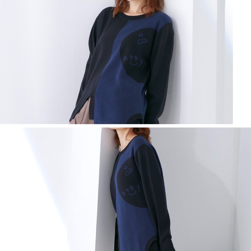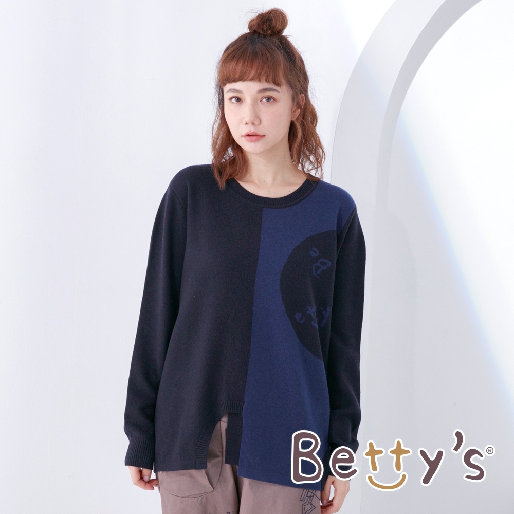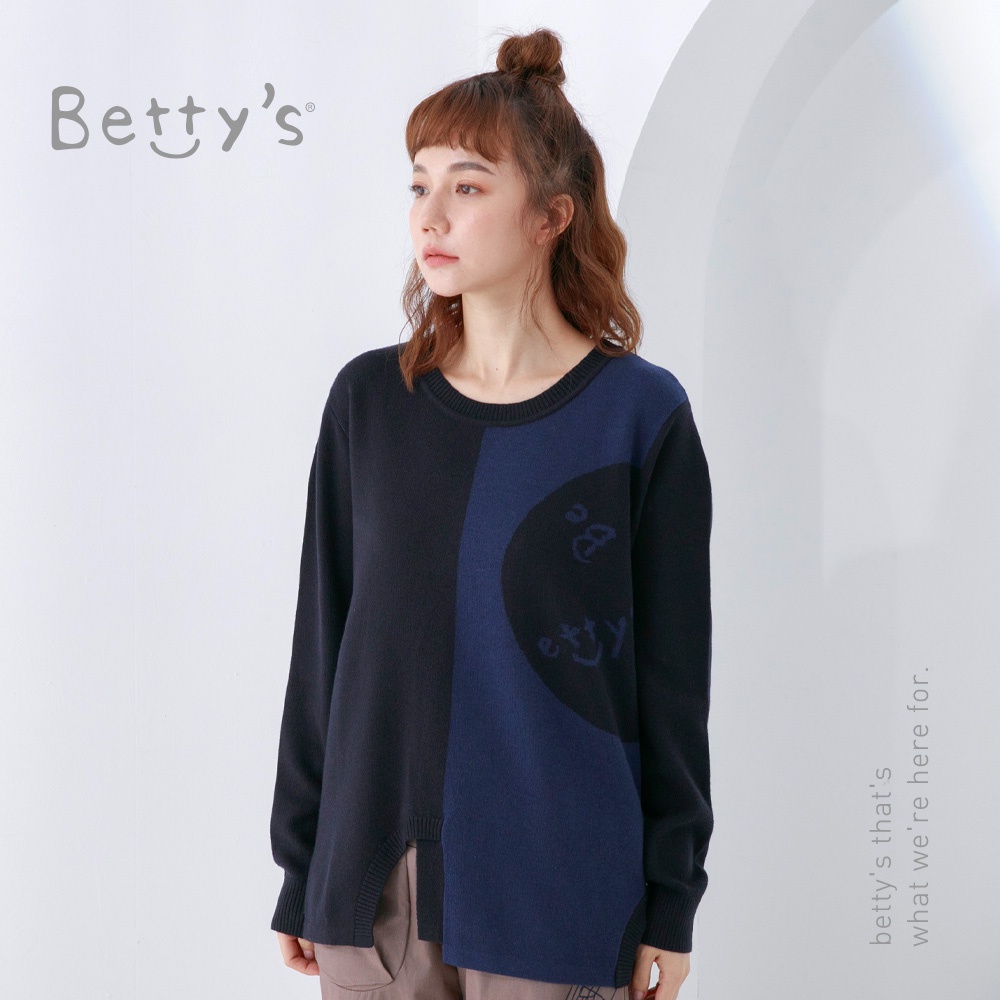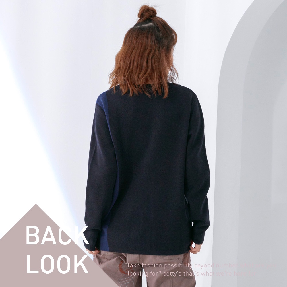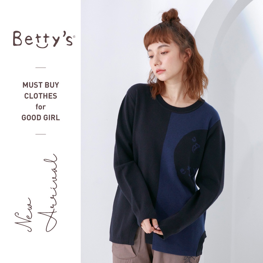 betty’s貝蒂思(05)圓領拼色質感毛衣(深藍)深藍,M|深藍,L|深藍,XLbetty’s貝蒂思