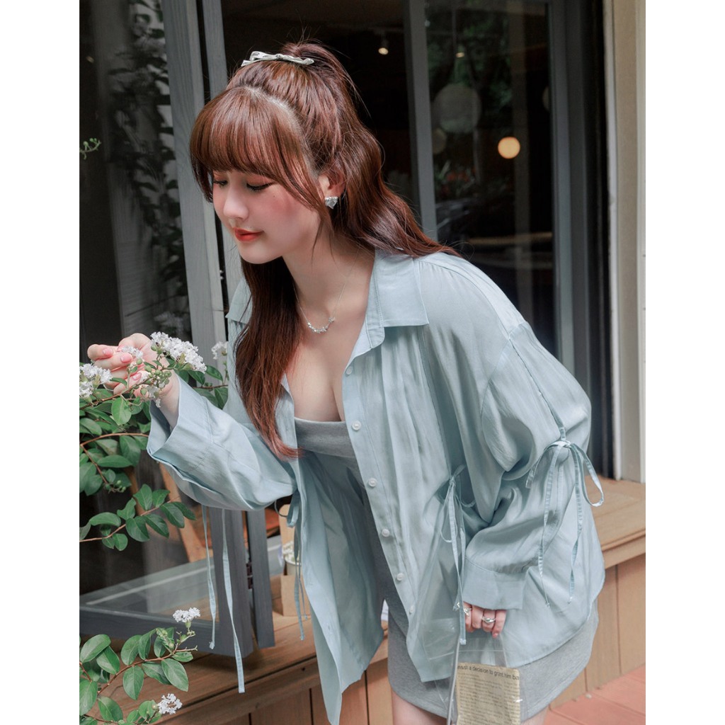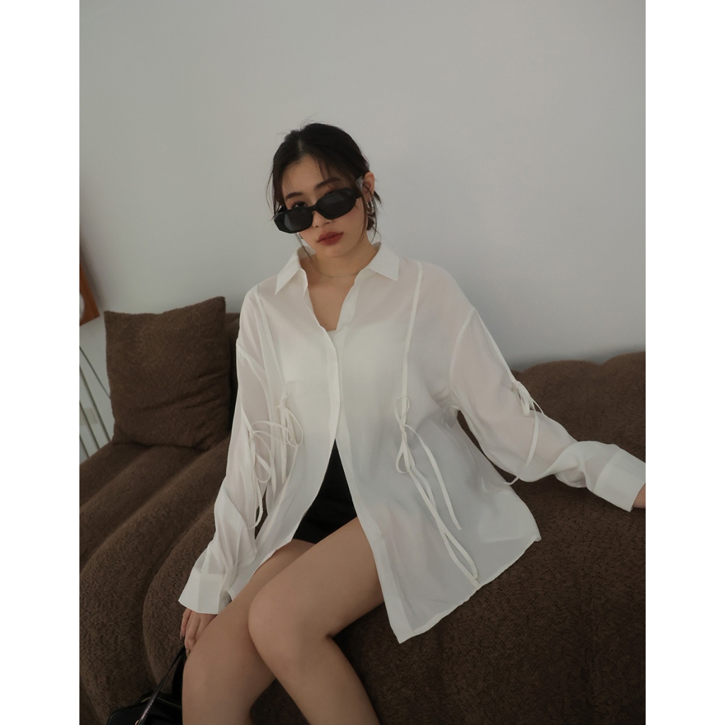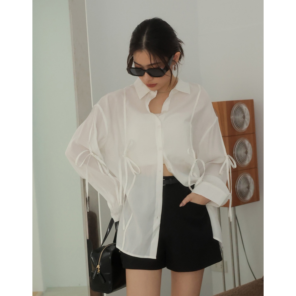 AIR SPACE PLUS 微透肌蝴蝶結綁帶襯衫(白/淺藍) 女裝 現貨 大尺碼 中大尺碼白,FF|淺藍,FFShirts & BlousesAIR SPACE