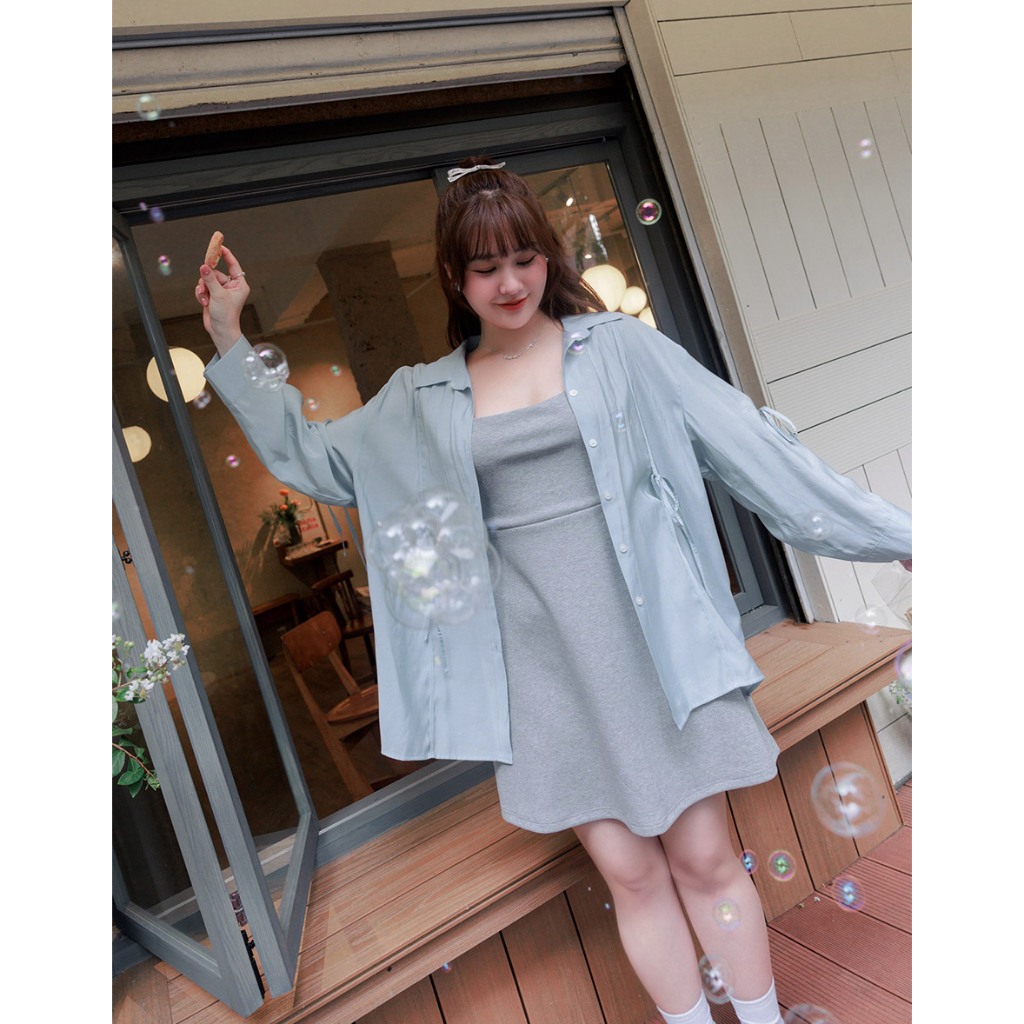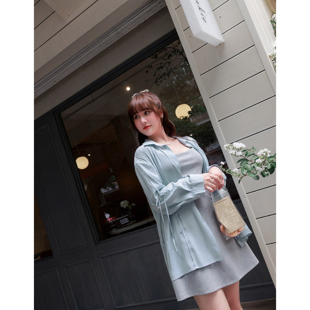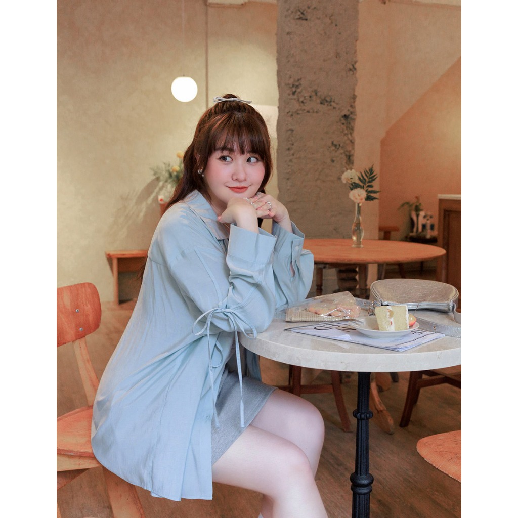 AIR SPACE PLUS 微透肌蝴蝶結綁帶襯衫(白/淺藍) 女裝 現貨 大尺碼 中大尺碼白,FF|淺藍,FFShirts & BlousesAIR SPACE