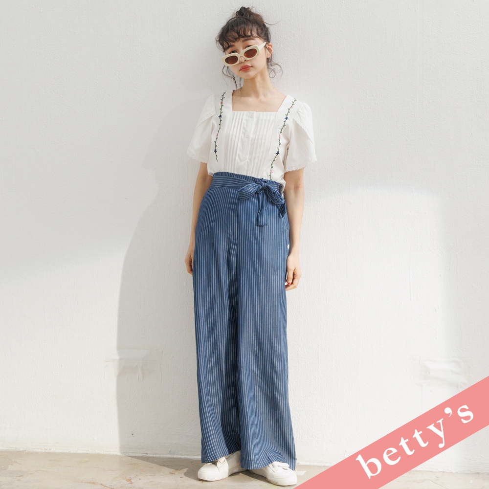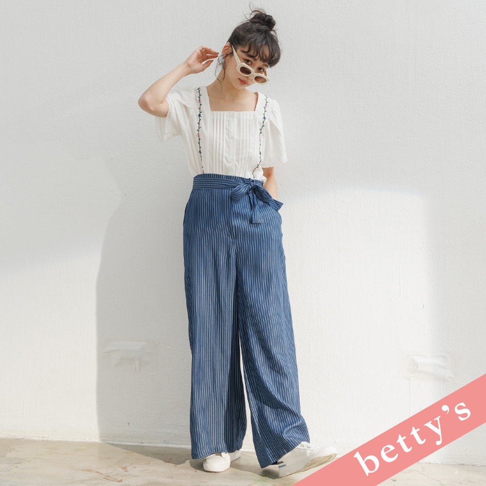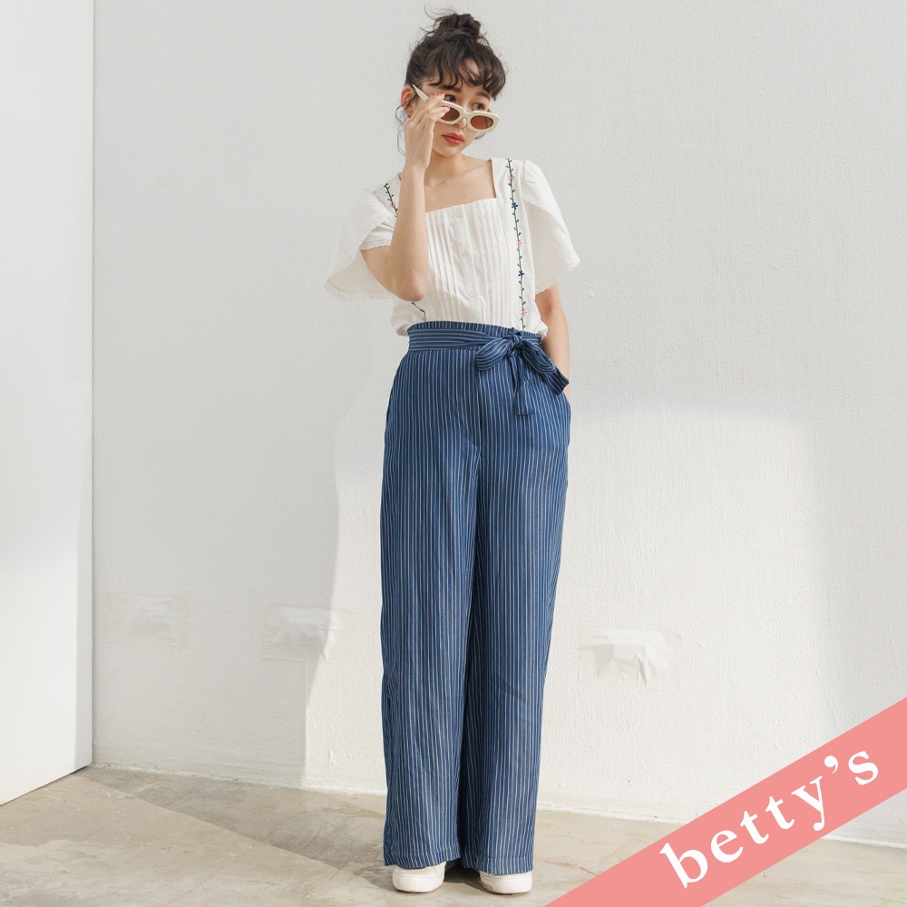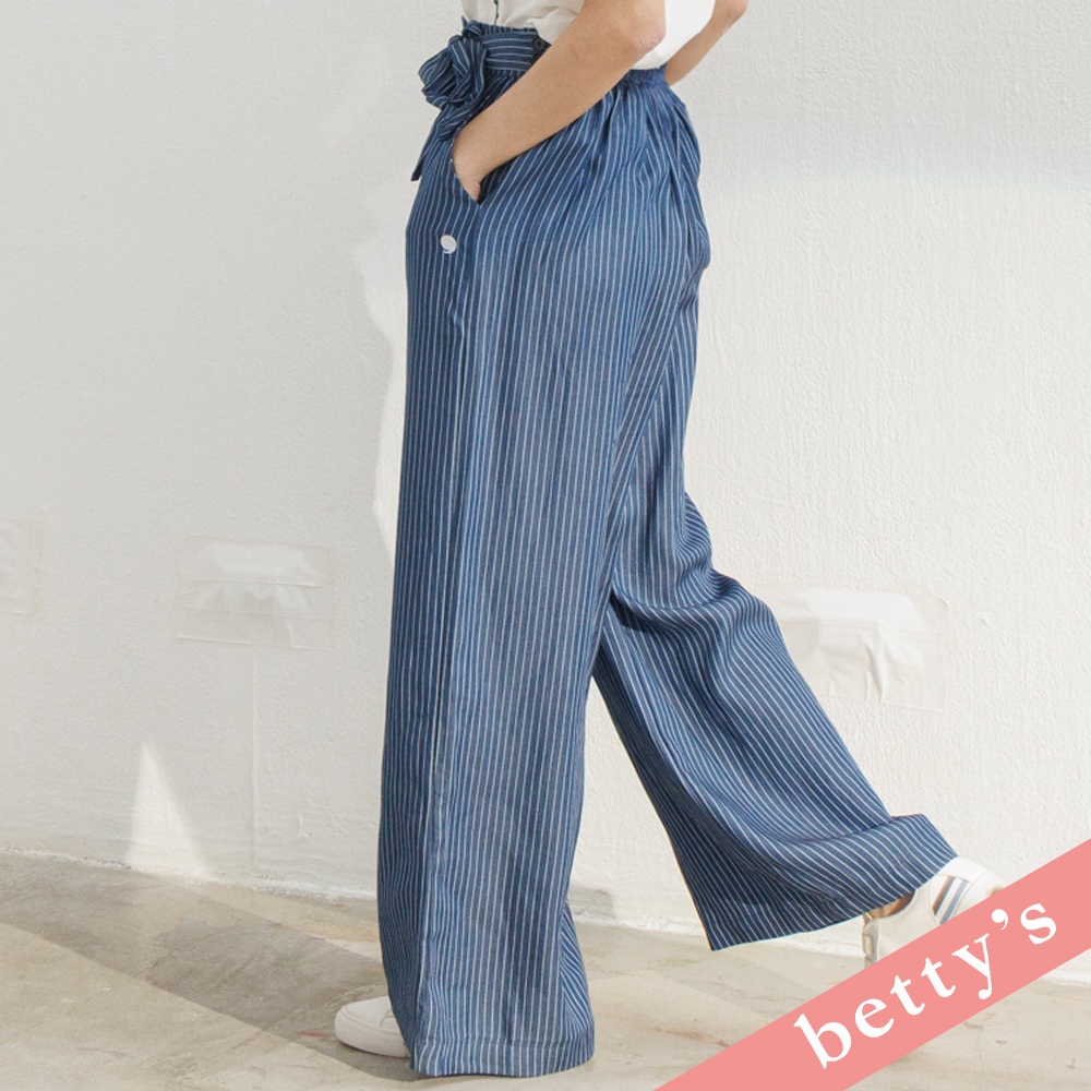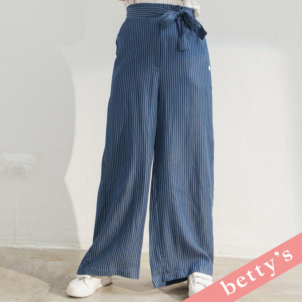 betty’s貝蒂思(31)腰鬆緊直條紋腰帶寬褲(藍色)藍色,M|藍色,LPantsbetty’s貝蒂思