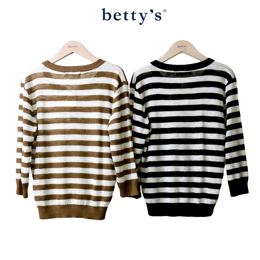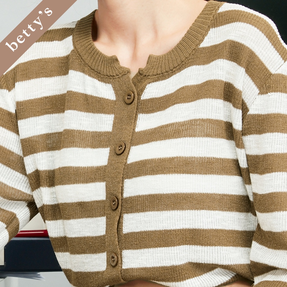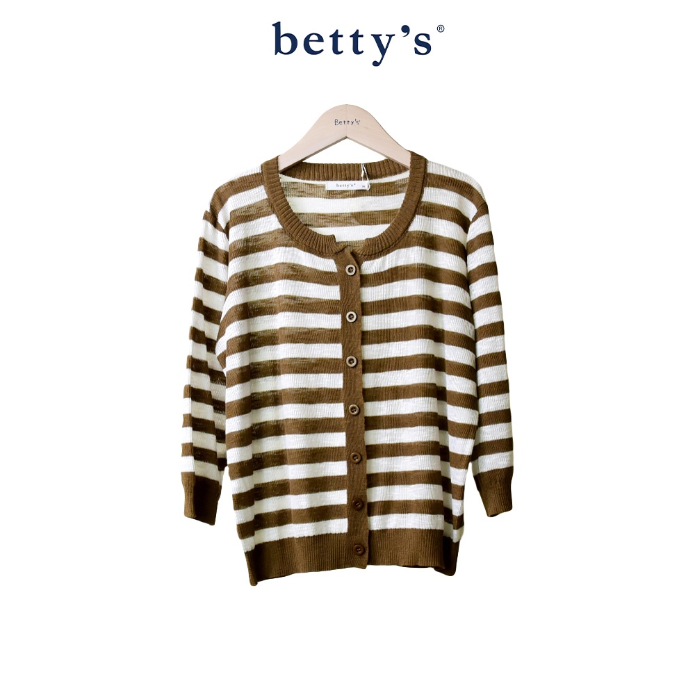betty’s貝蒂思(45)橫條紋針織開襟七分袖上衣(橄欖綠)橄欖綠,M|橄欖綠,Lbetty’s貝蒂思