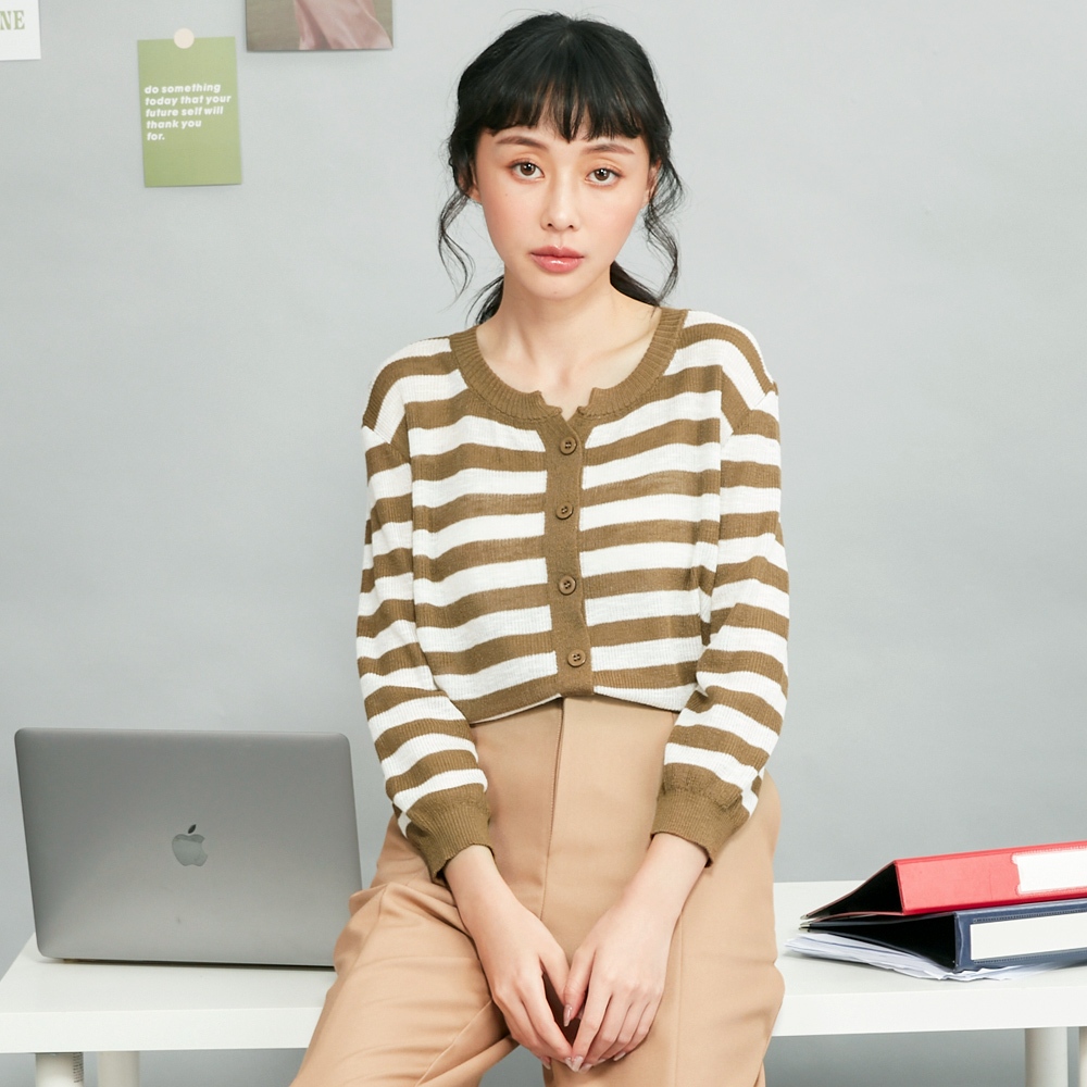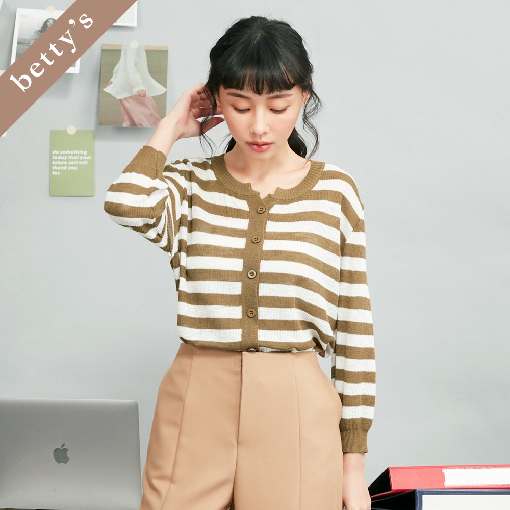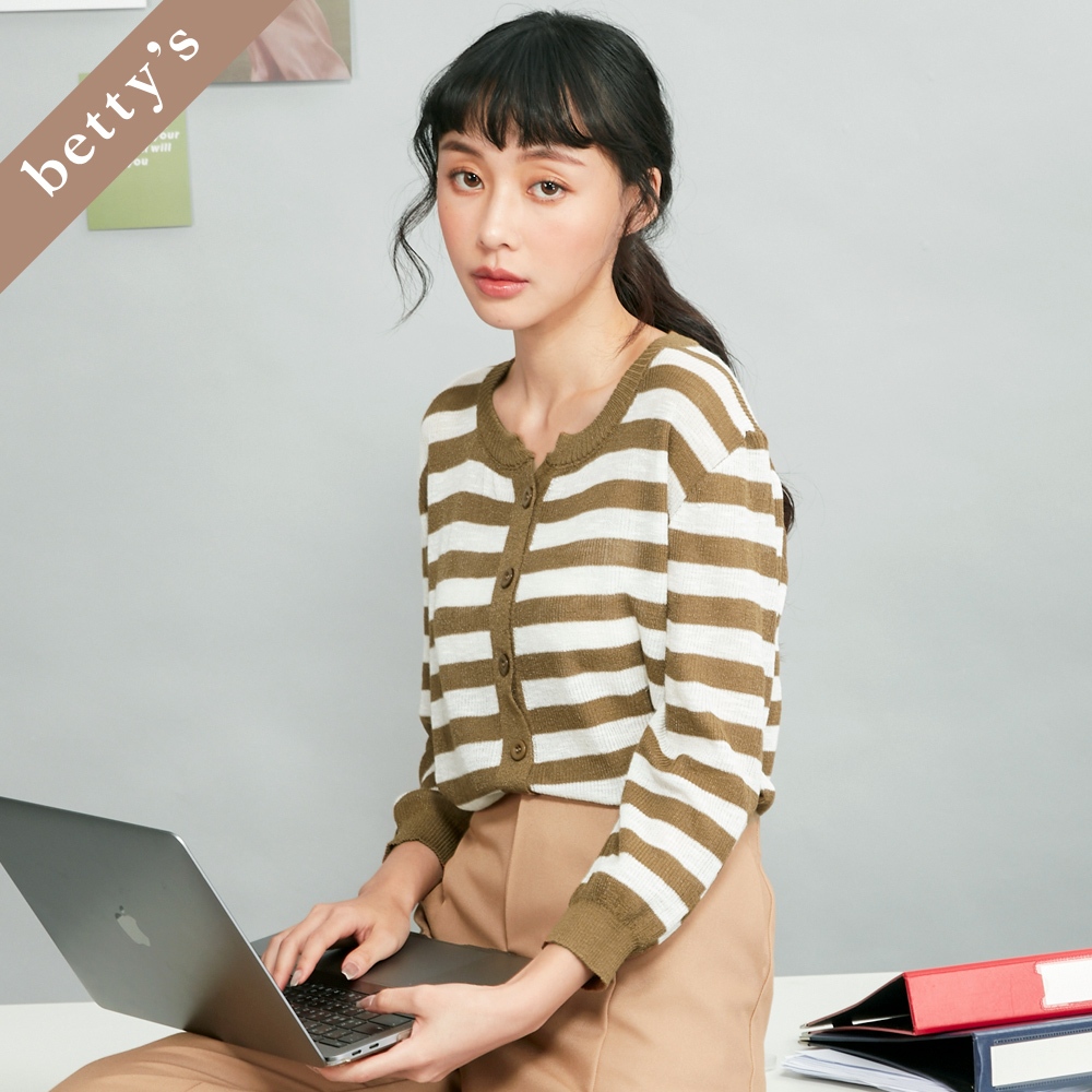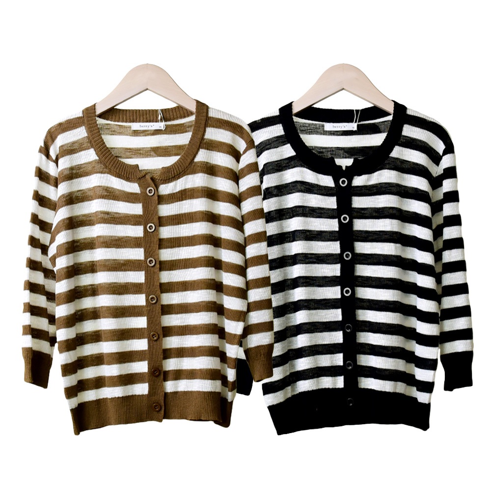 betty’s貝蒂思(45)橫條紋針織開襟七分袖上衣(橄欖綠)橄欖綠,M|橄欖綠,Lbetty’s貝蒂思