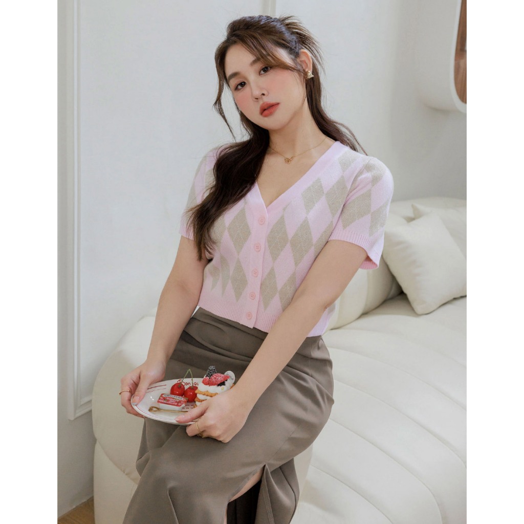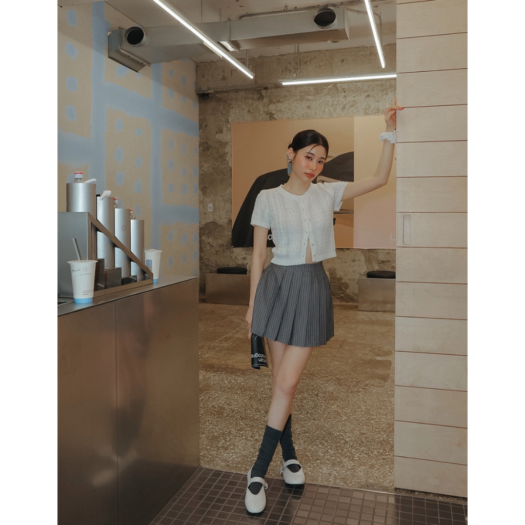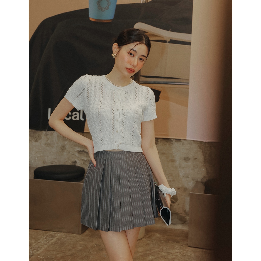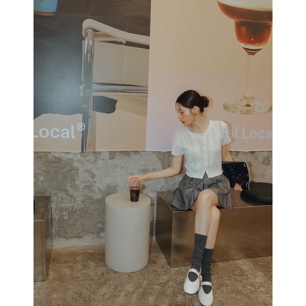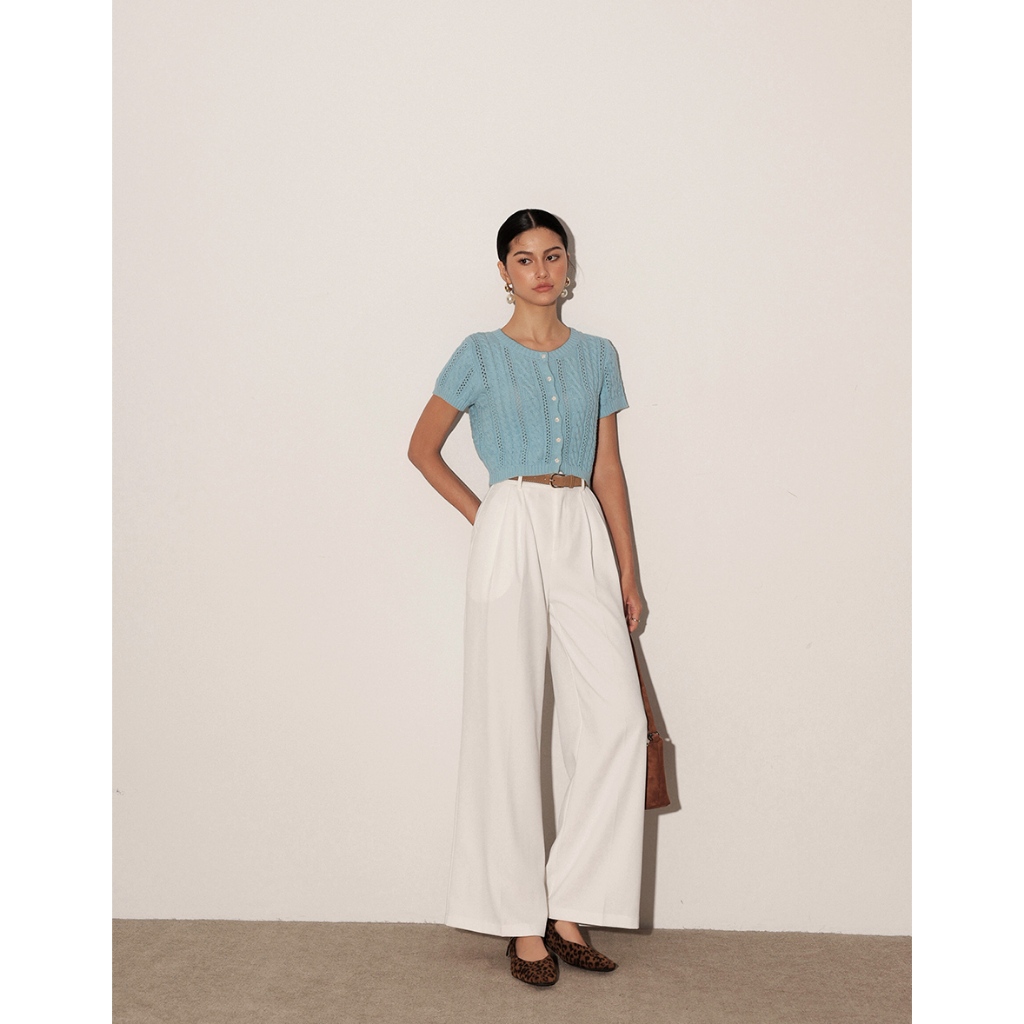 AIR SPACE LADY 小花貝扣麻花短袖針織開襟衫(白/淺藍) 女裝 現貨白,S|白,M|淺藍,S|淺藍,MAIR SPACE