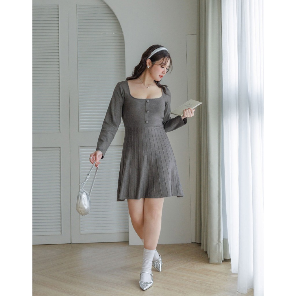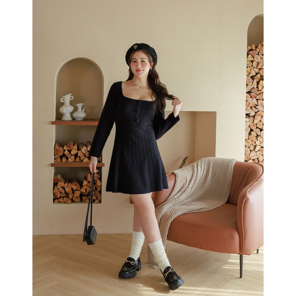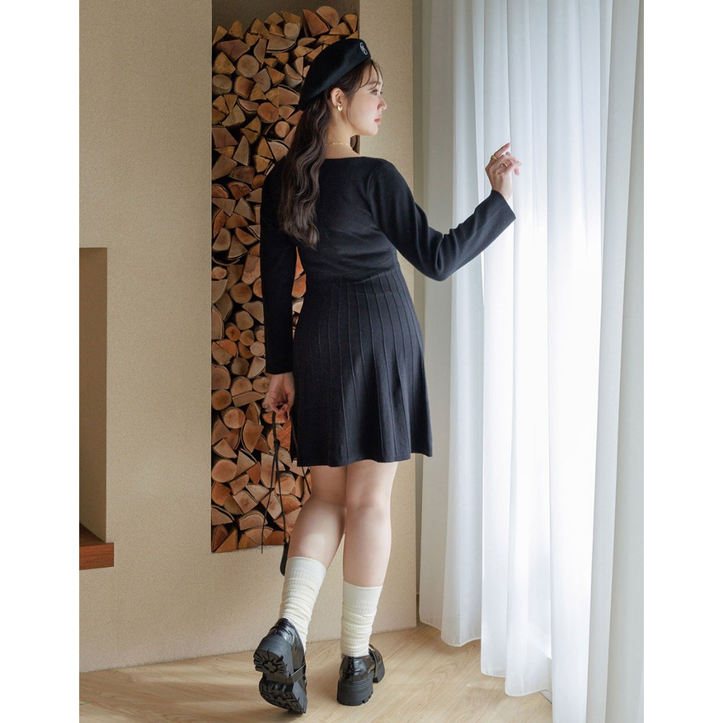 AIR SPACE PLUS 純色針織百褶短洋裝(黑/灰) 女裝 現貨 大尺碼 中大尺碼黑,XL|黑,2XL|灰,XL|灰,2XLAIR SPACE