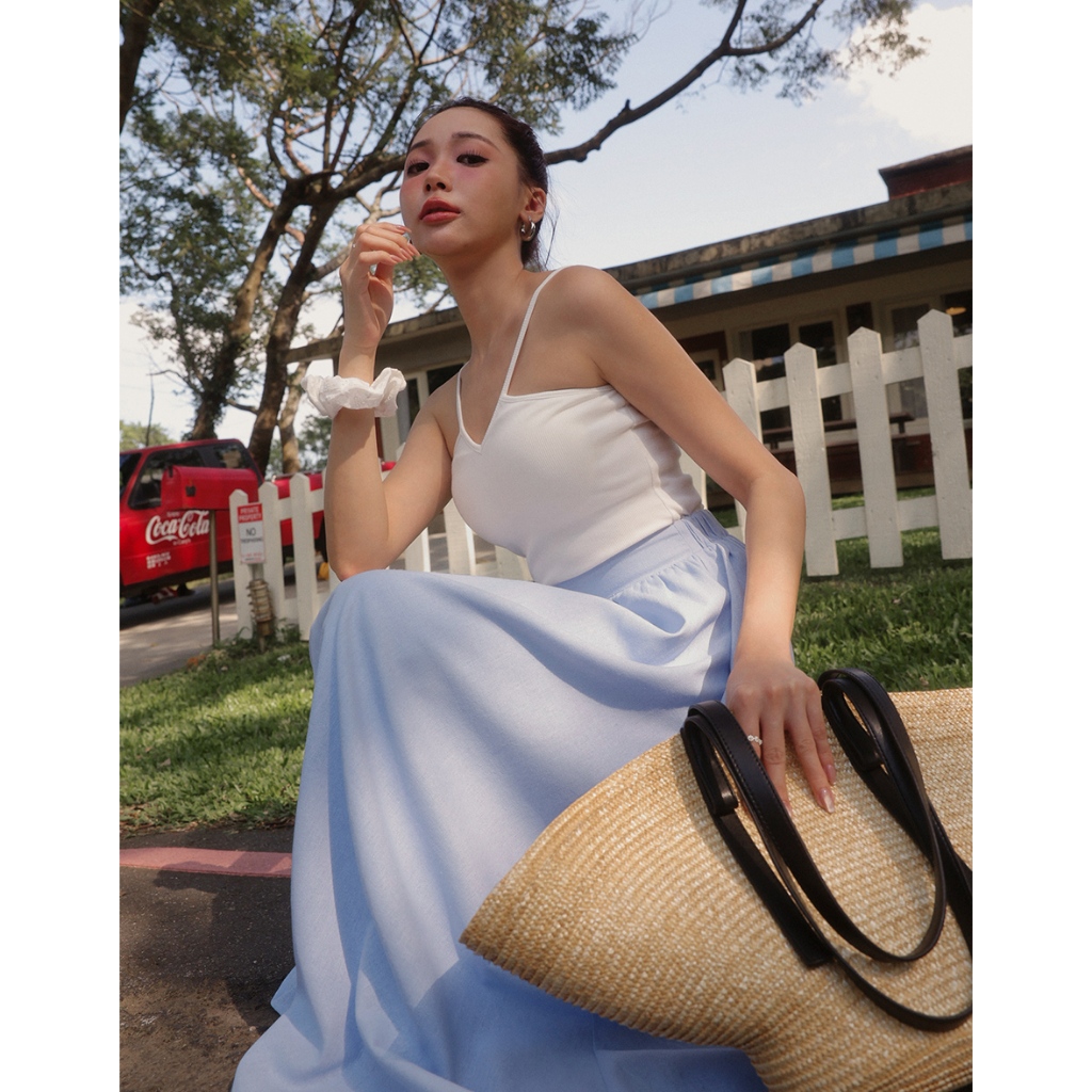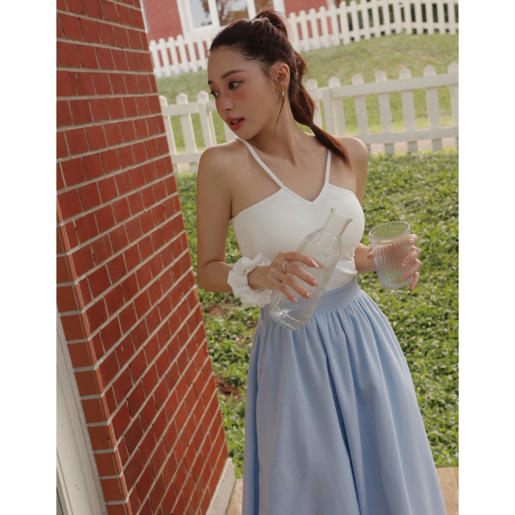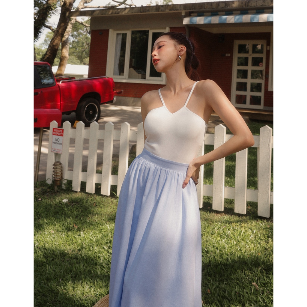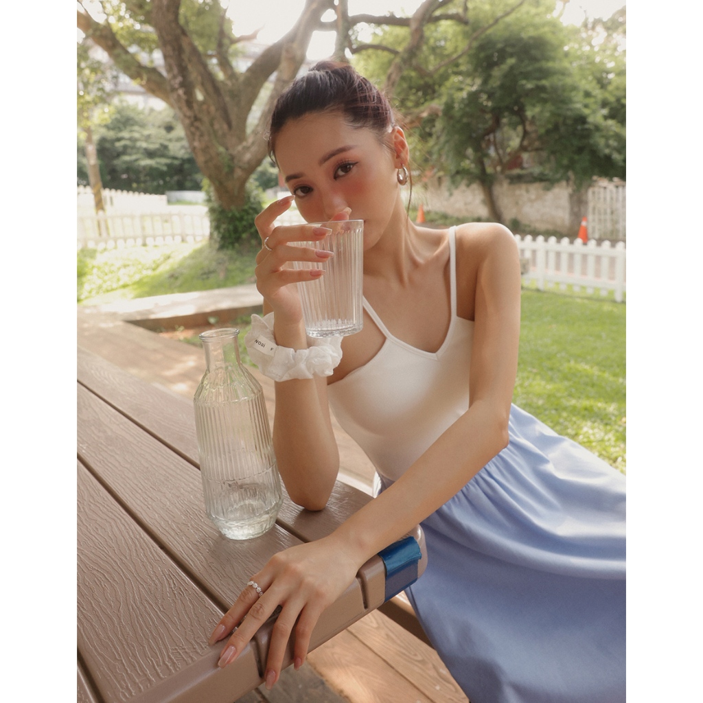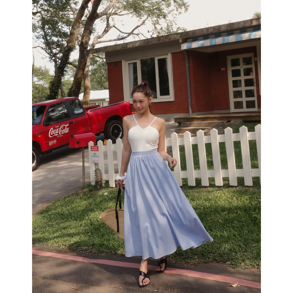 AIR SPACE LADY V領繞頸拼接背心長洋裝(附胸墊)(白/藍) 女裝 現貨白,S|白,M|白,L|藍,S|藍,M|藍,LAIR SPACE