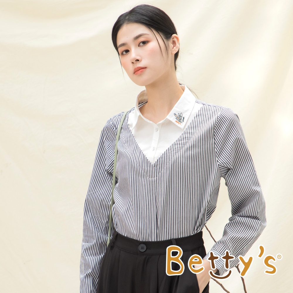 betty’s貝蒂思(15)細條紋繡花領假兩件上衣(黑色)黑色,M|黑色,LShirts & Blousesbetty’s貝蒂思