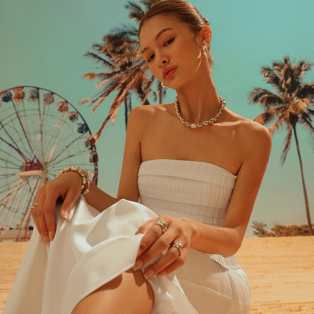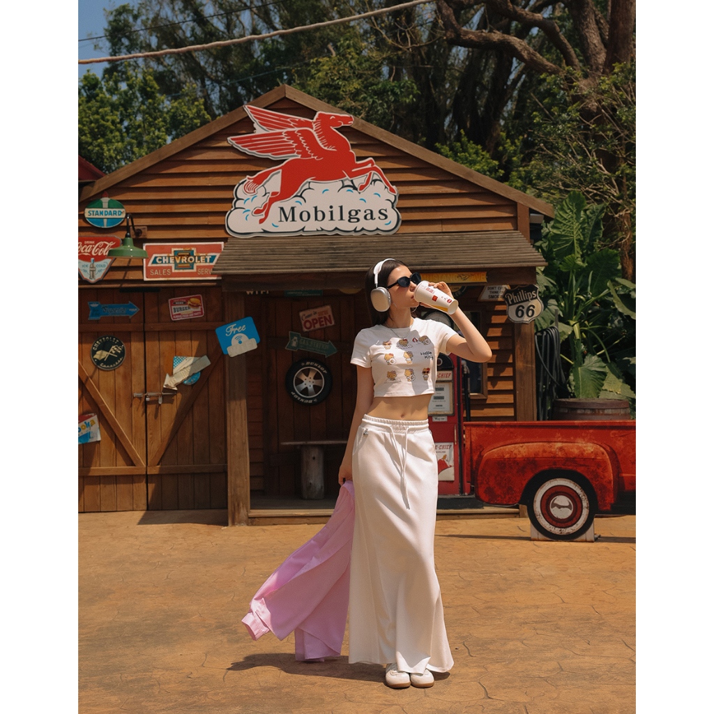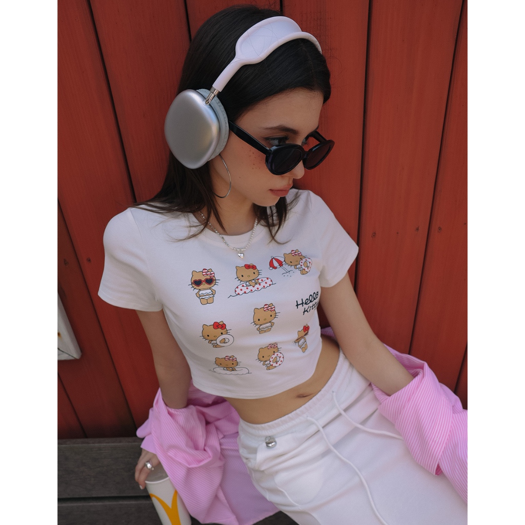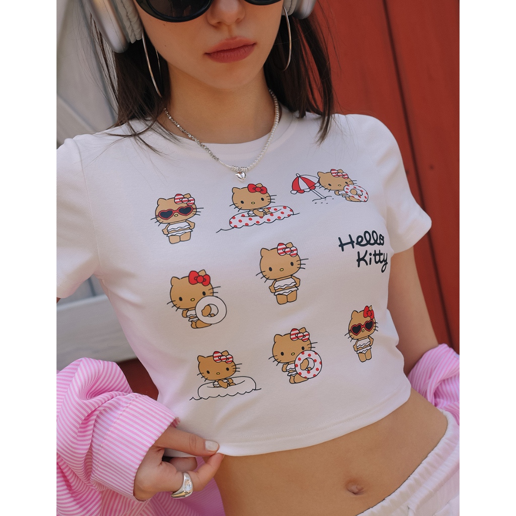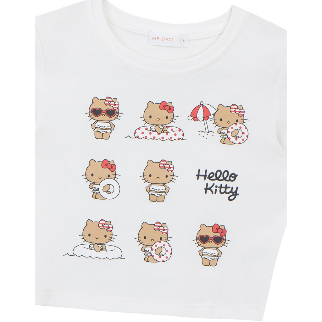 AIR SPACE PLUS 【Hello Kitty聯名】夏日海灘派對圖案合身短TEE(白) 女裝 現貨 大尺碼白,XL|白,2XL|白,3XLT-shirtsAIR SPACE