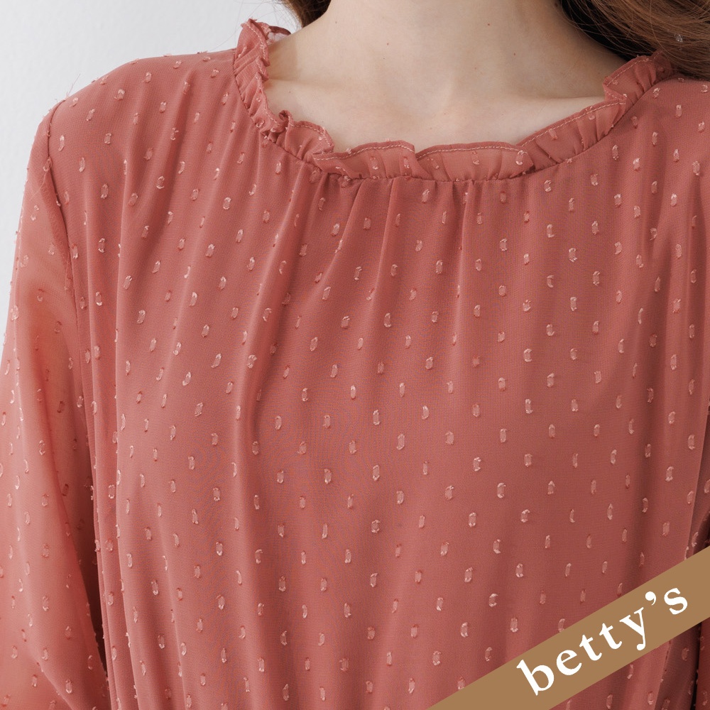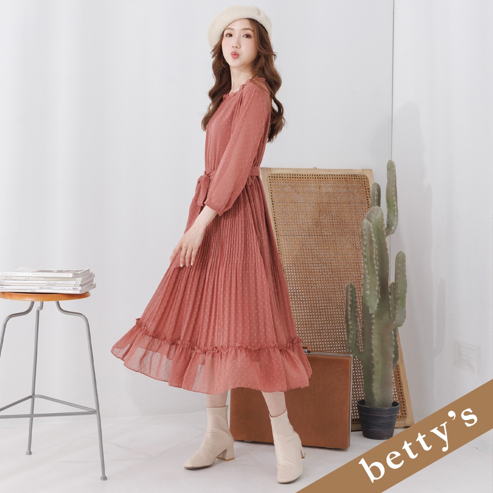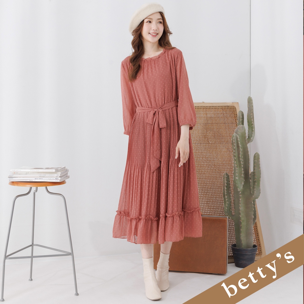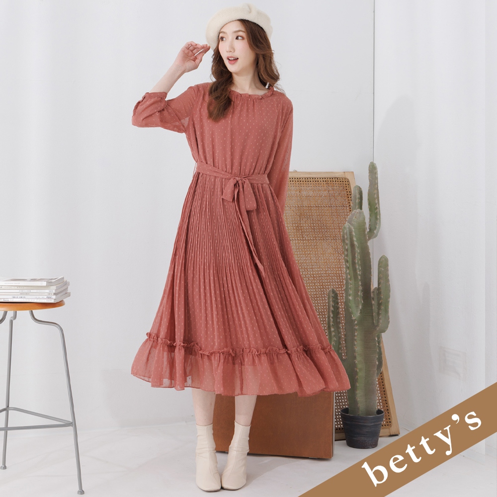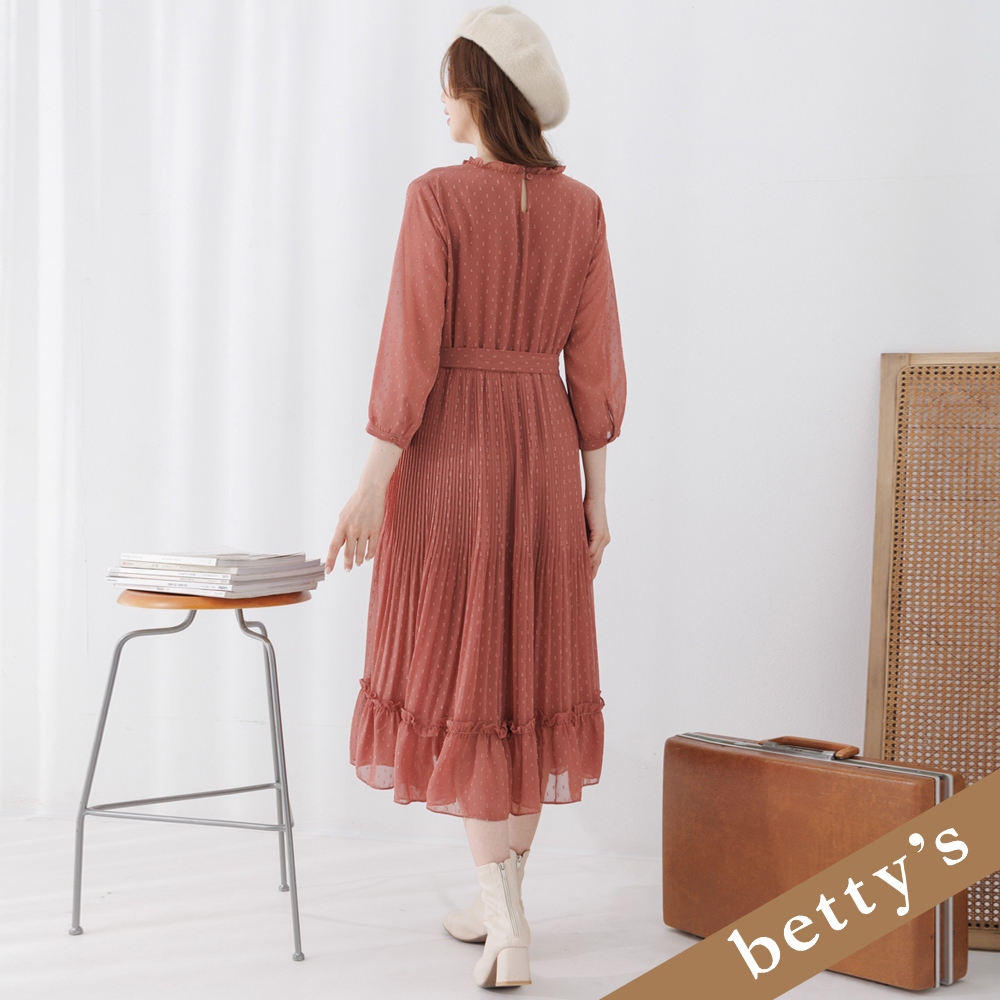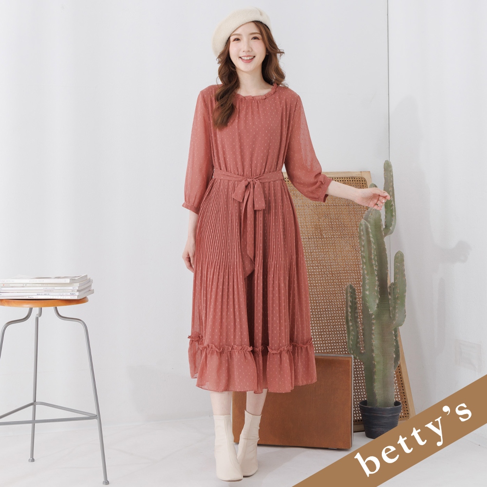 betty’s貝蒂思(25)雪紡點點荷葉小立領壓褶腰帶洋裝(珊瑚粉)珊瑚粉,M|珊瑚粉,Lbetty’s貝蒂思