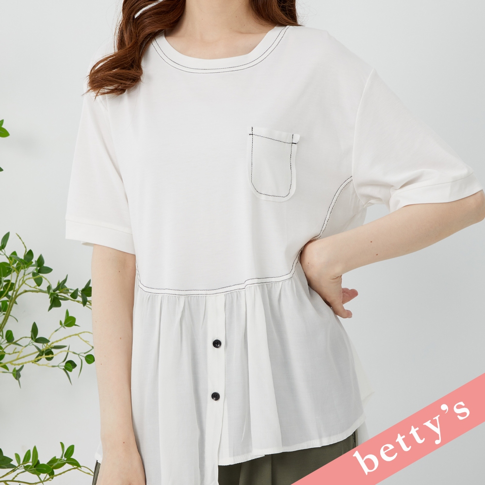 betty’s貝蒂思(31)壓線拼接透膚涼感T-shirt(共二色)