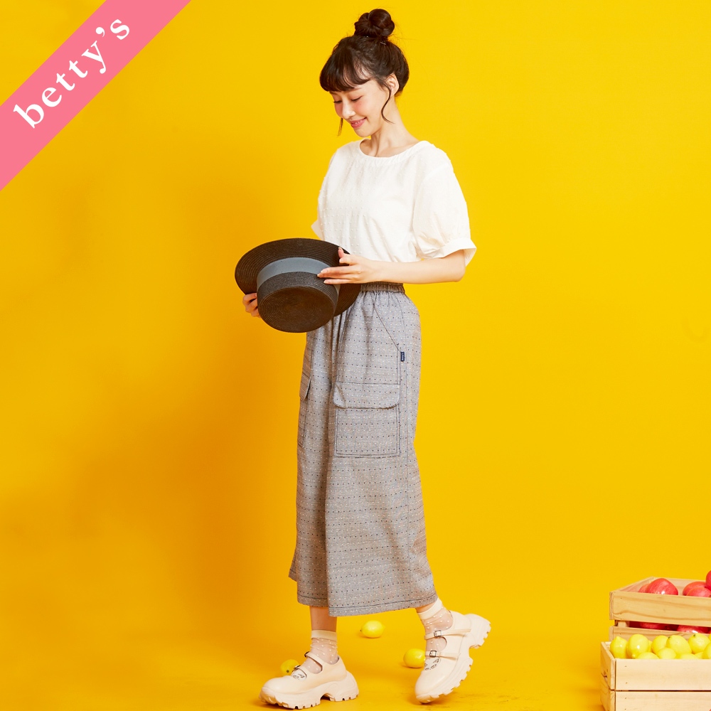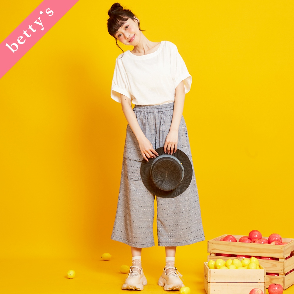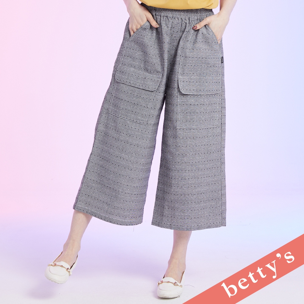 betty’s貝蒂思(41)剪花面料大口袋寬褲(共二色)黑色,M|黑色,L|深藍,M|深藍,LPantsbetty’s貝蒂思
