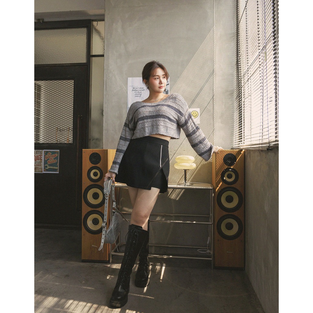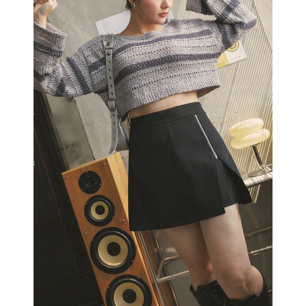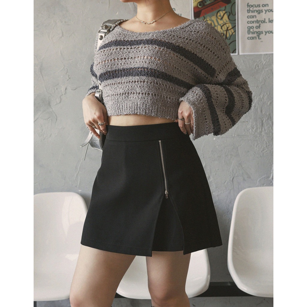 AIR SPACE PLUS 個性拉鍊開衩褲裙(黑/杏) 女裝 現貨 大尺碼 中大尺碼黑,XL|黑,2XL|黑,3XL|杏,XL|杏,2XL|杏,3XLSkortsAIR SPACE