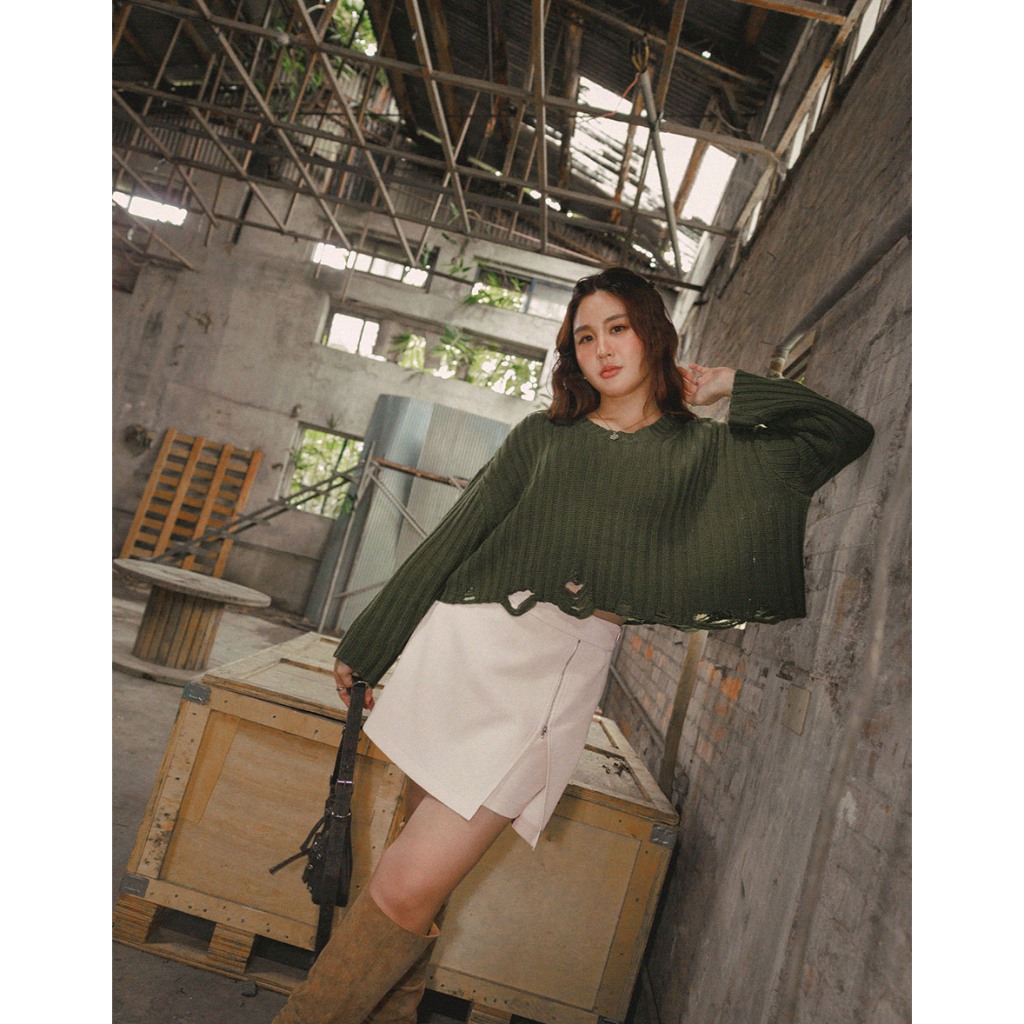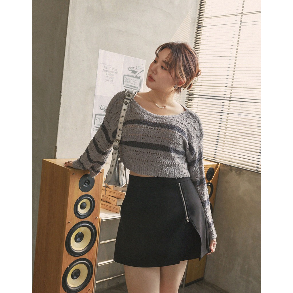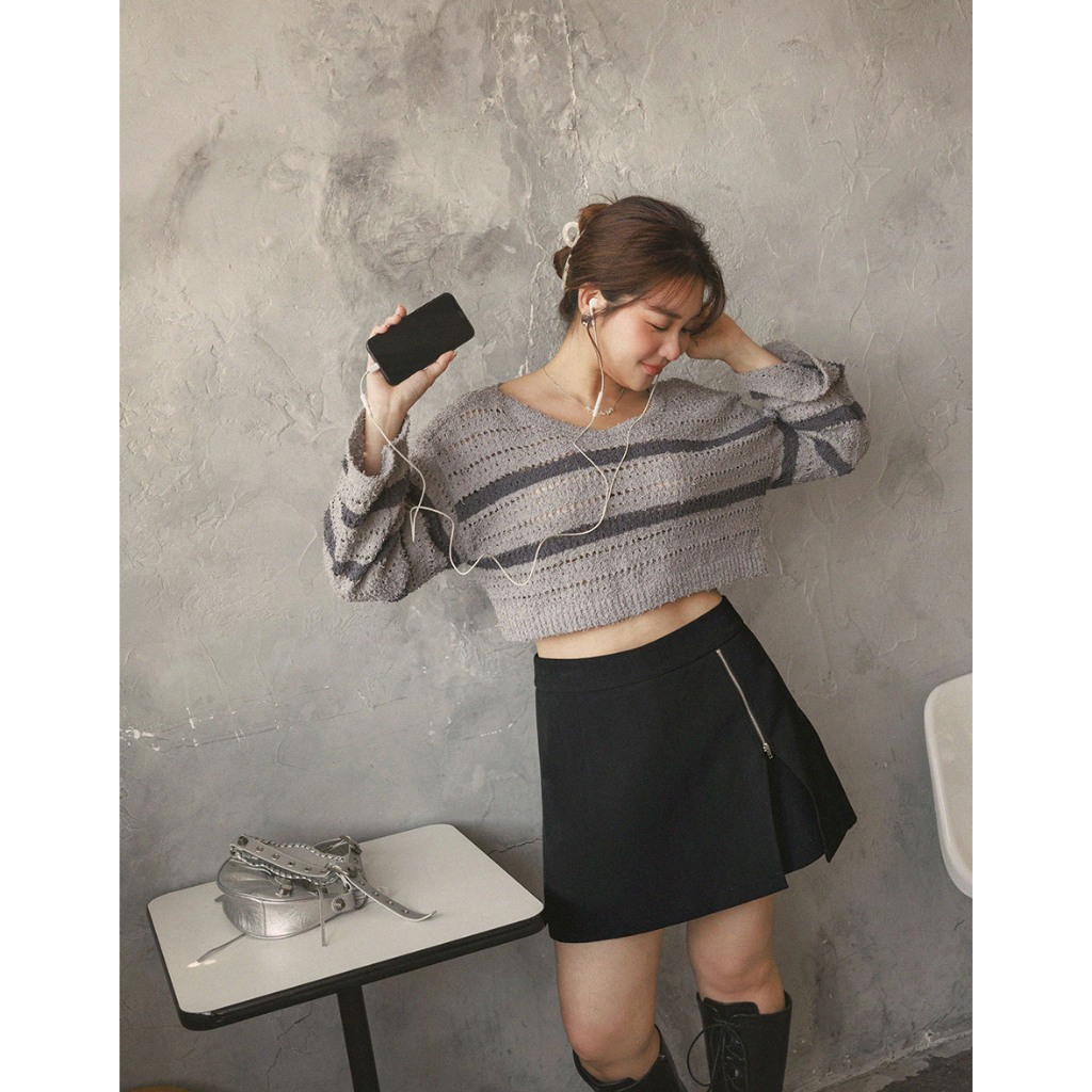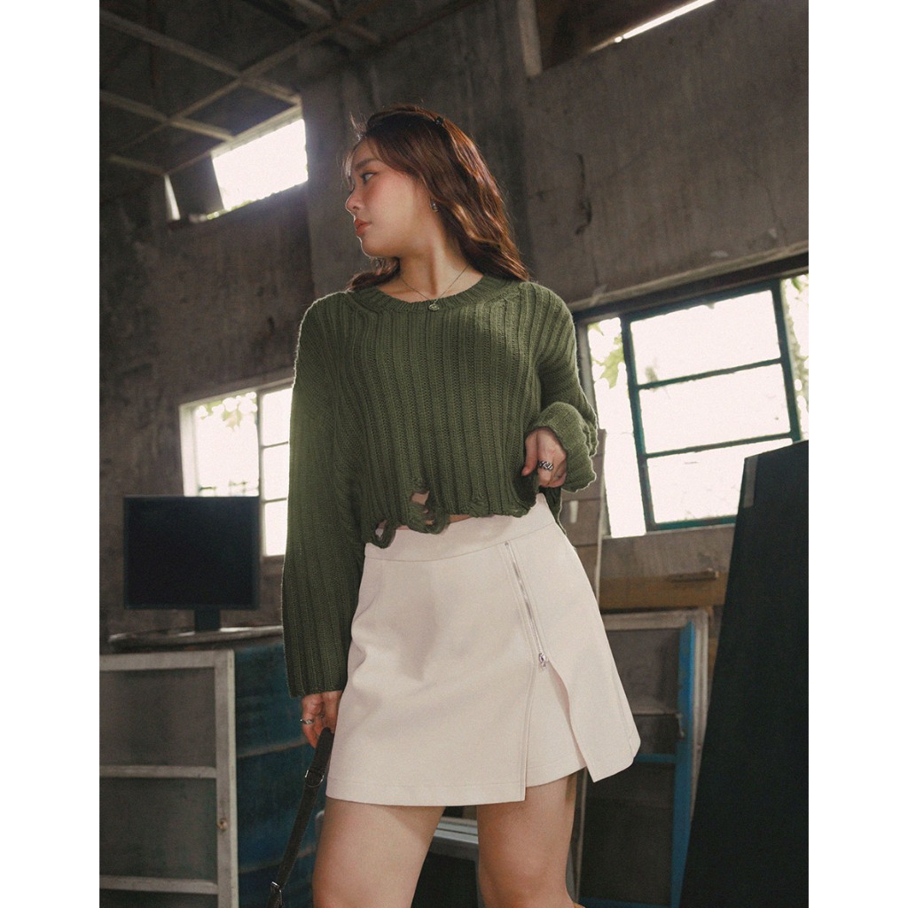 AIR SPACE PLUS 個性拉鍊開衩褲裙(黑/杏) 女裝 現貨 大尺碼 中大尺碼黑,XL|黑,2XL|黑,3XL|杏,XL|杏,2XL|杏,3XLSkortsAIR SPACE