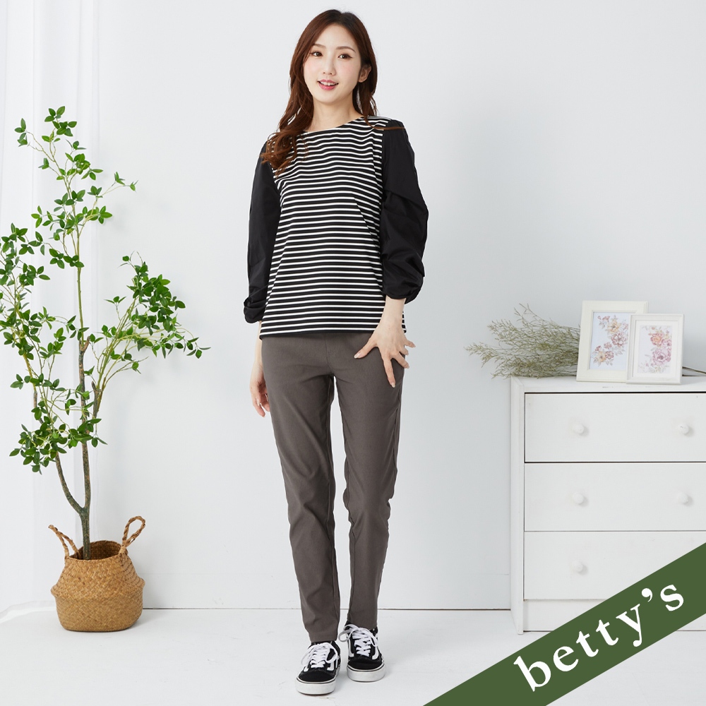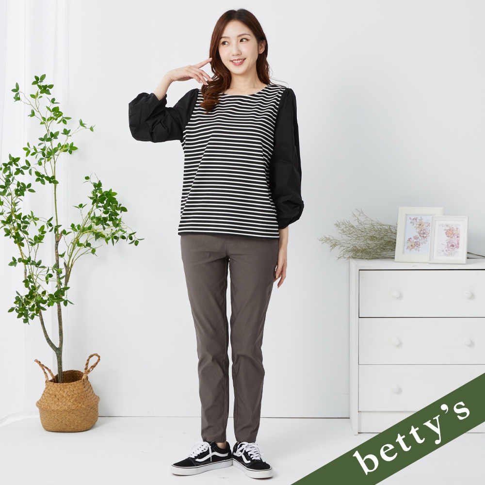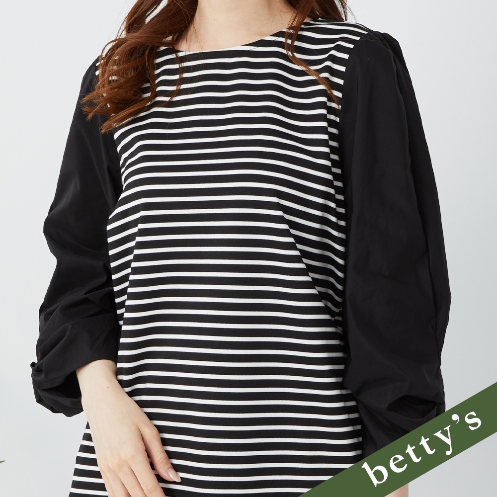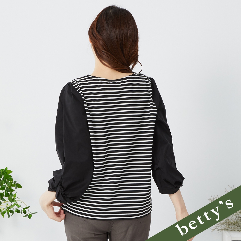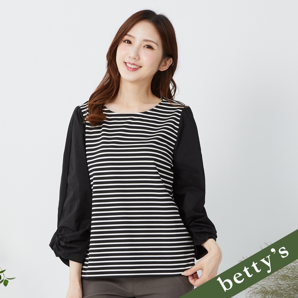betty’s貝蒂思(35)橫條紋拼接圓領長袖T-shirt(黑色)黑色,M|黑色,L|黑色,XLT-shirtsbetty’s貝蒂思