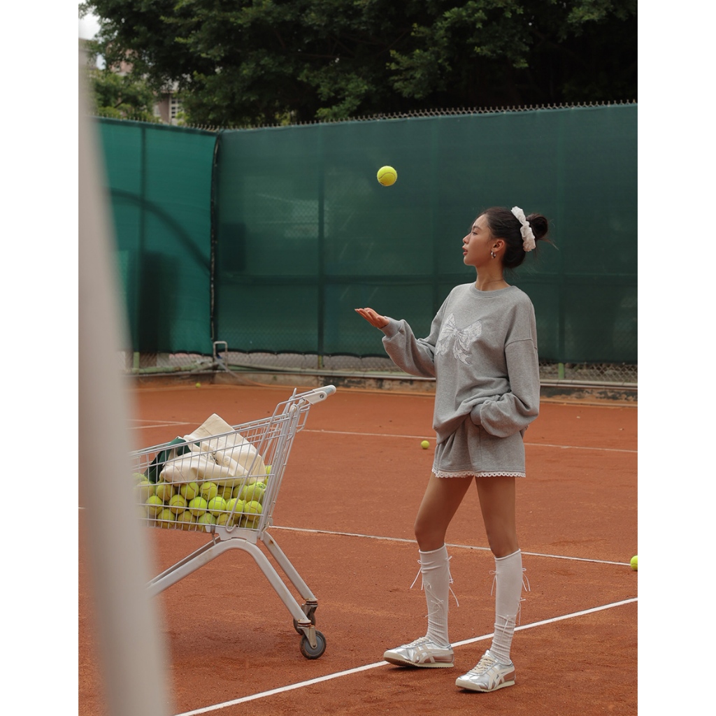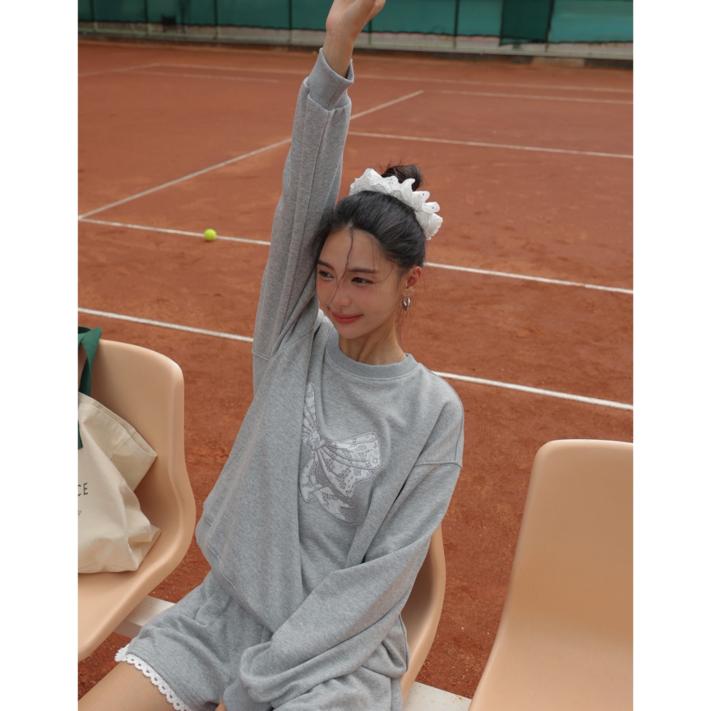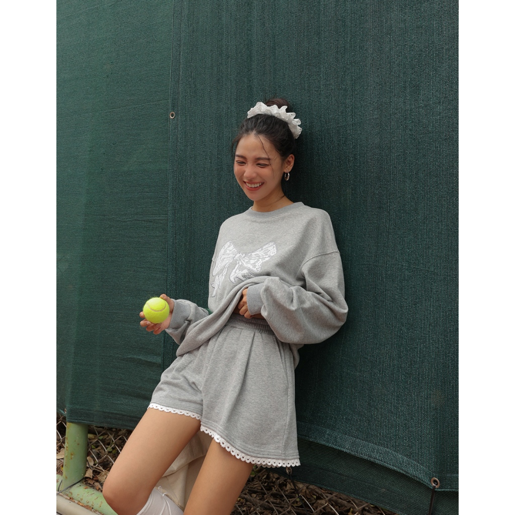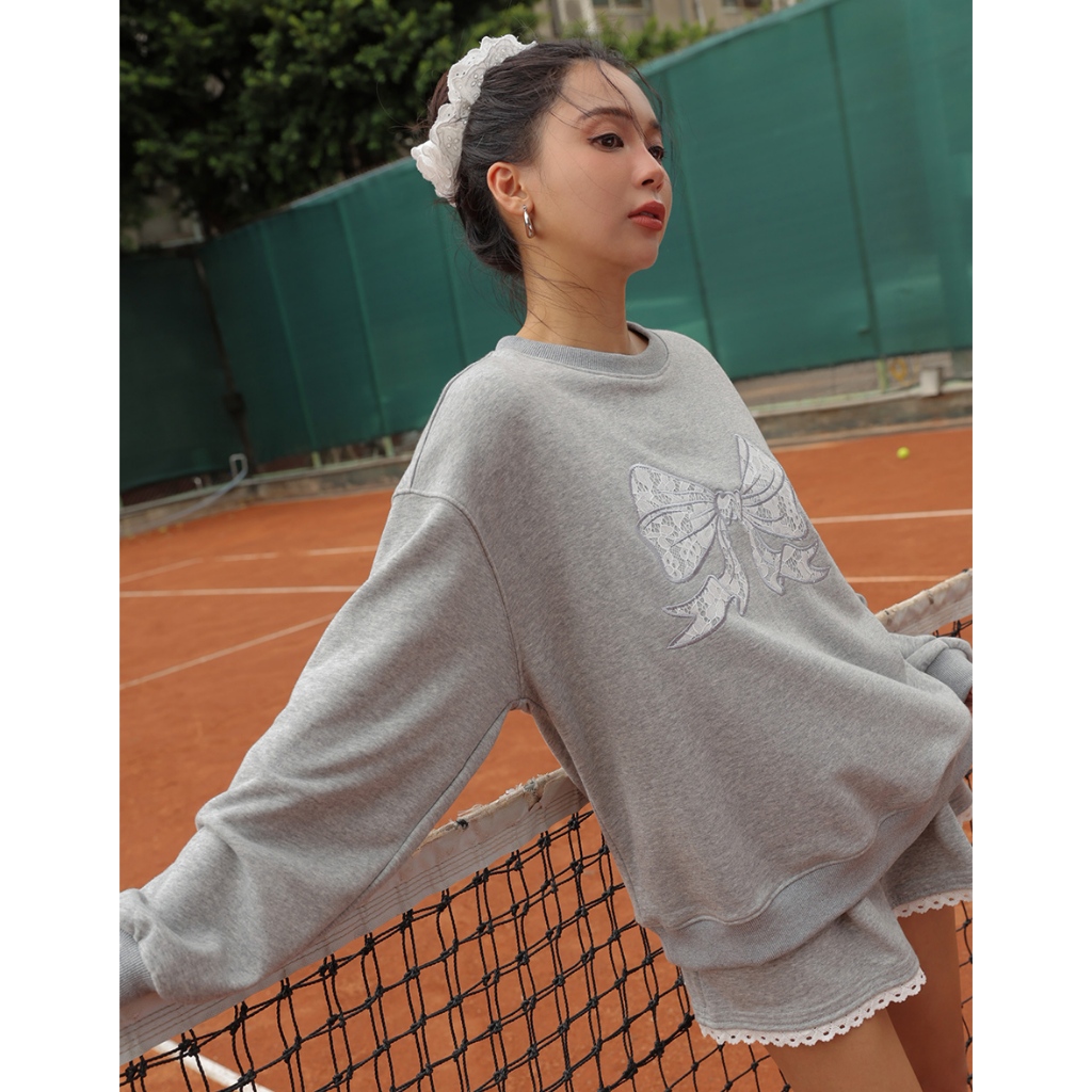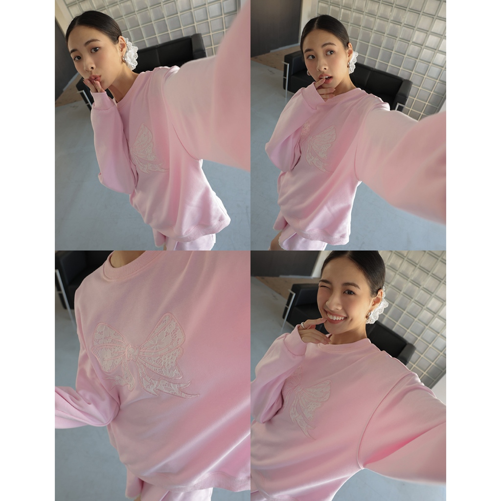 AIR SPACE LADY 蕾絲蝴蝶結棉質上衣(灰/粉紅) 女裝 現貨灰,S|灰,M|灰,L|粉紅,S|粉紅,M|粉紅,LT-shirtsAIR SPACE