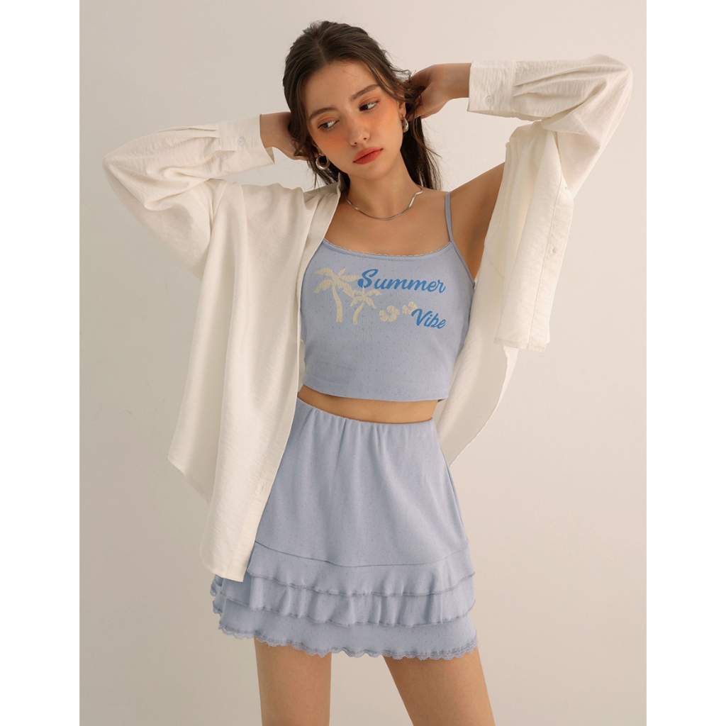 AIR SPACE 甜美荷葉蕾絲短裙(白/藍) 女裝 現貨白,S|白,M|白,L|藍,S|藍,M|藍,LAIR SPACE