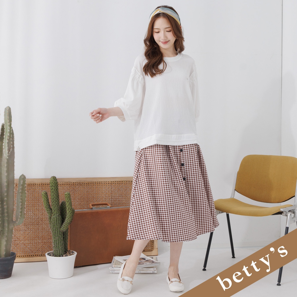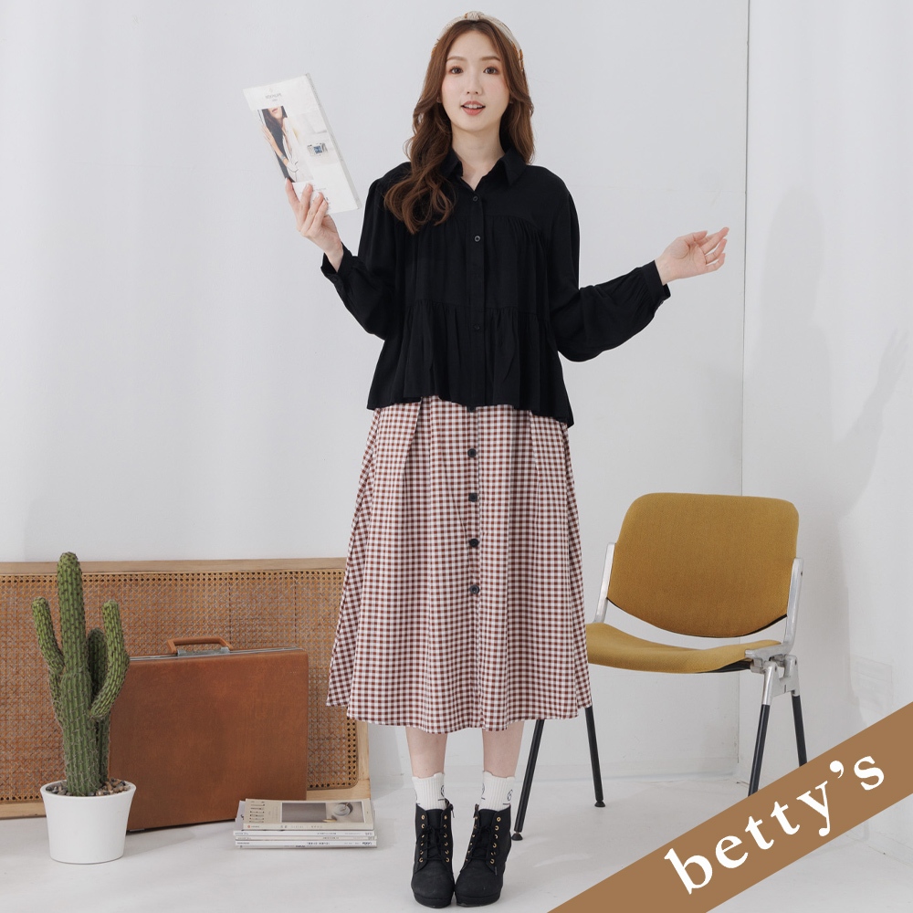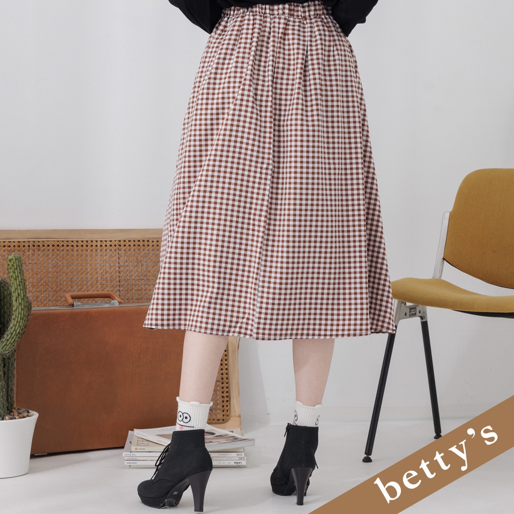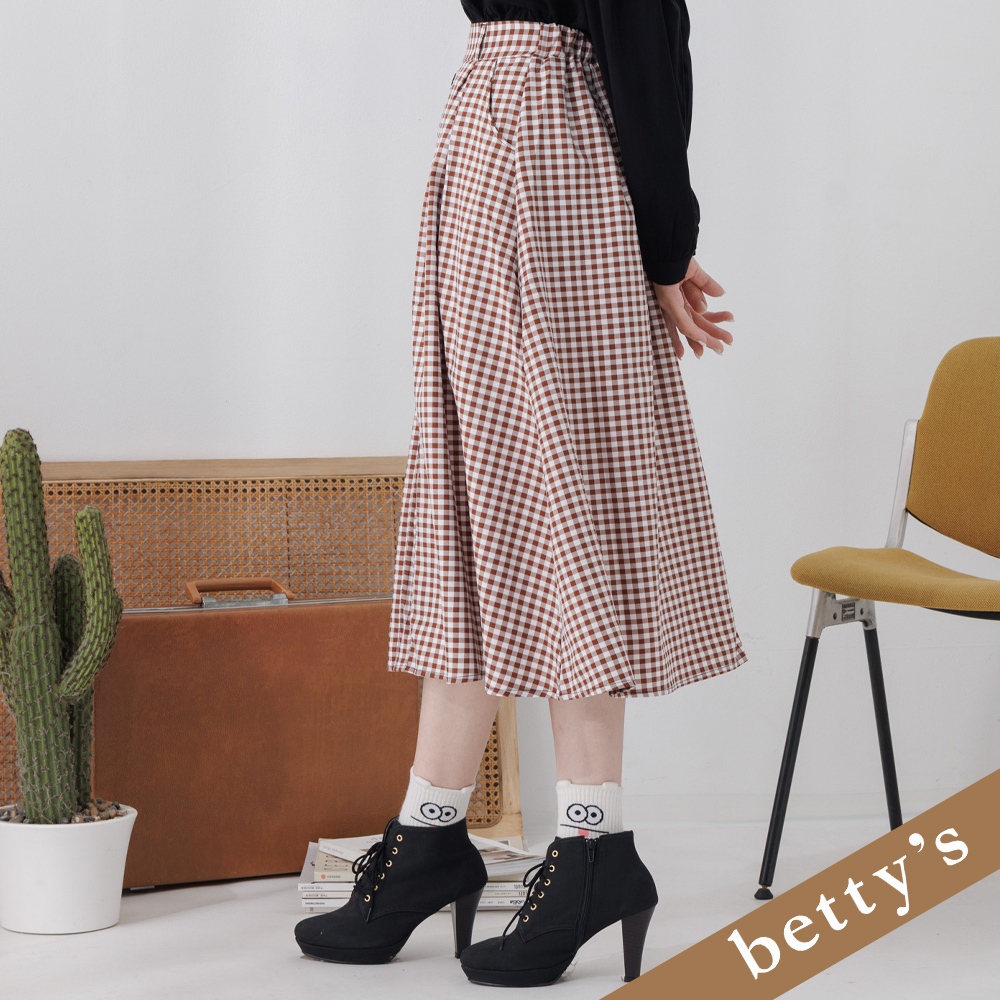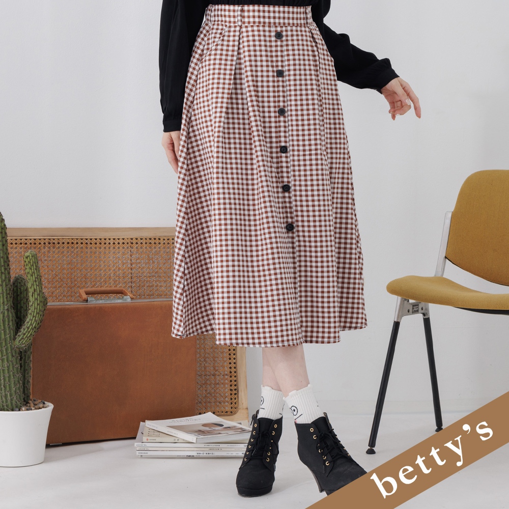 betty’s貝蒂思(25)腰鬆緊格子壓褶排釦長裙(咖啡色)咖啡色,Fbetty’s貝蒂思