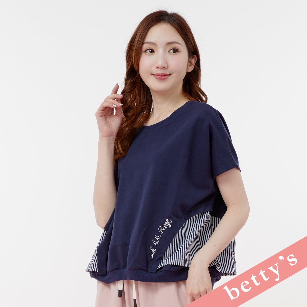 betty’s貝蒂思(31)活力滿點條紋抽繩落肩T-shirt(深藍色)
