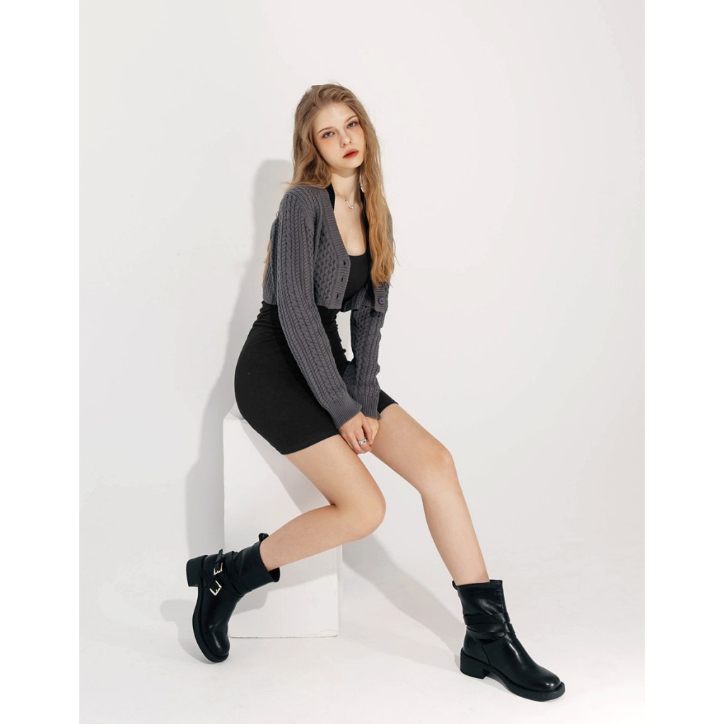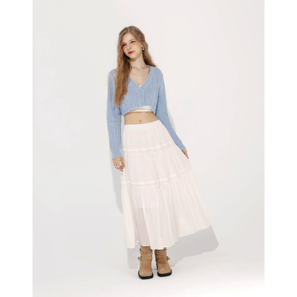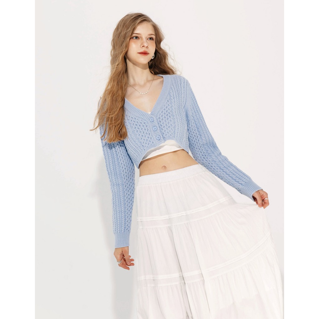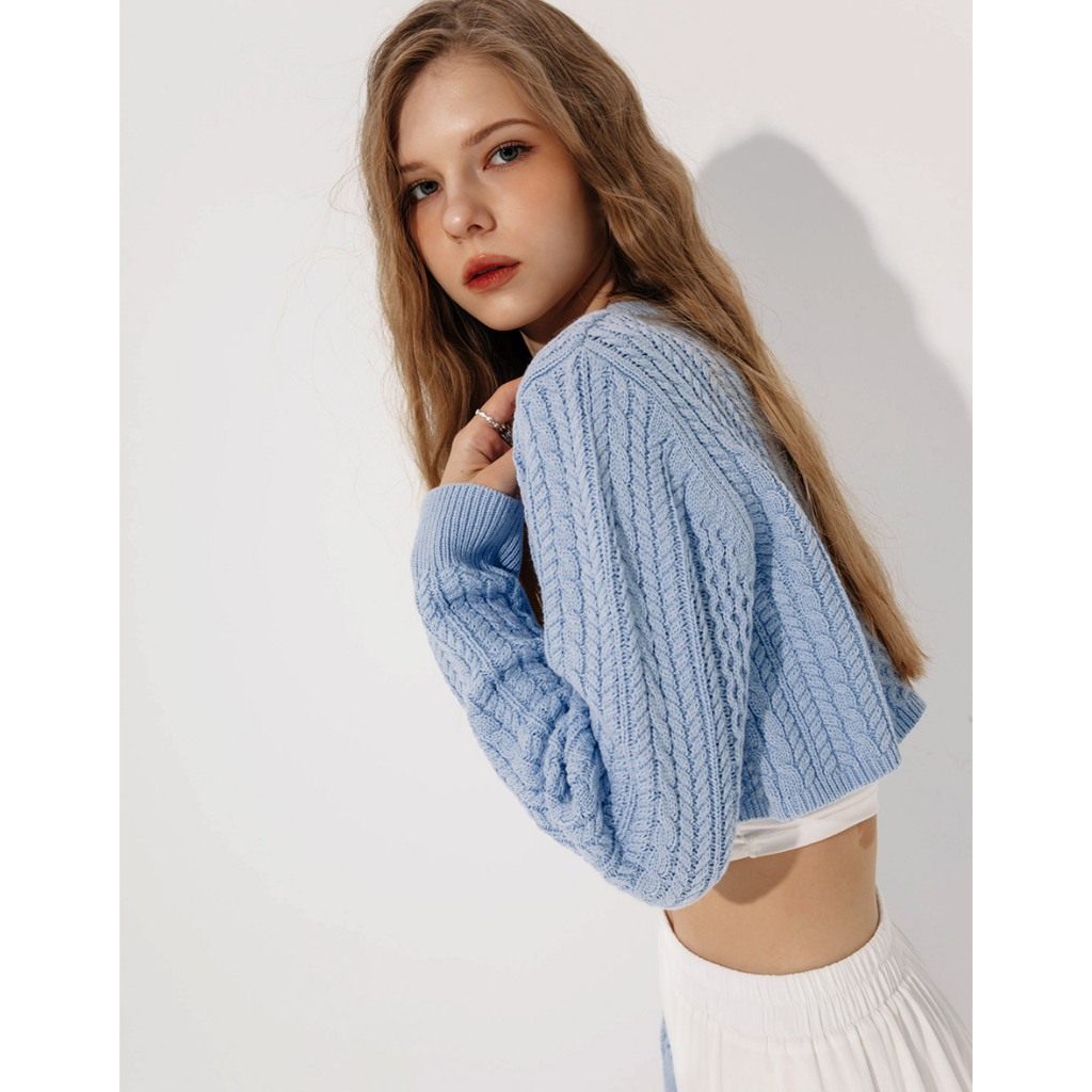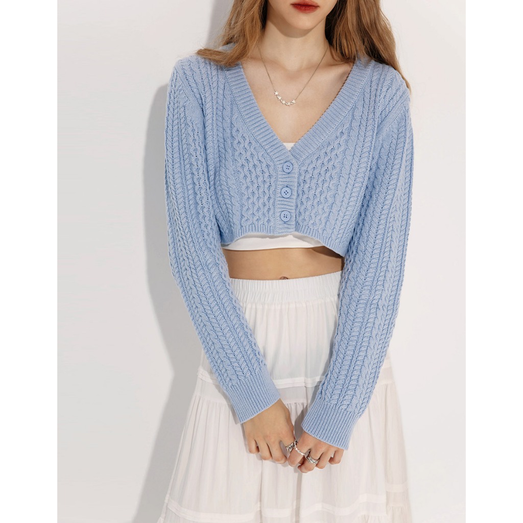 AIR SPACE 麻花針織短版開襟衫(深灰/淺藍) 女裝 現貨深灰,S|深灰,M|淺藍,S|淺藍,MAIR SPACE
