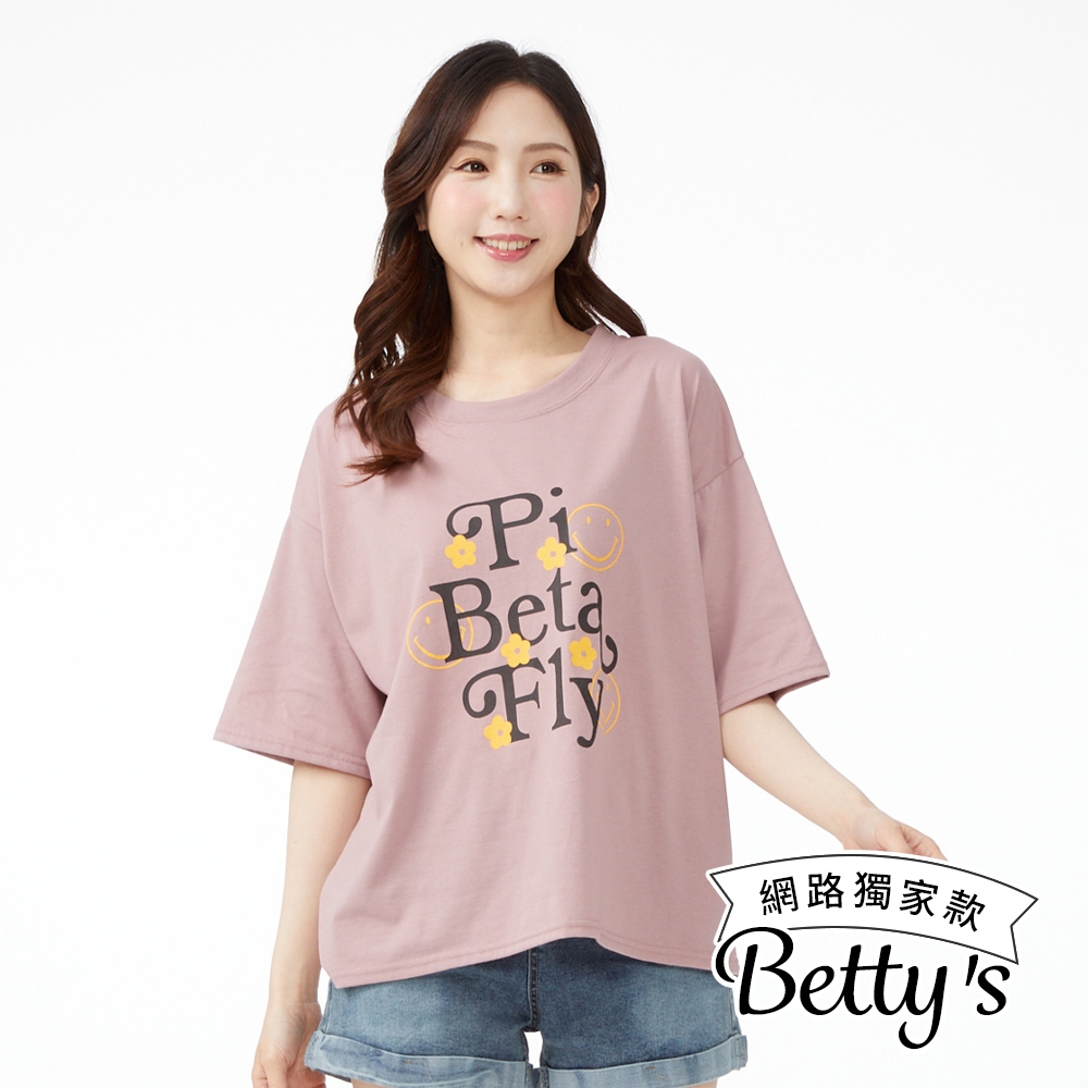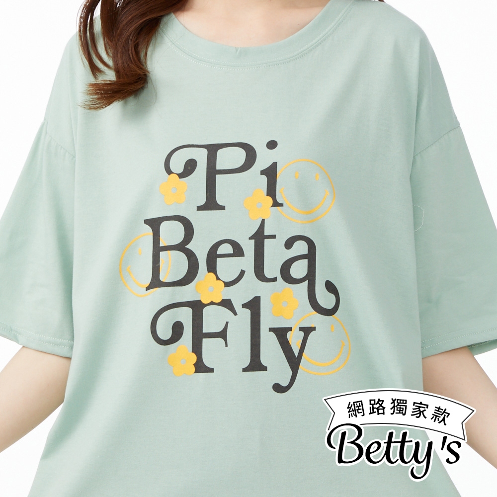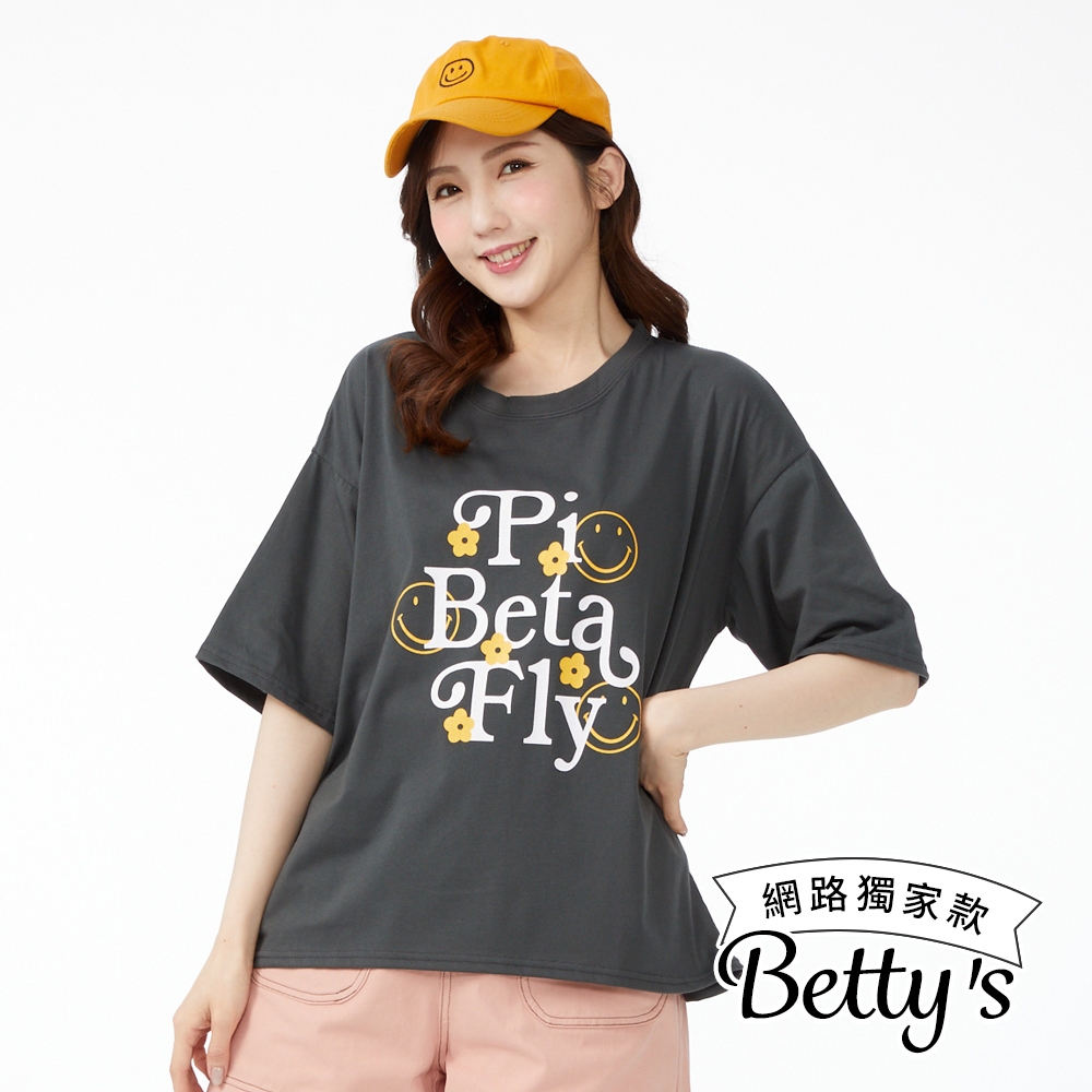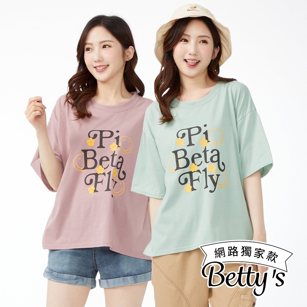 betty’s貝蒂思(50)笑臉字母印花寬版舒棉上衣(共三色)粉色|淺綠|灰色T-shirtsbetty’s貝蒂思