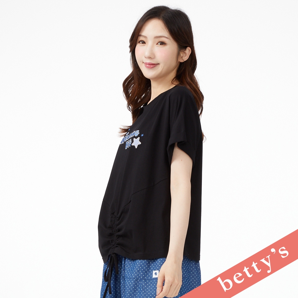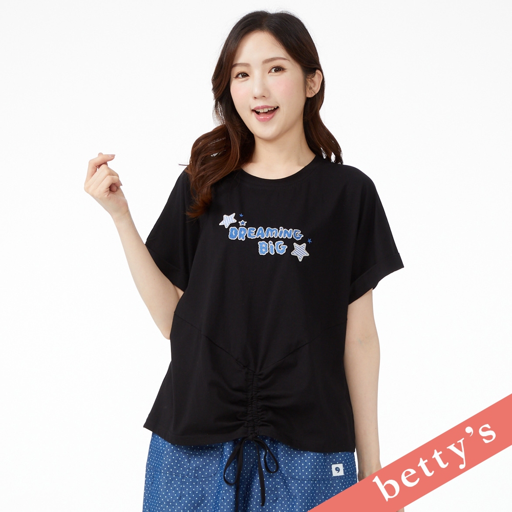betty’s貝蒂思(41)星星字母刺繡造型抽繩T-shirt(黑色)黑色,M|黑色,LT-shirtsbetty’s貝蒂思
