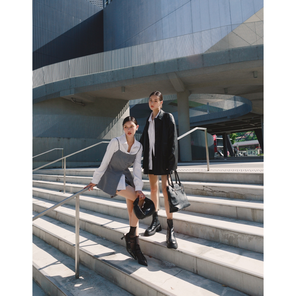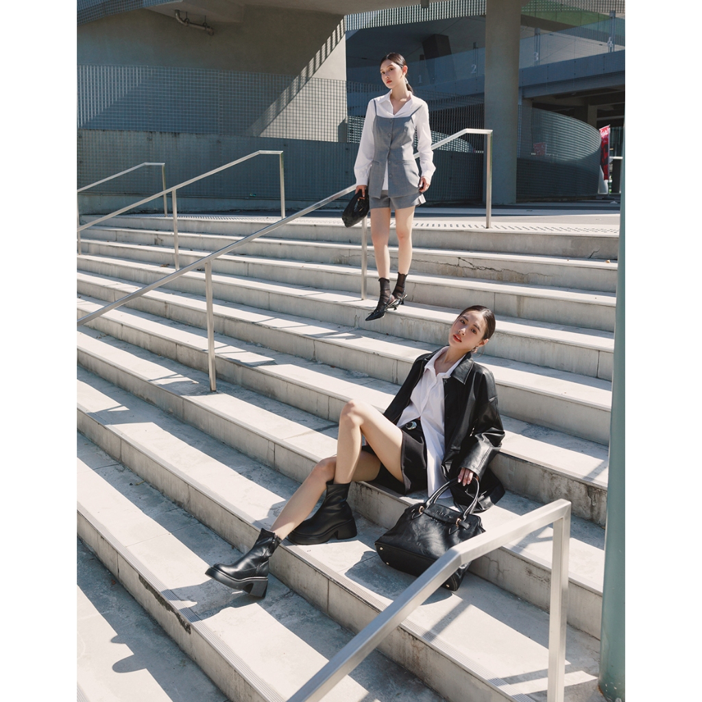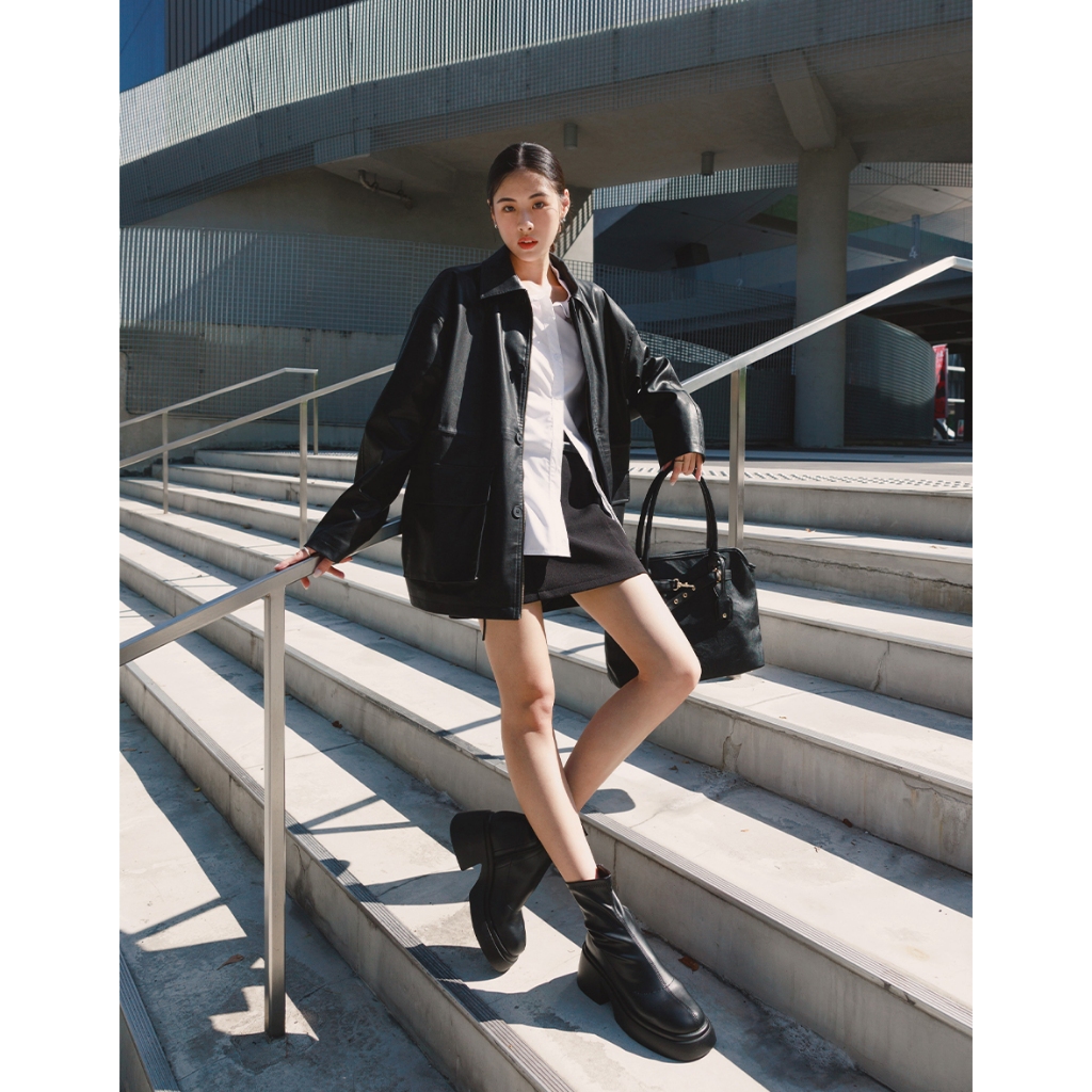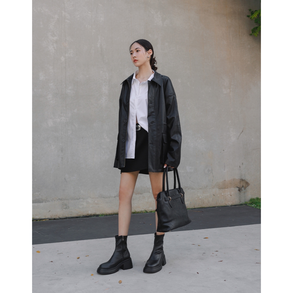 CHIC A SPACE 2WAY時髦皮革寬版外套(附墊肩)(黑) 女裝 現貨黑,FJacketsAIR SPACE