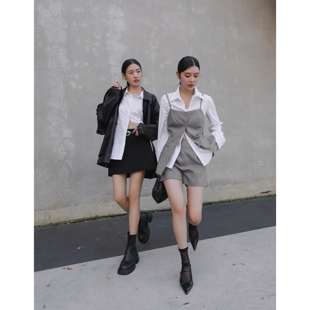 AIR SPACE LADY 假兩件蕾絲直紋透肌抽繩襯衫(黑/白) 女裝 現貨黑,S|黑,M|黑,L|白,S|白,M|白,LShirts & BlousesAIR SPACE