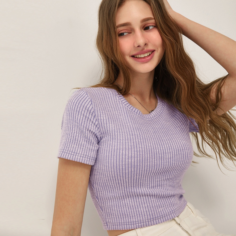 AIR SPACE 圓領羅紋短版上衣(杏/粉紅/藍紫) 女裝 現貨杏,S|杏,M|杏,L|粉紅,S|粉紅,M|粉紅,L|藍紫,S|藍紫,M|藍紫,LT-shirtsAIR SPACE